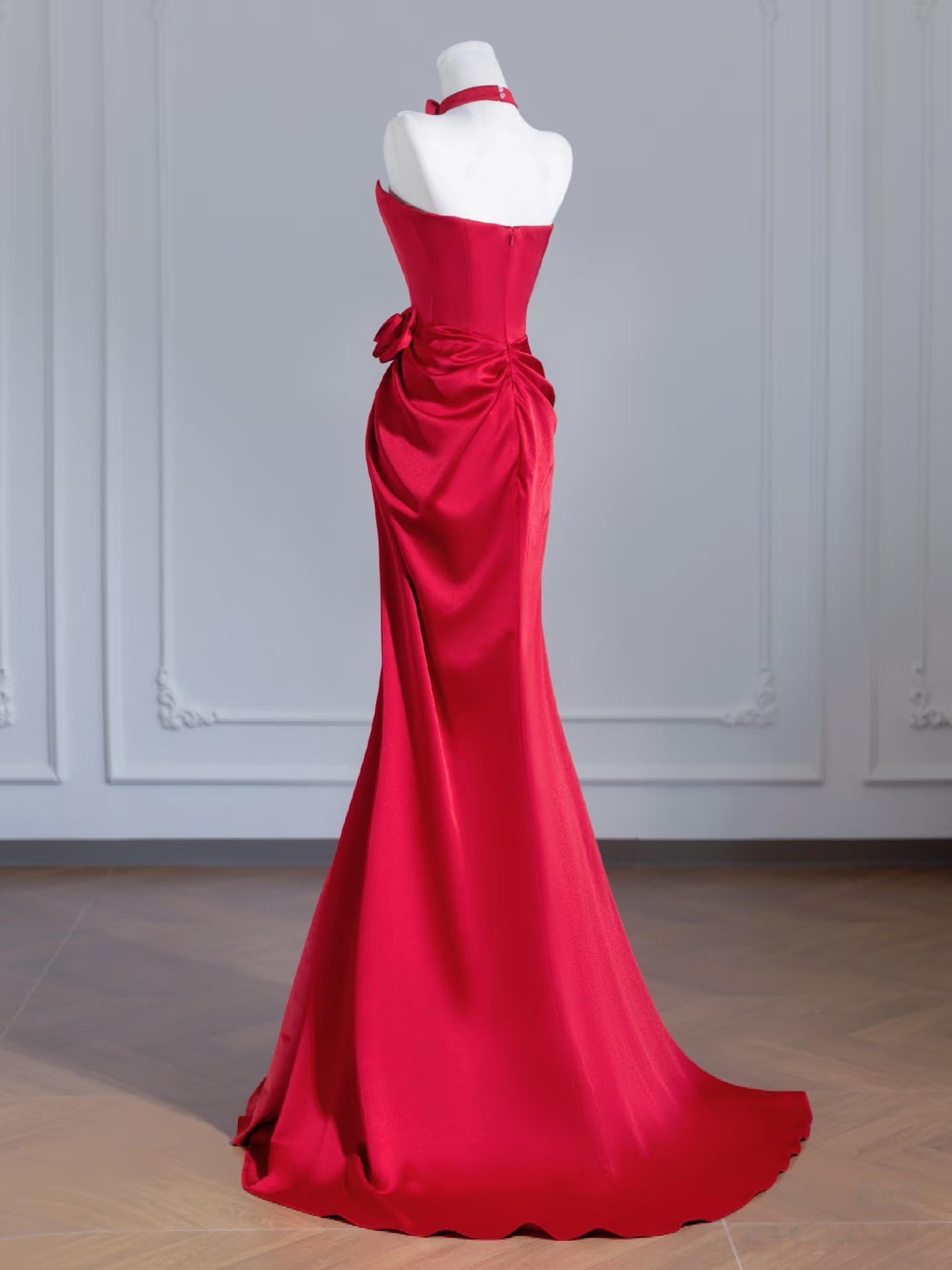 Elegant Strapless Red Satin Mermaid Prom Dress Suitable for A Variety of Formal Occasions