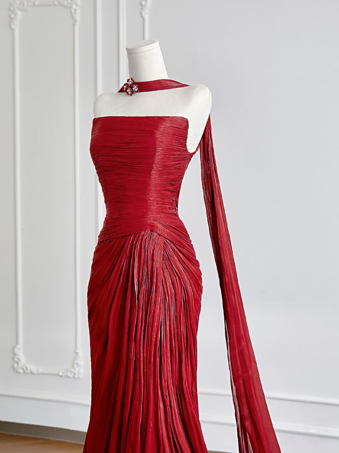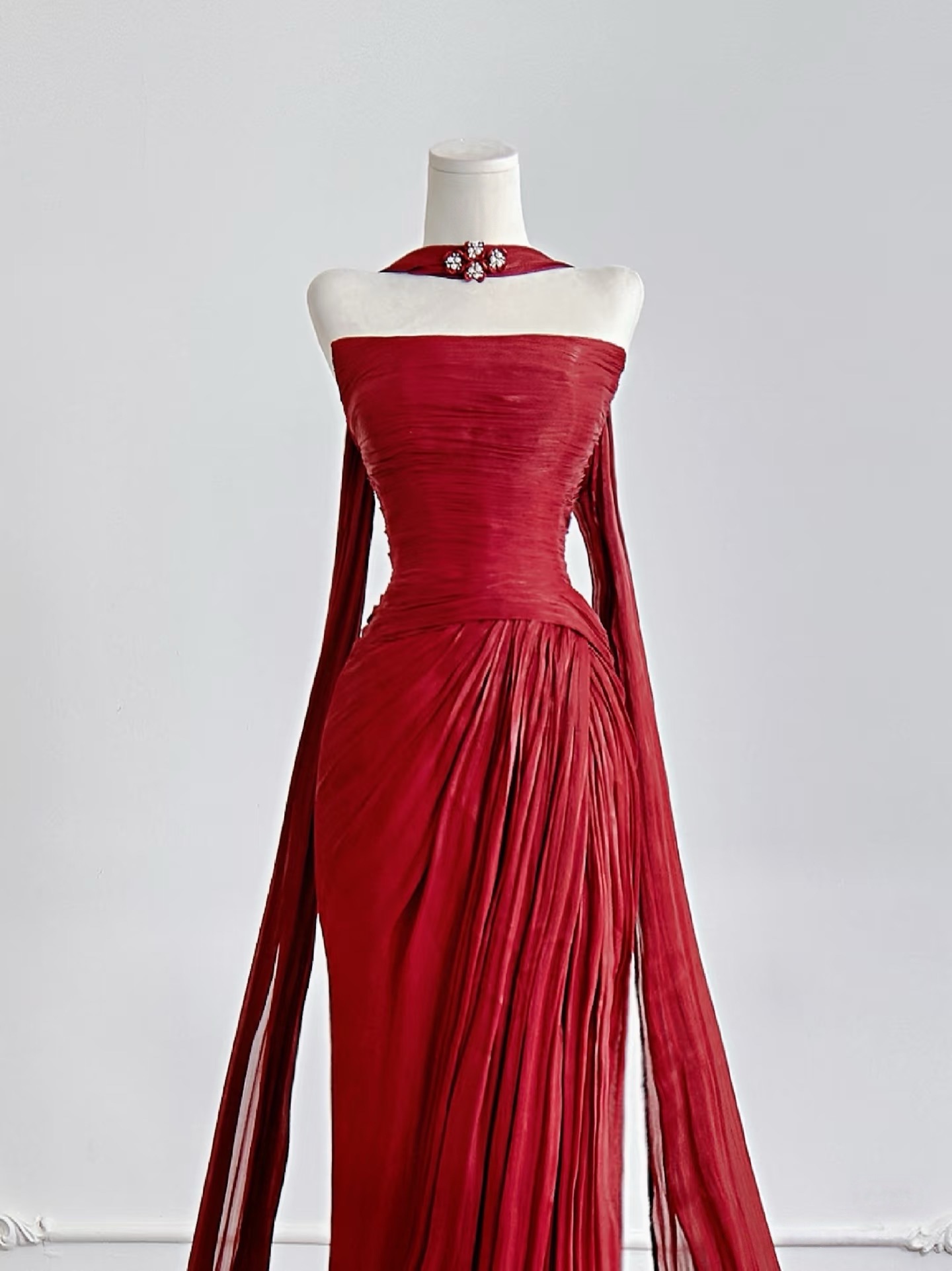Stunning Red Tulle Ribbon with A Long Tail Design Prom Dresses