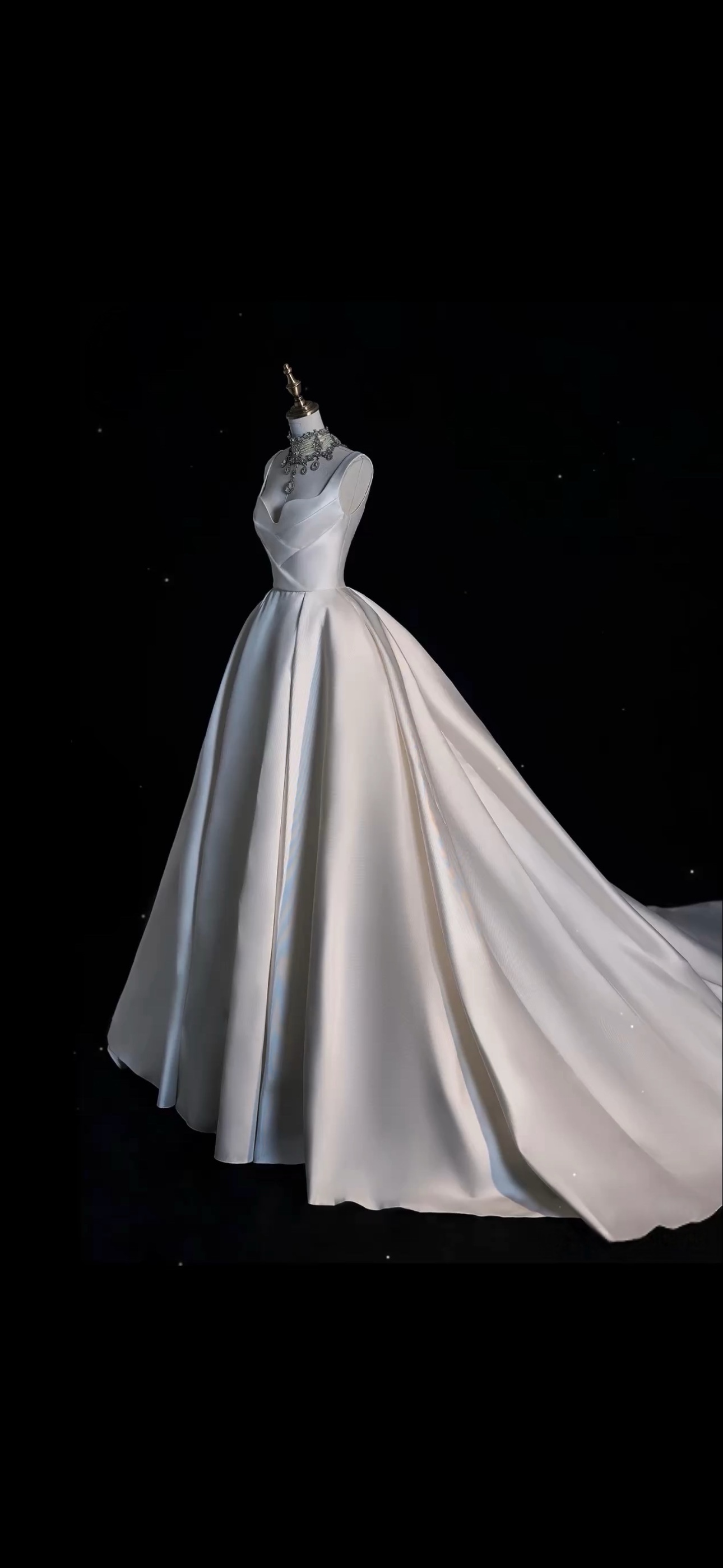 Sexy Sleeveless Satin A line Ball Wedding Dresses with Train