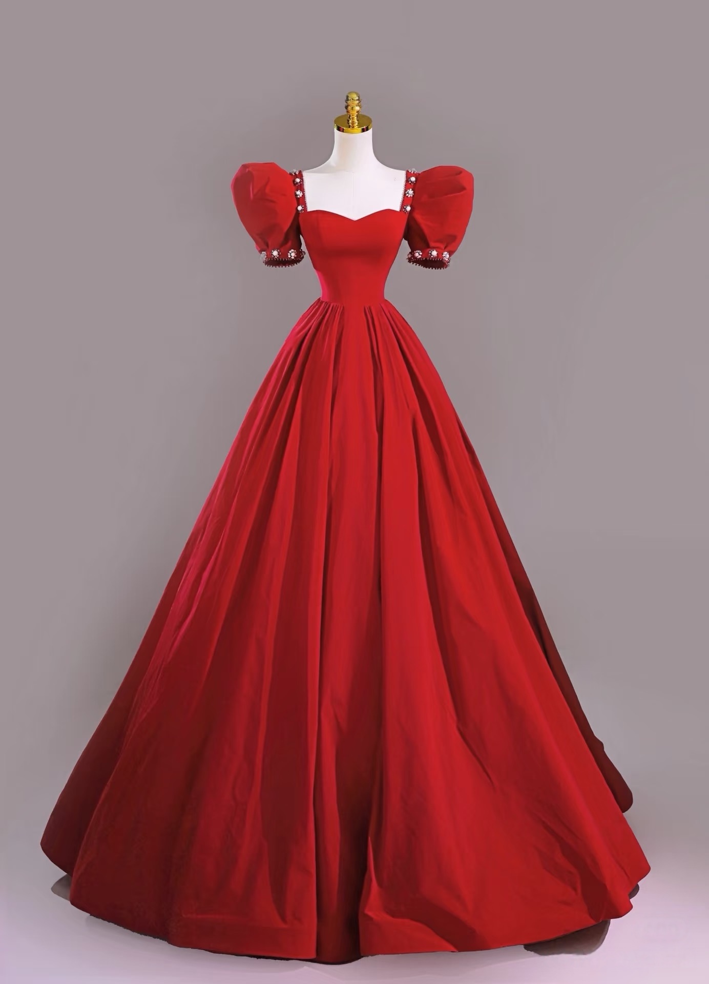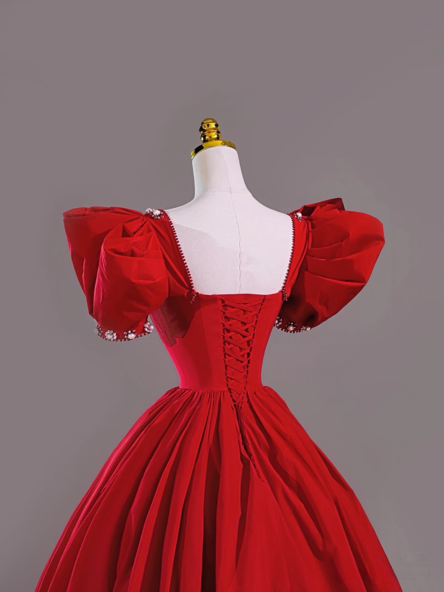 Red Short Sleeves Sweetheart Neck A-line Floor Length with Beading Ball Gown