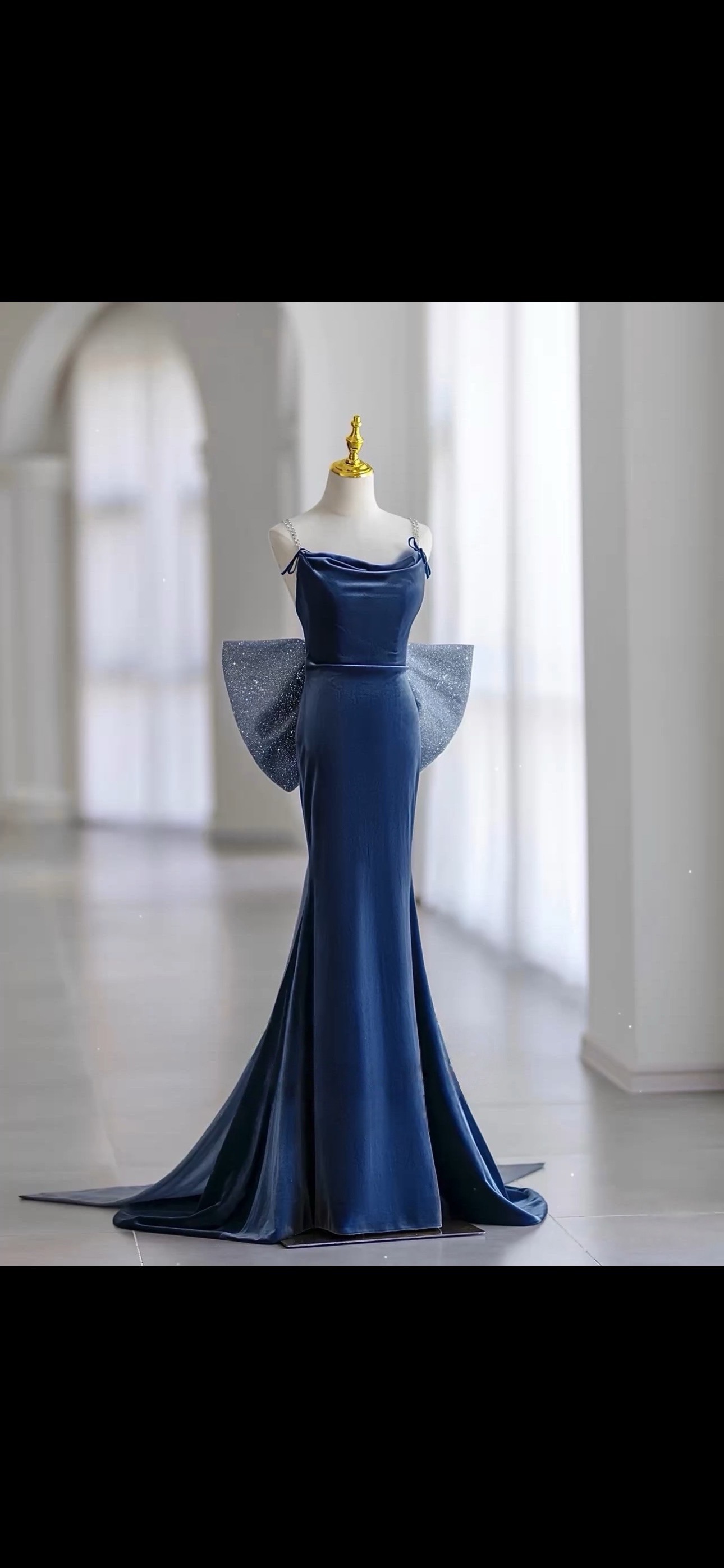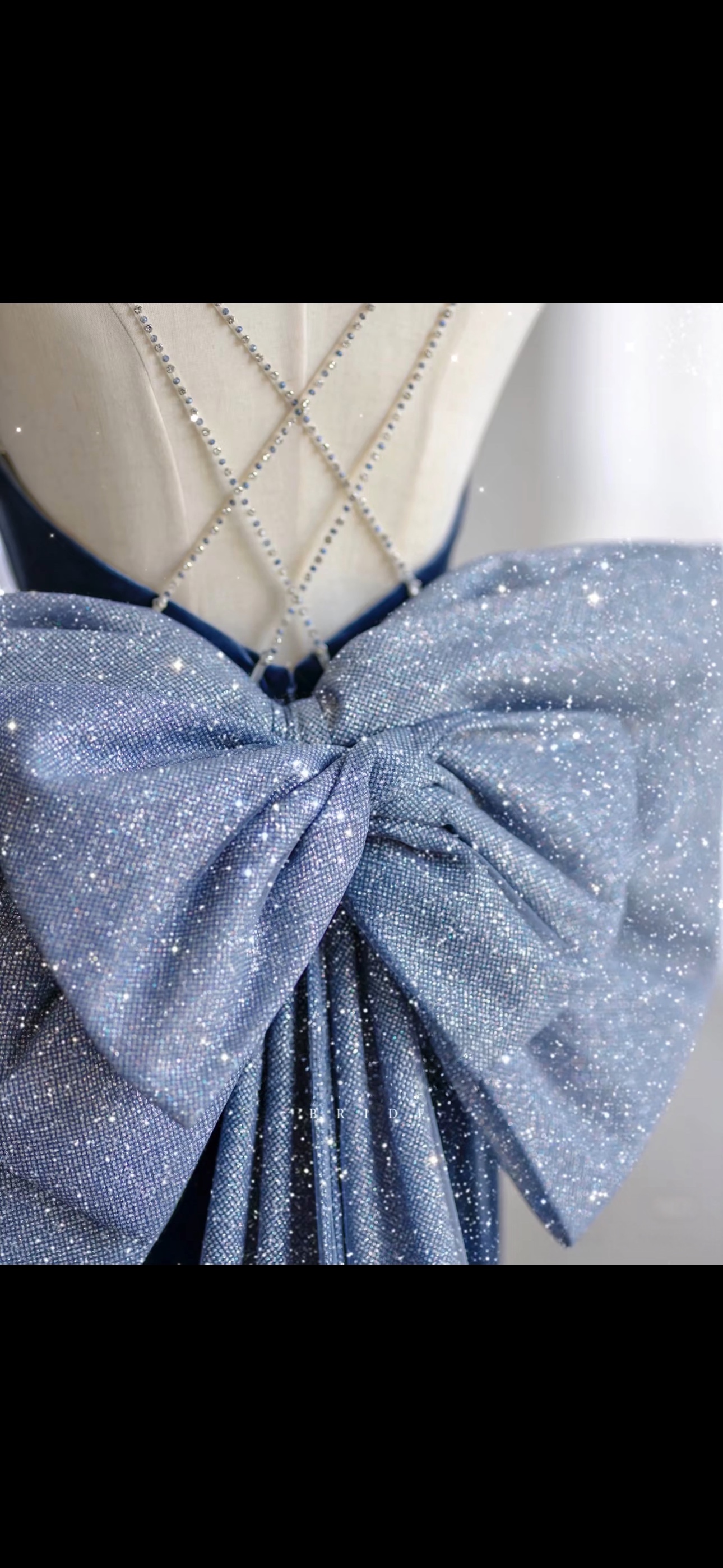 Spaghetti straps Mermaid Floor Length with Removeled Bow Backless Back Prom Dress