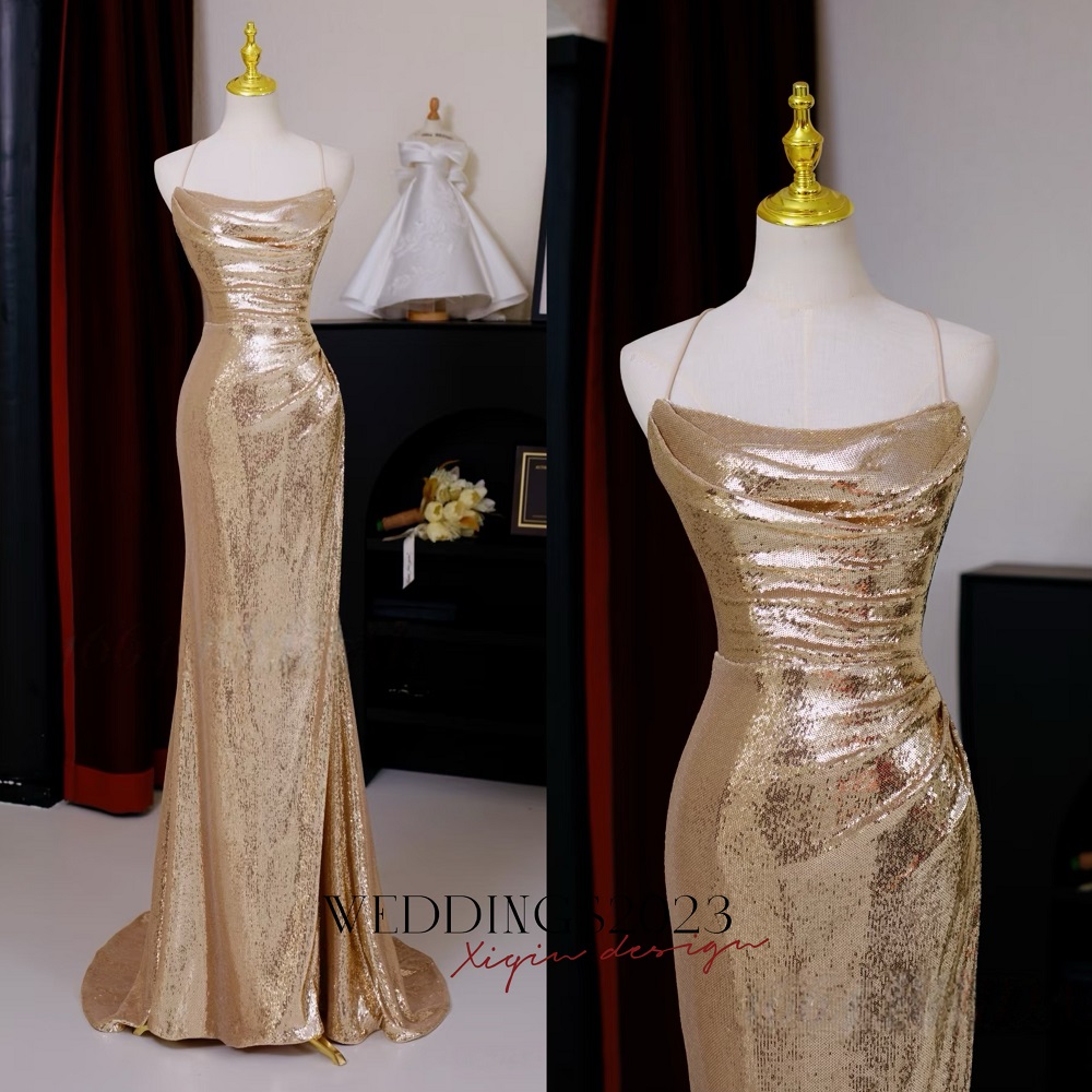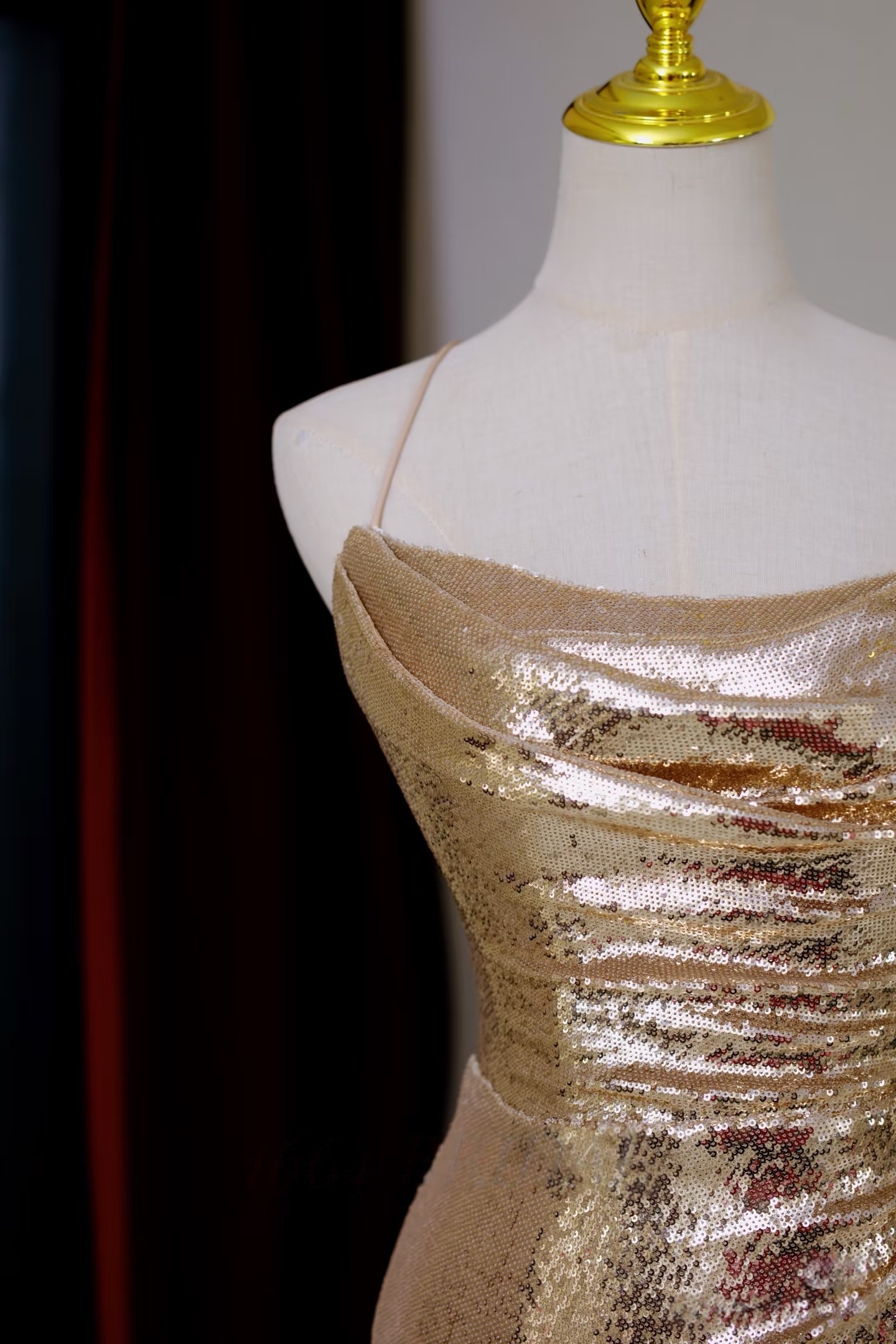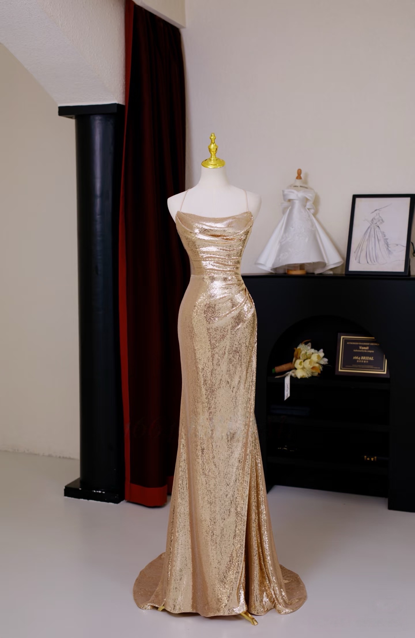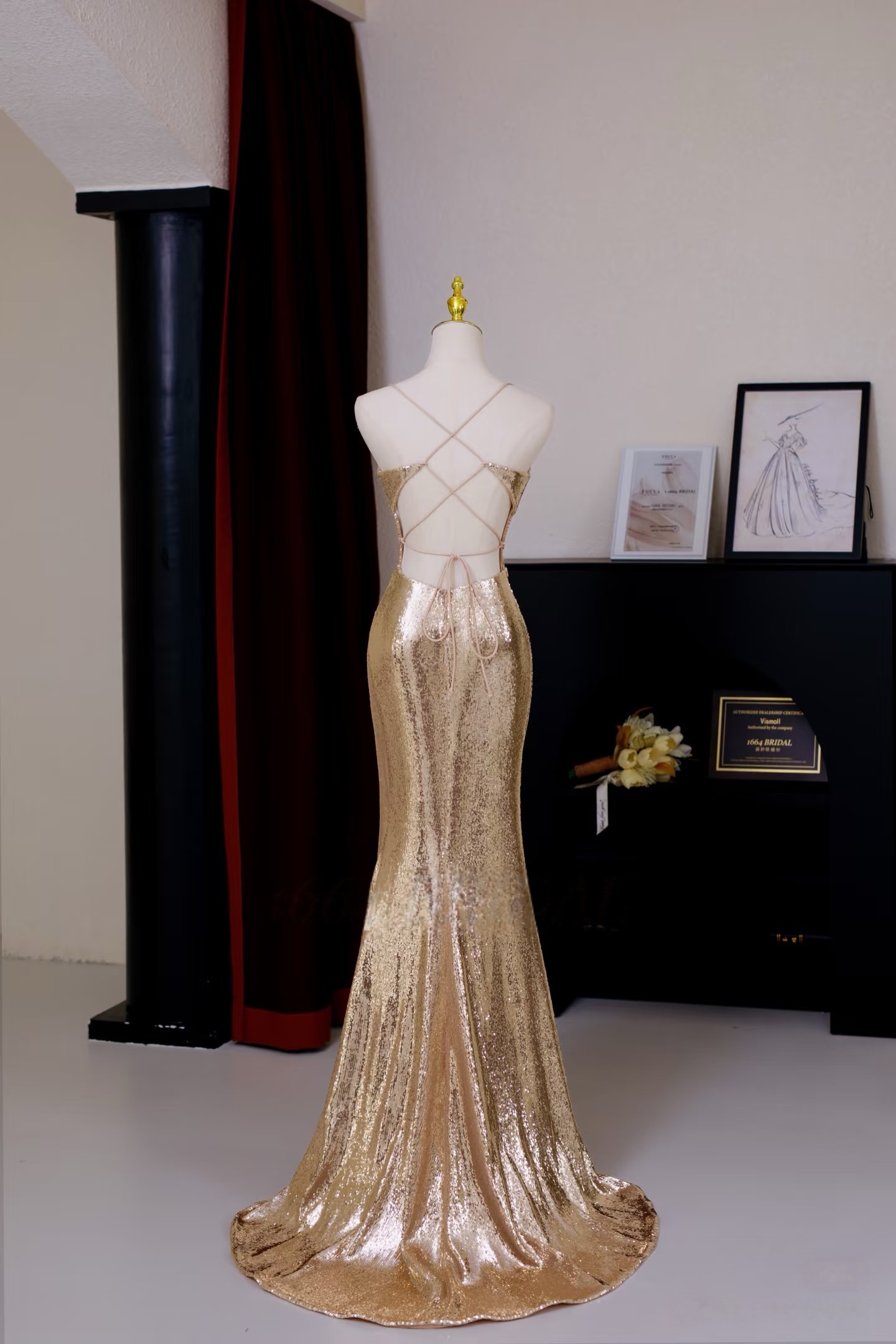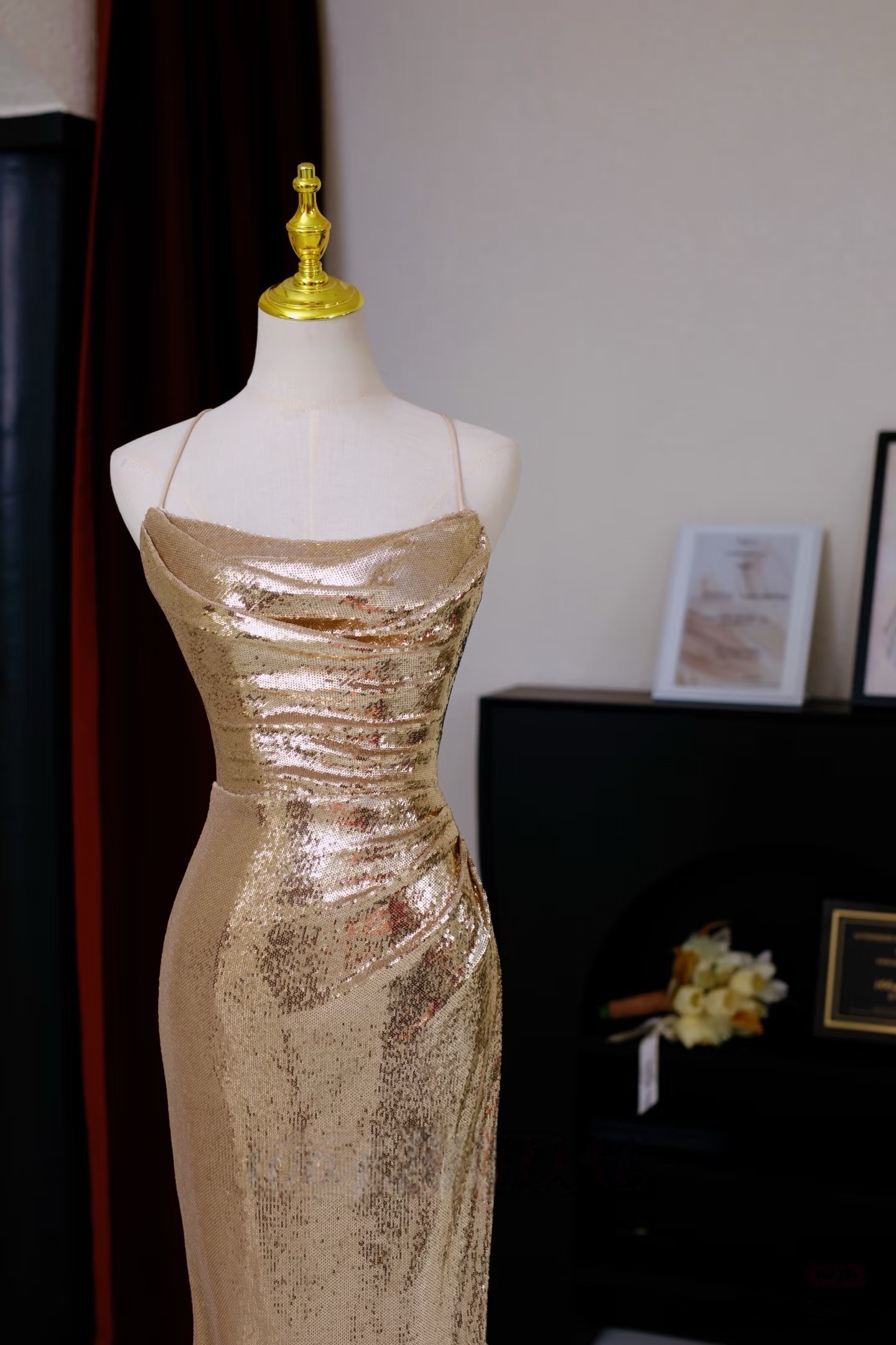 Chic Champagne Sequins Long Prom Dress, Sequins Champagne Formal Dress,Lace up Prom Dress