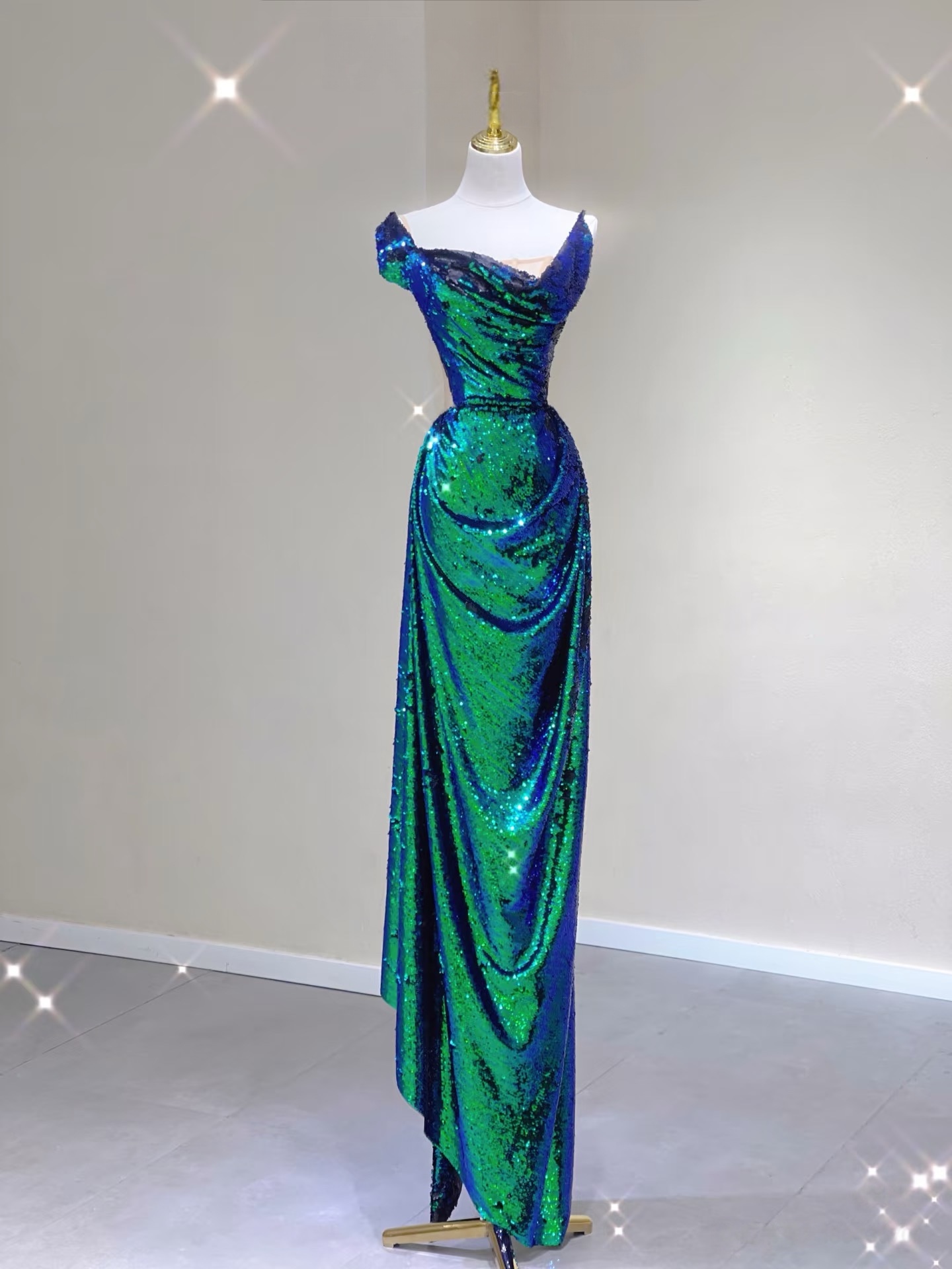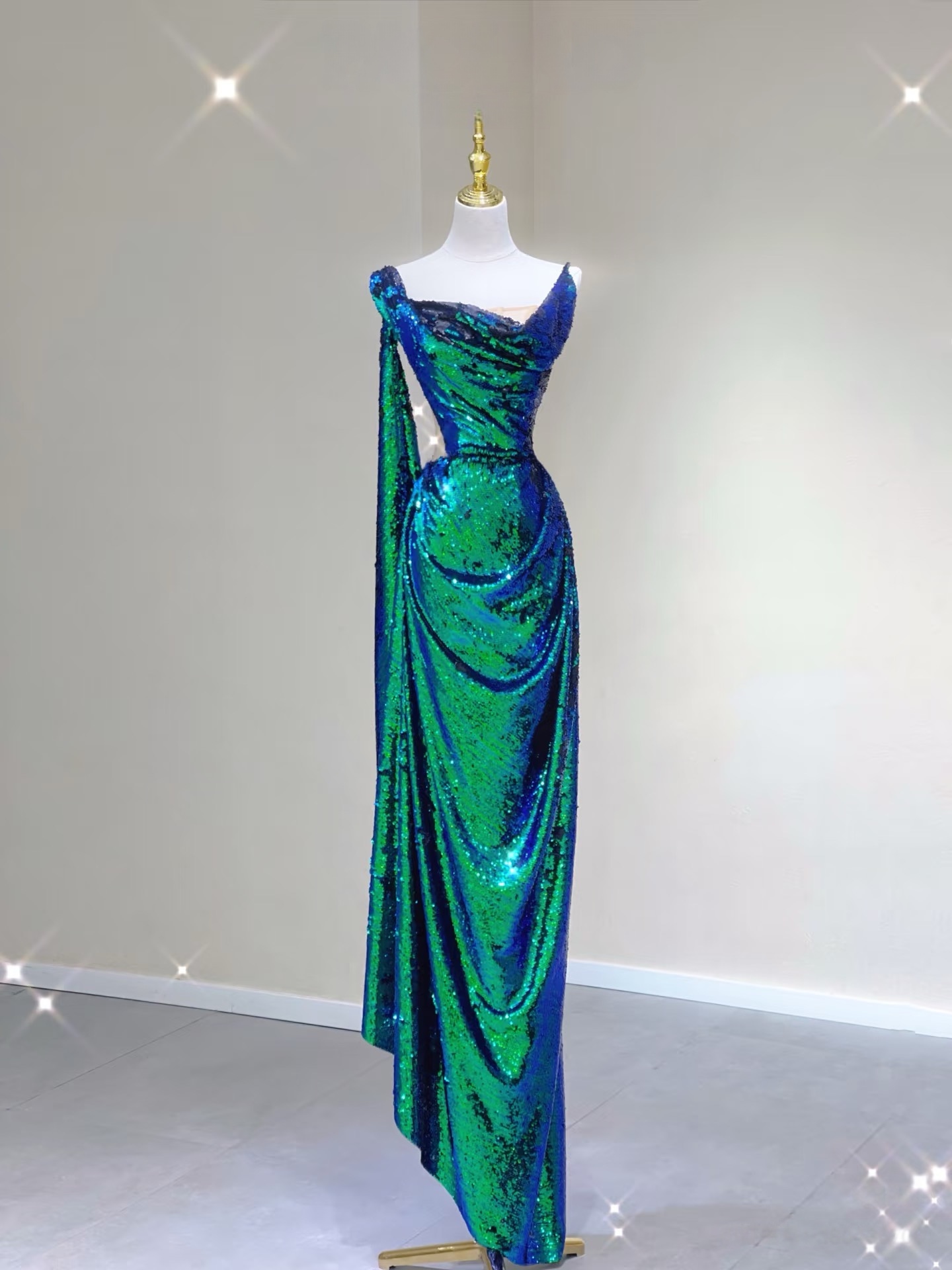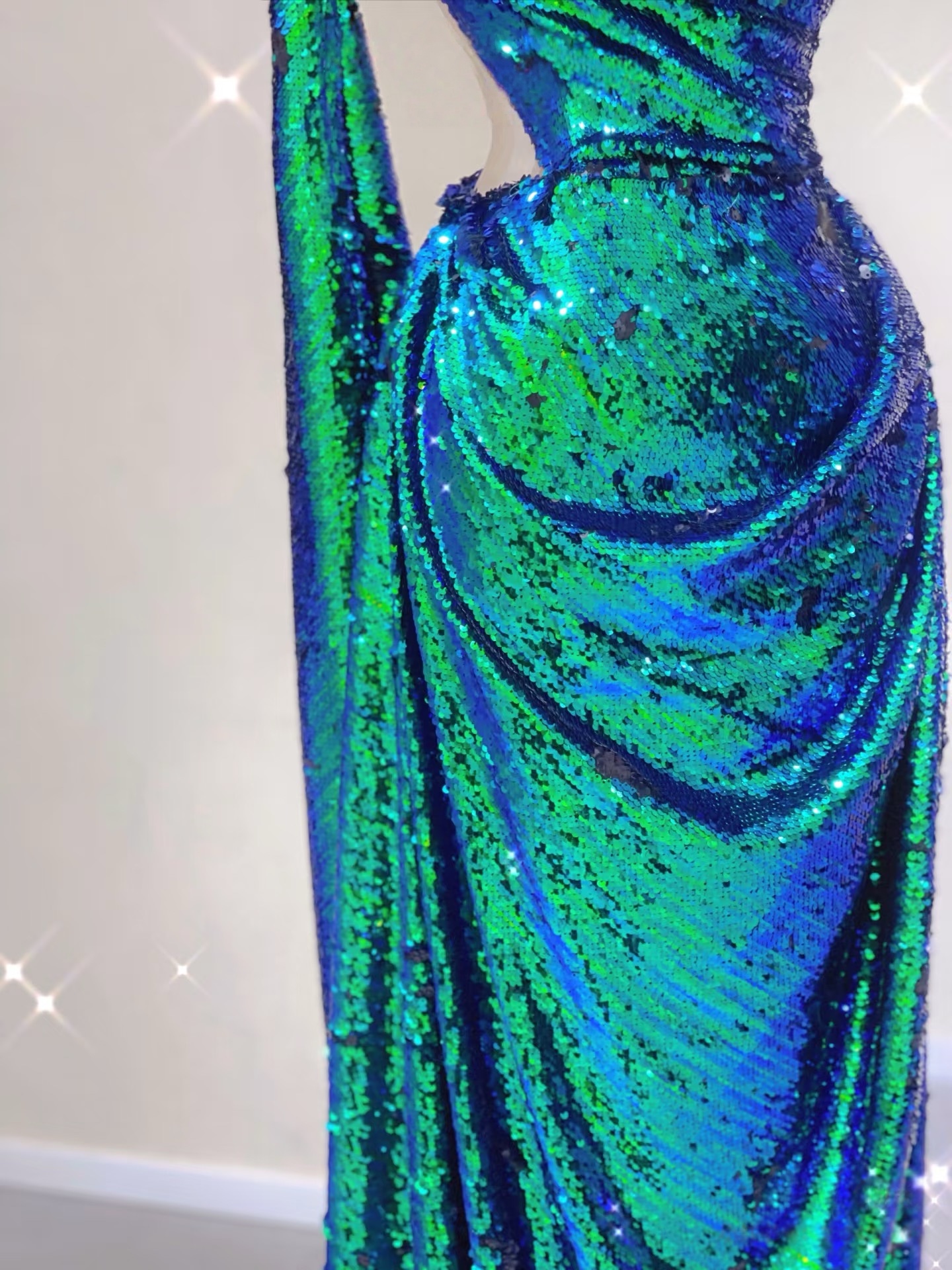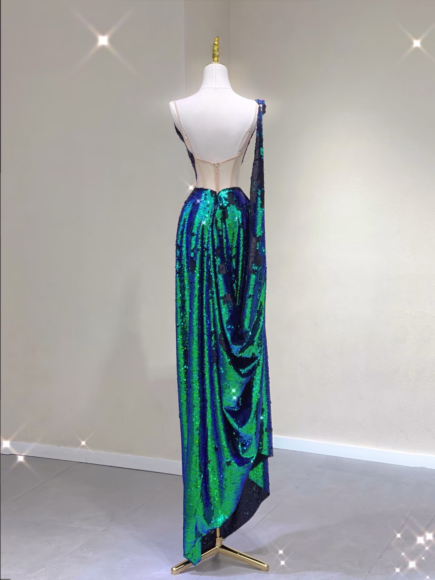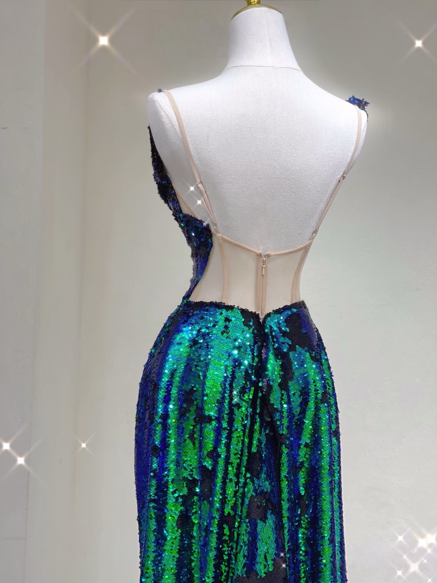 Green Sequins Sleeveless Mermaid Floor Length Open Back Prom Dress
