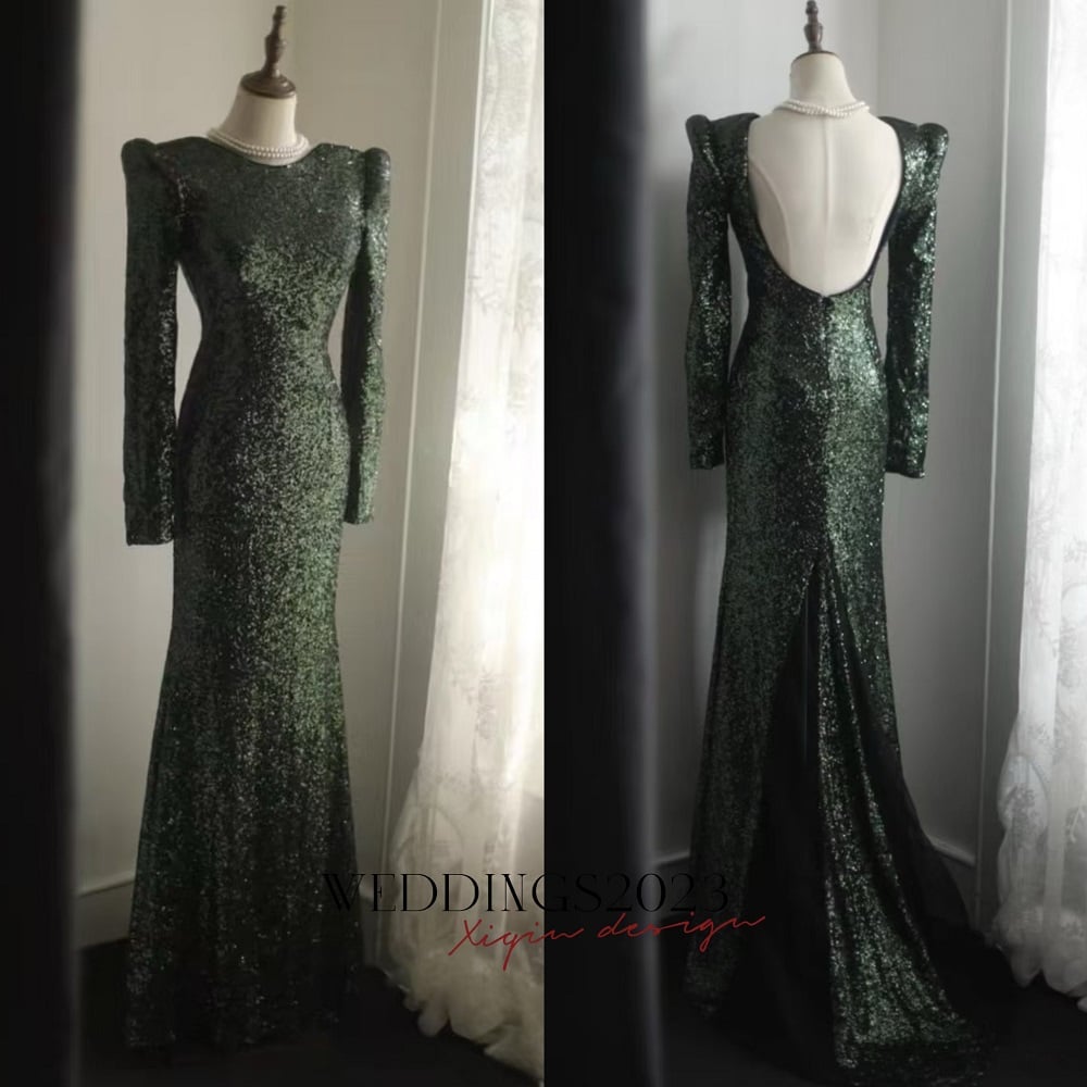 Luxe Dark Green Sequin Holiday Formal Party Evening Wedding Prom Mermaid Maxi Dress