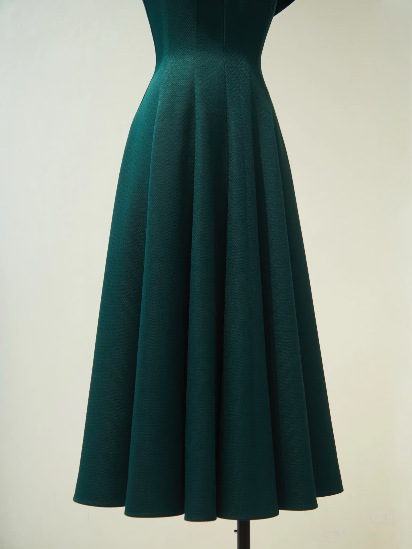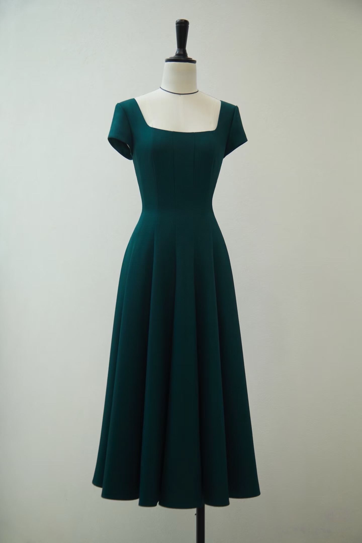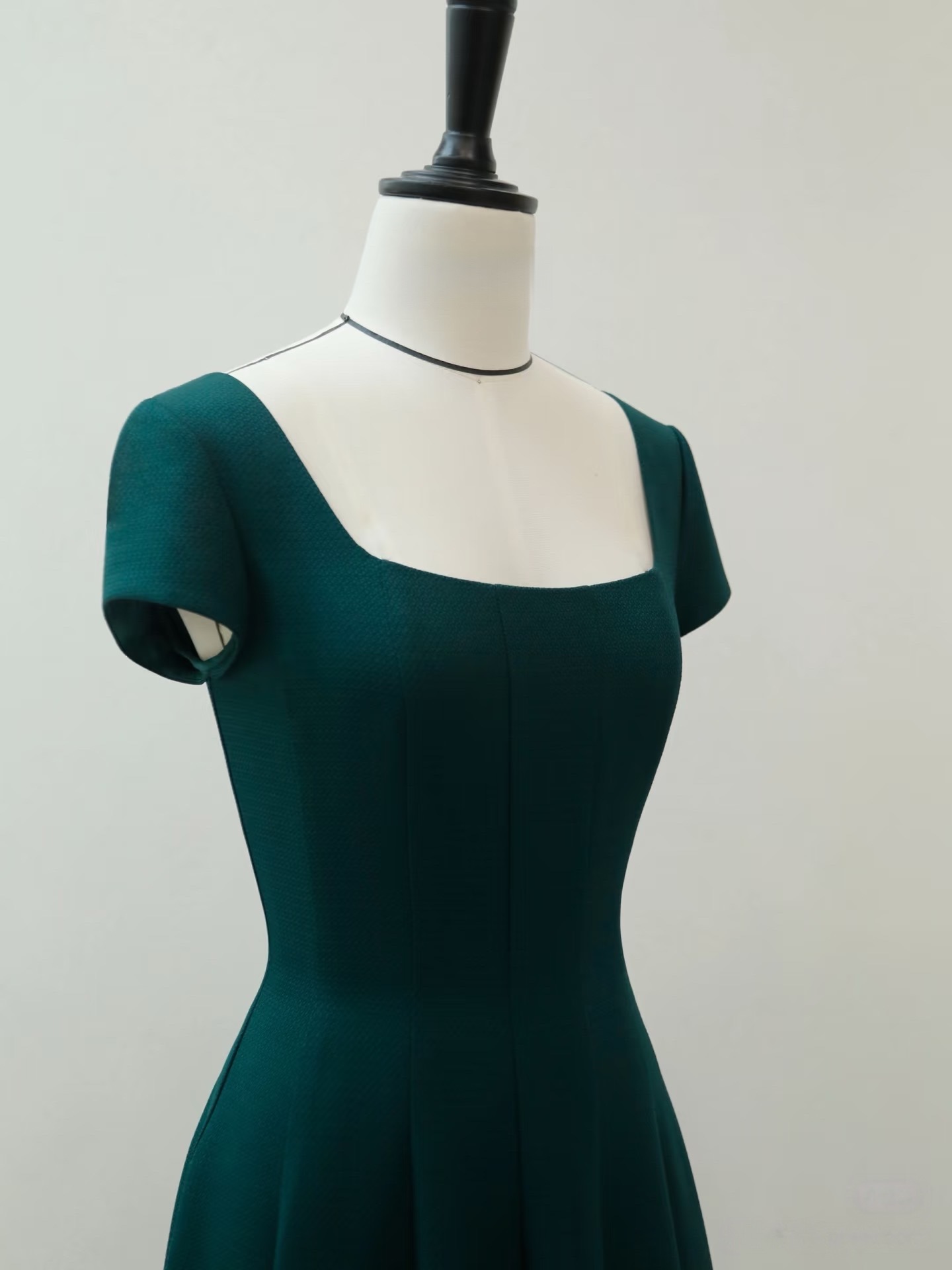 Simple style Dark Green Satin Cap Sleeves Sheath Tea length Evening Dress