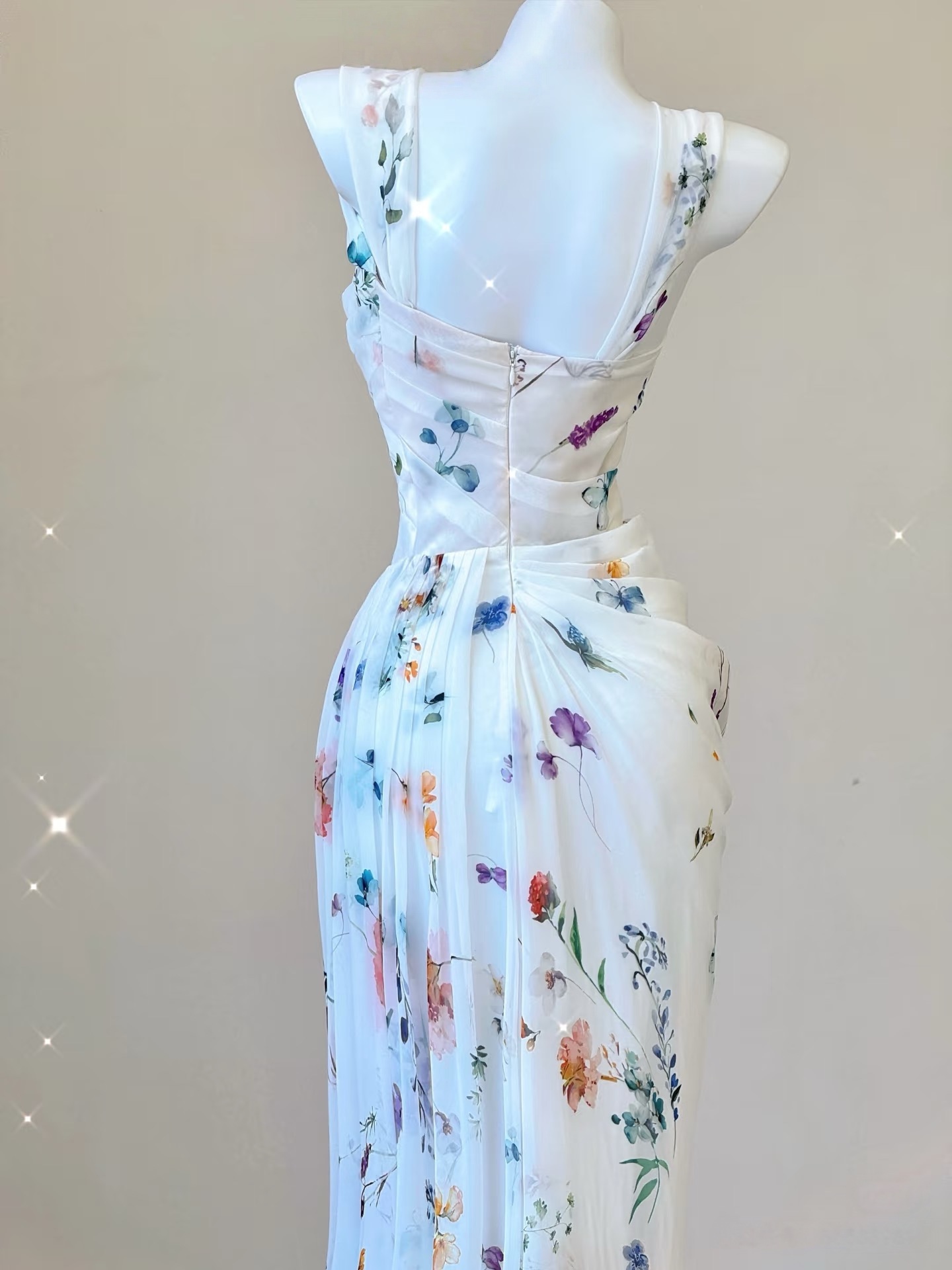 Sexy Mermaid Straps Chiffon Floral Evening Gowns Long Prom Dresses