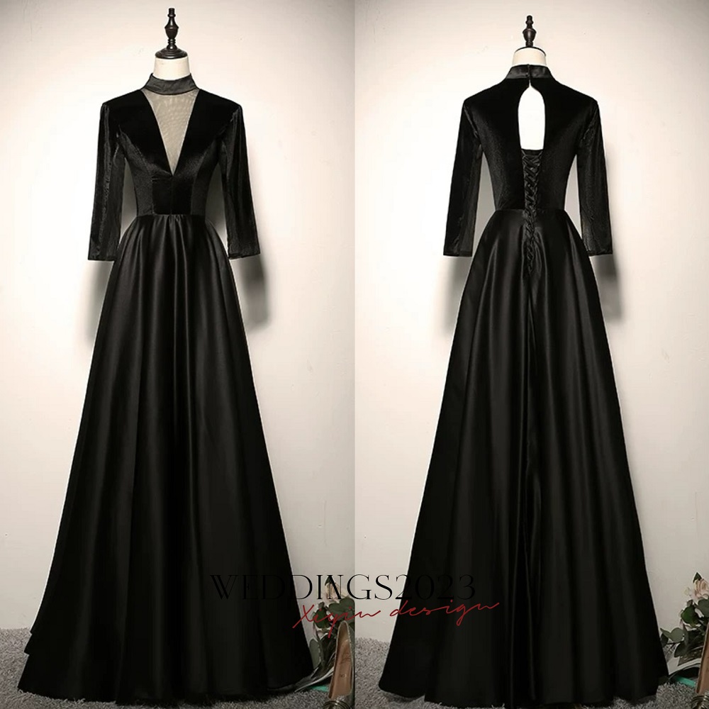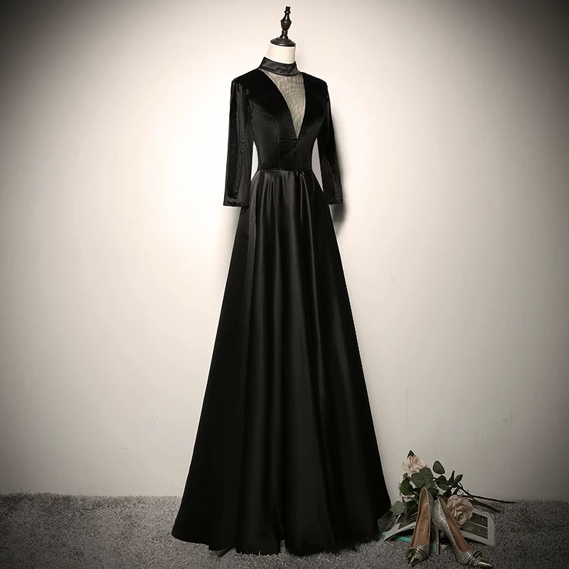 Black Prom Dresses A-Line / Princess High Neck 3/4 Sleeve Backless Floor-Length / Long Prom Formal Dresses