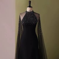 Chic / Beautiful Black Rhinestone Prom Dresses A-Line / Princess Scoop Neck Sleeveless Floor-Length / Long Prom Formal Dresses
