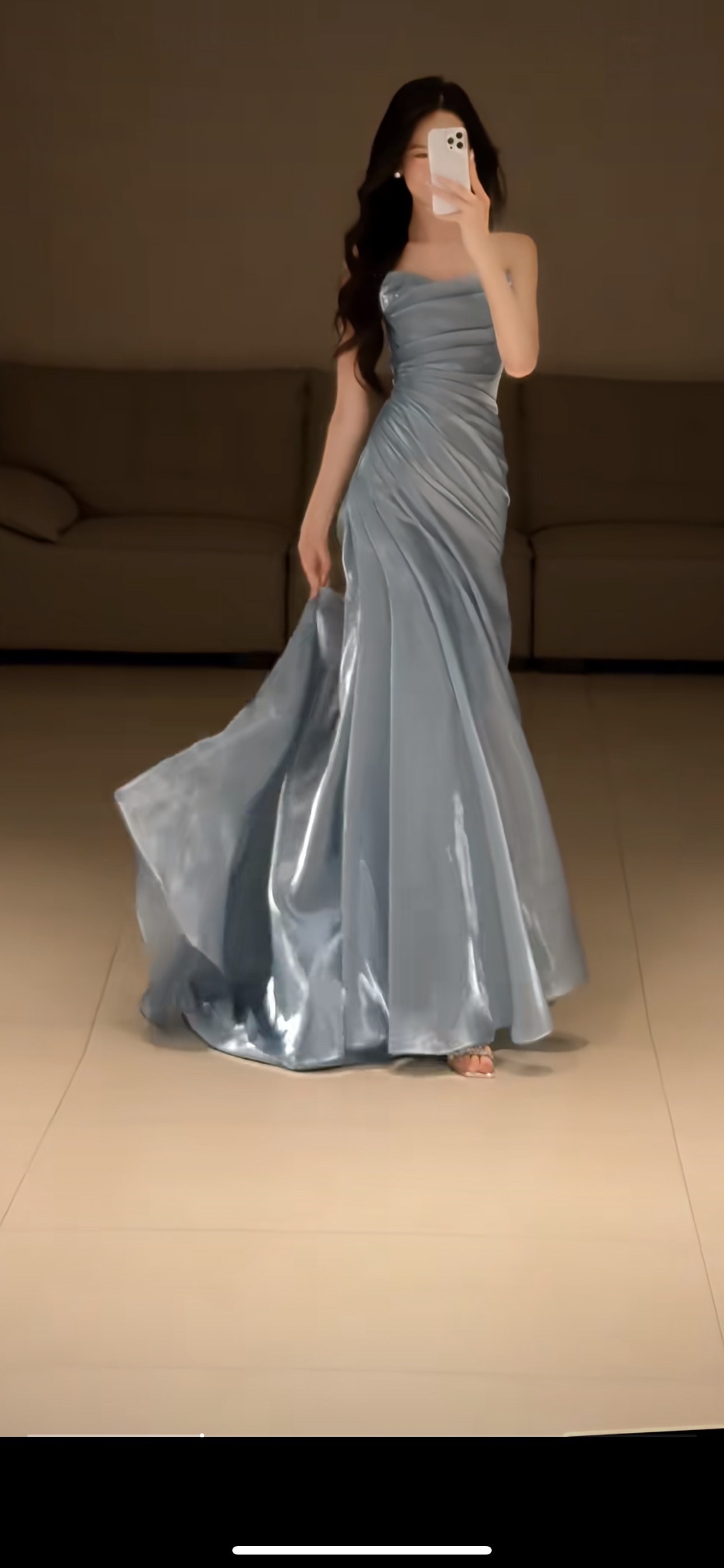 Sliver Organza Mermaid Party Dress Evening Dresses Prom Dress Shiny A Customized