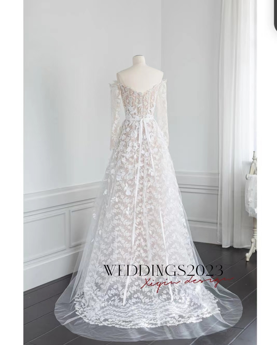 I am able to customize Your Wedding Dress and make it more Personal for You. Please remark your Customization Request in Your Order Note during check out and I will contact you to confirm this as soon as possible. There is an extra fee for customization.