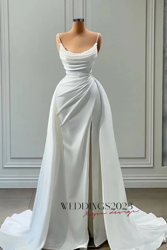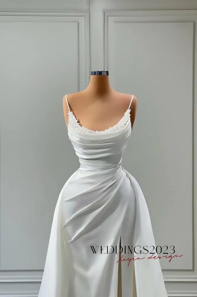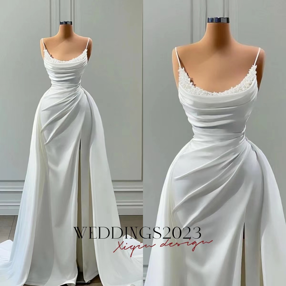 Beautiful Long A-line Spaghetti Straps Wedding Dresses With Beads Party Dress Evening W-51833