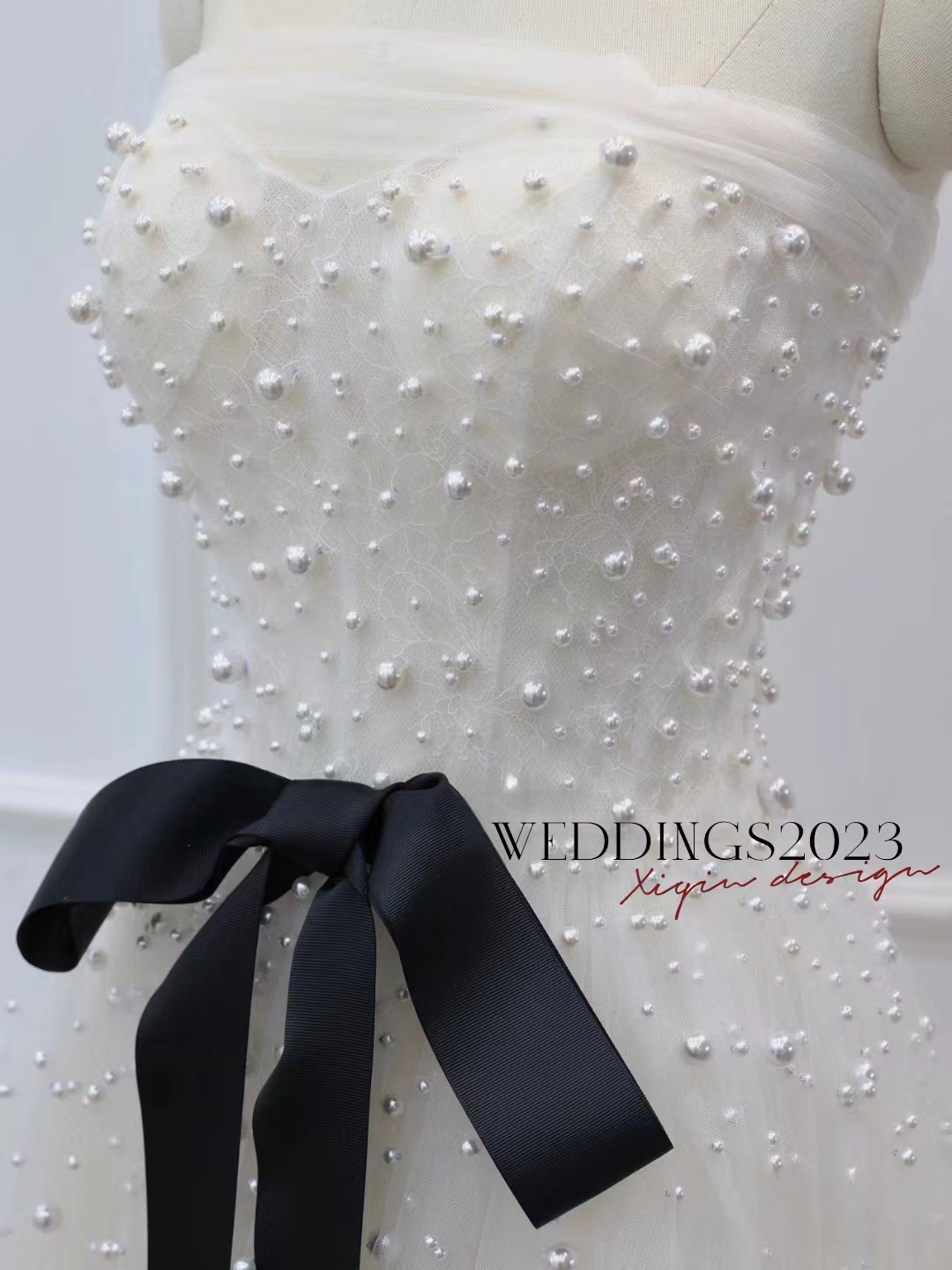 I am able to customize Your Wedding Dress and make it more Personal for You. Please remark your Customization Request in Your Order Note during check out and I will contact you to confirm this as soon as possible. There is an extra fee for customization.