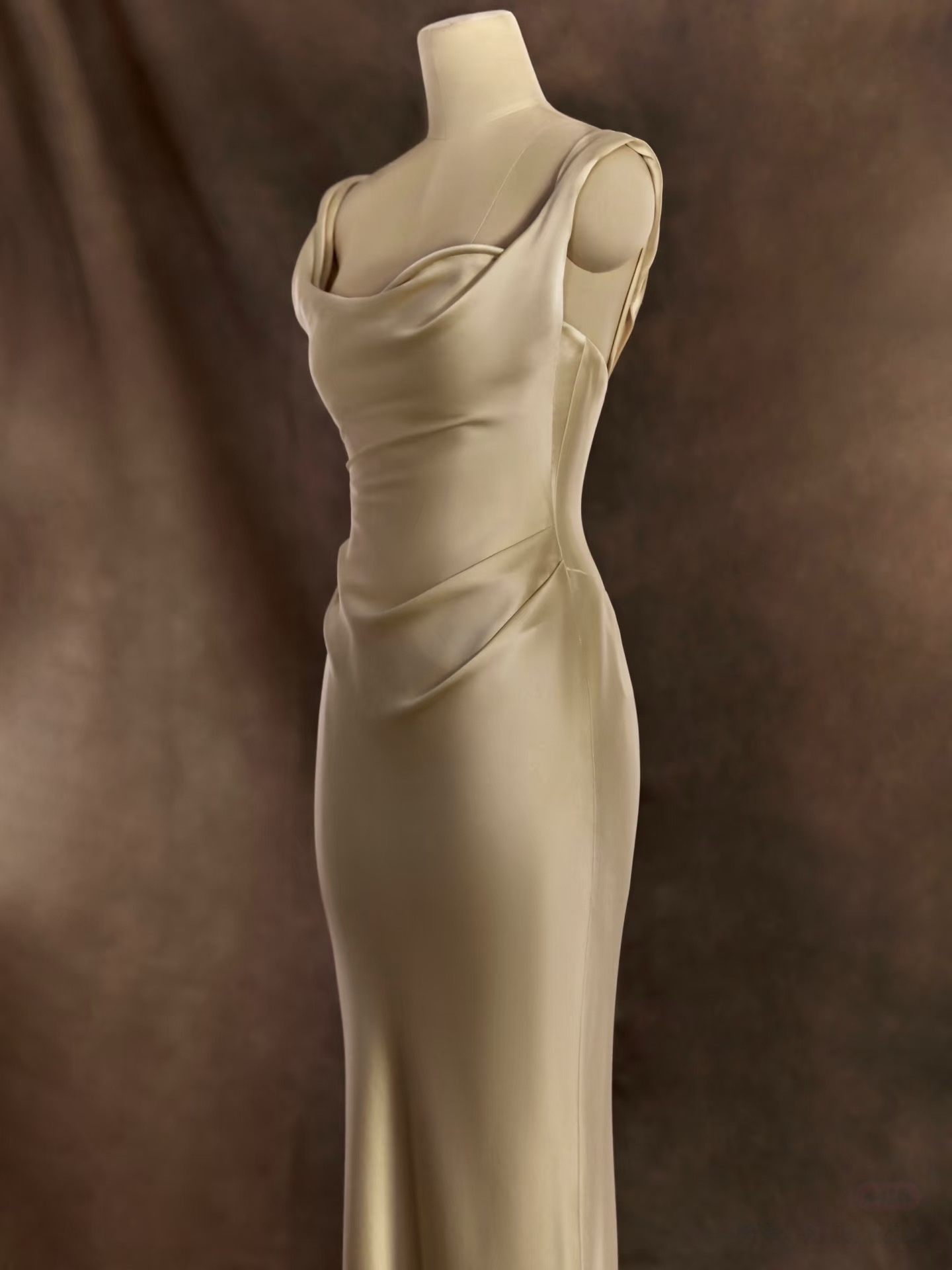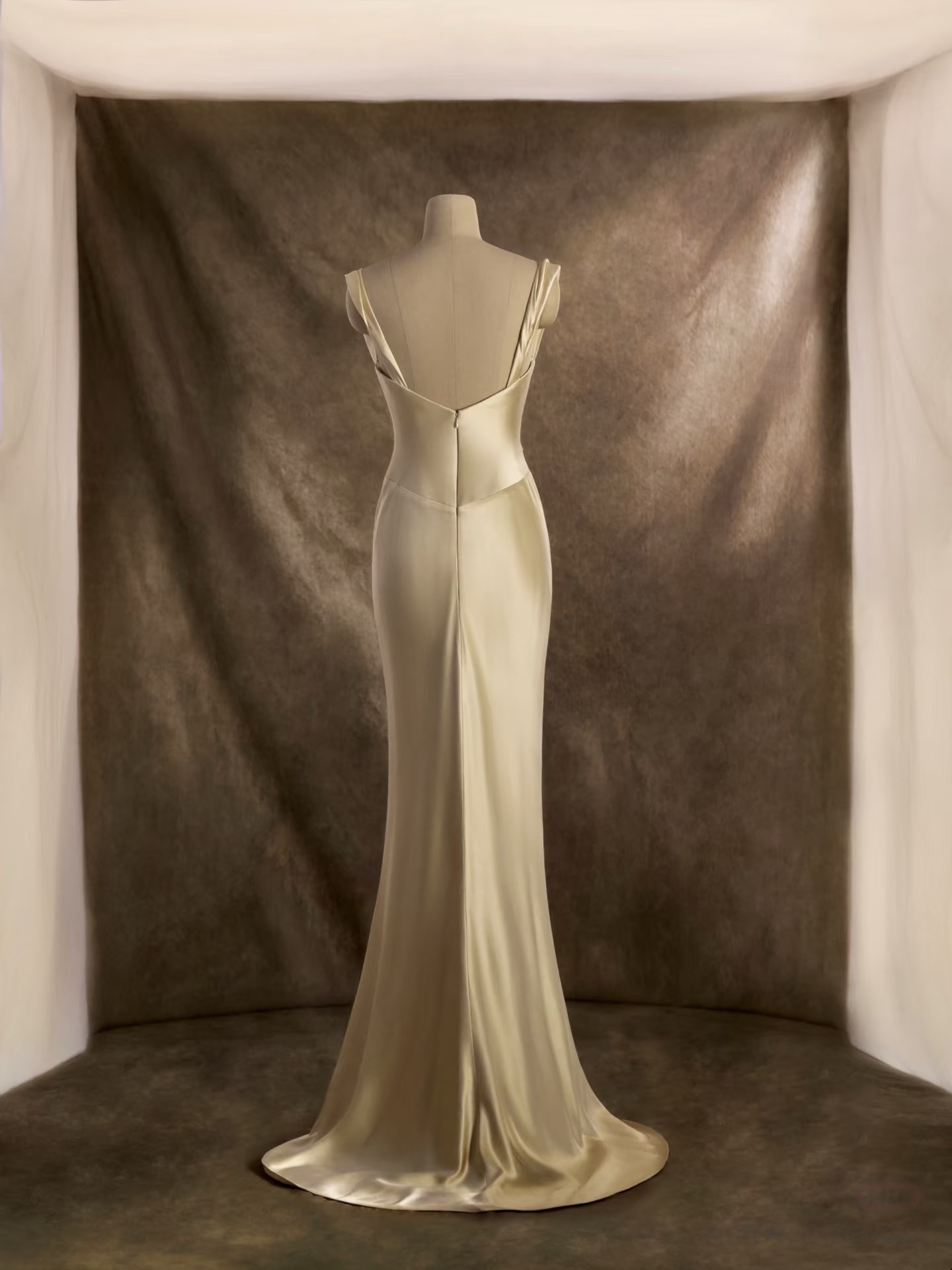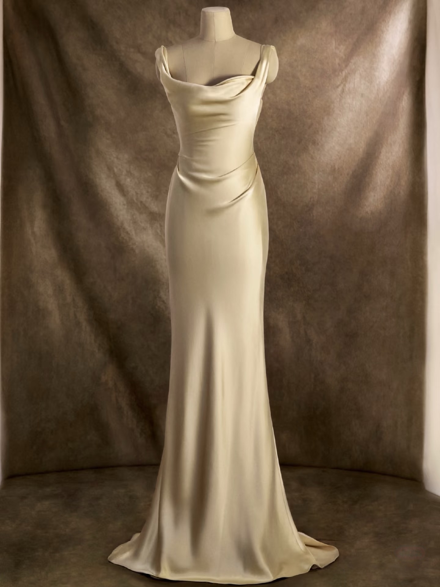 Champage Satin Sleveless Mermiad Floor Length Zipper Back Wedding Dress