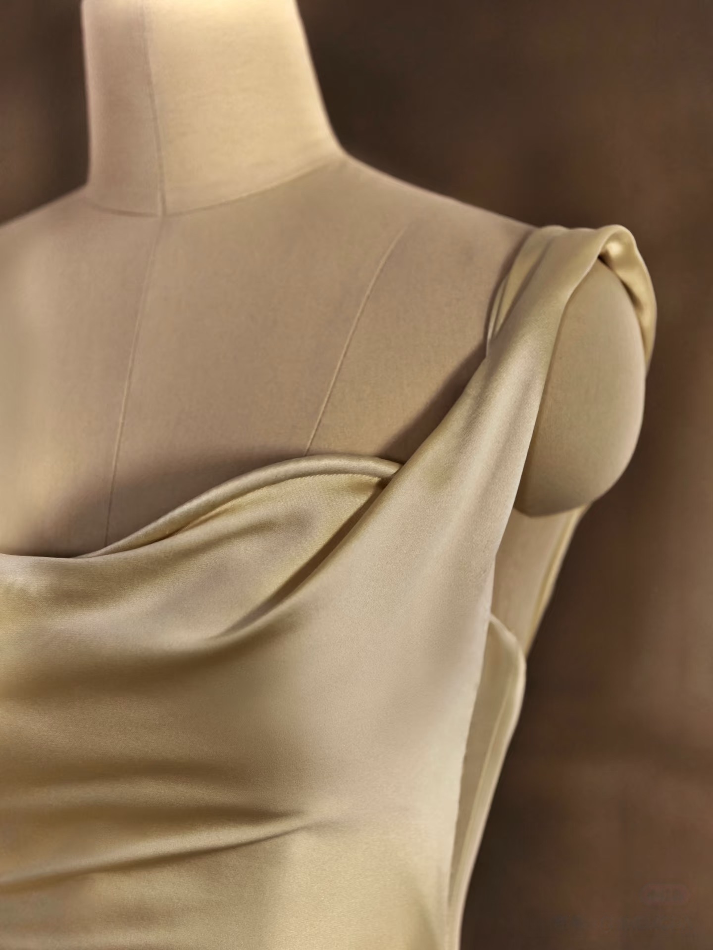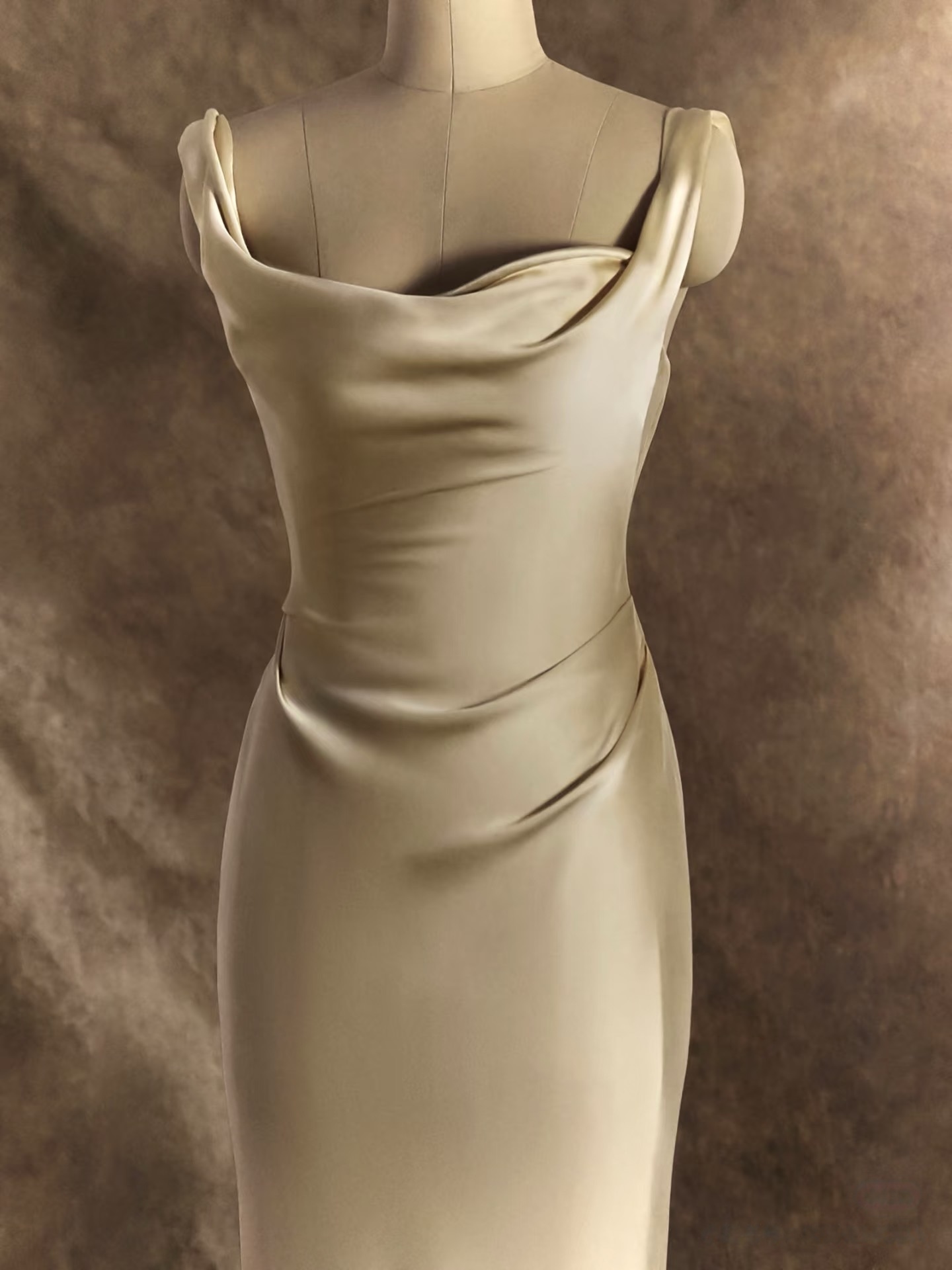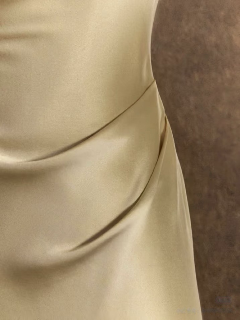 Champage Satin Sleveless Mermiad Floor Length Zipper Back Wedding Dress