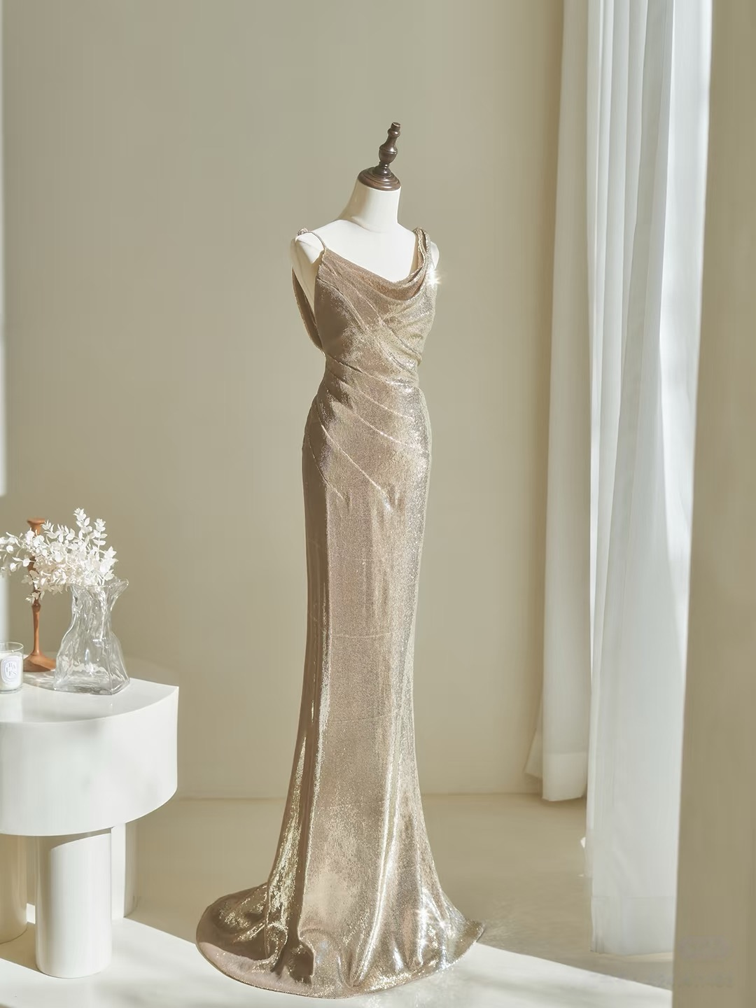 Gold Prom Dress, Mermaid Prom Dress, Sequined Prom Dress with Off Shoulder Straps, Long Prom Dress with Sweethear Neckline, Evening Dress.