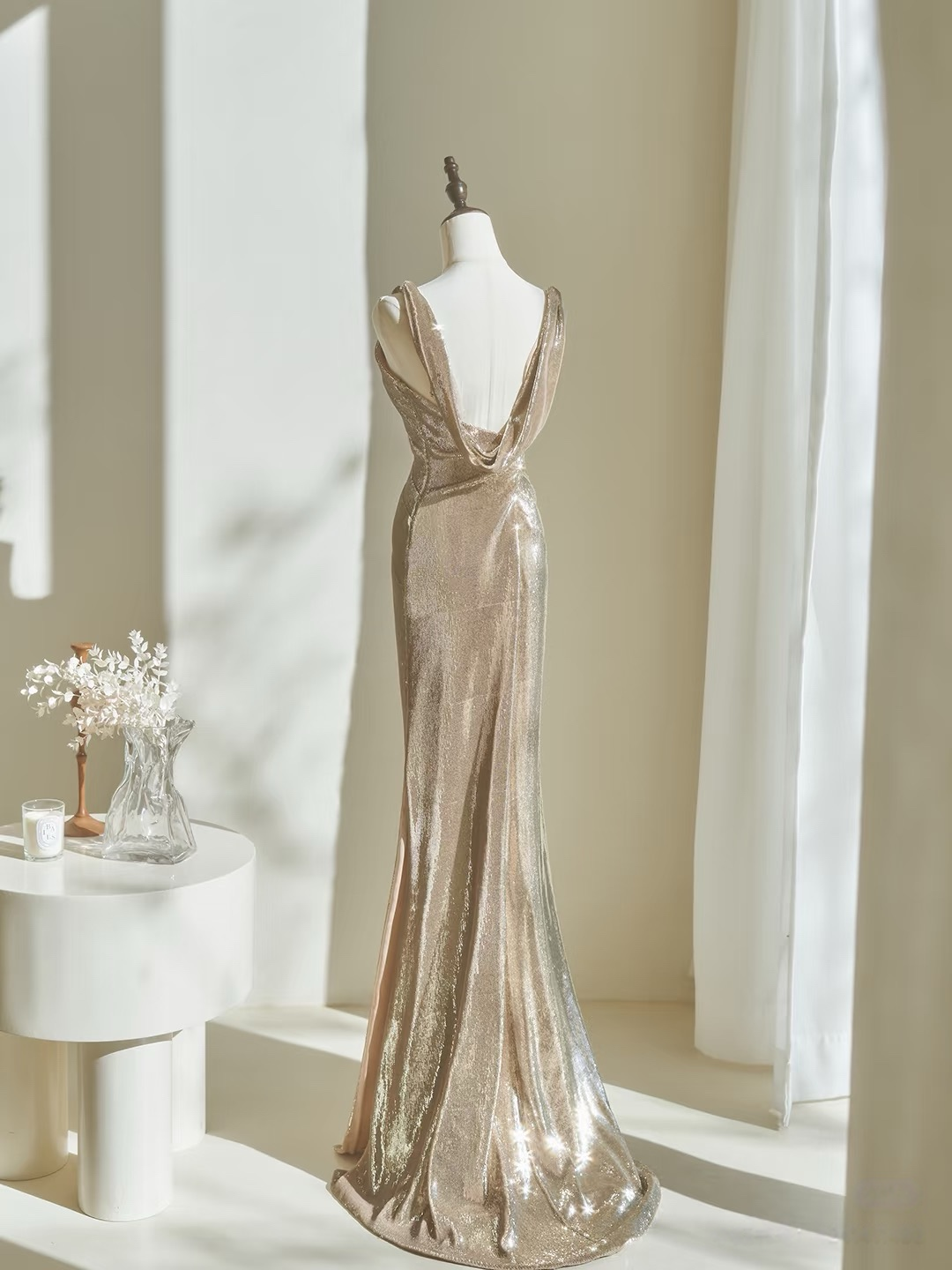 Gold Prom Dress, Mermaid Prom Dress, Sequined Prom Dress with Off Shoulder Straps, Long Prom Dress with Sweethear Neckline, Evening Dress