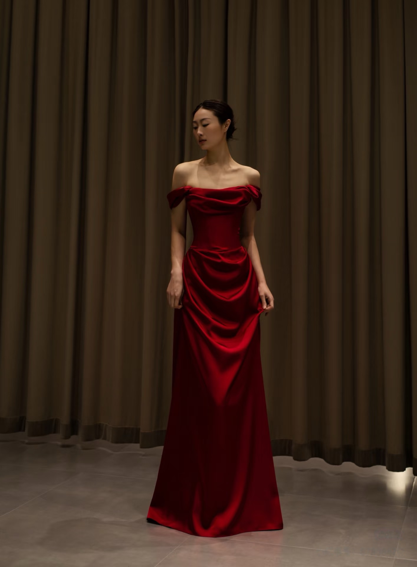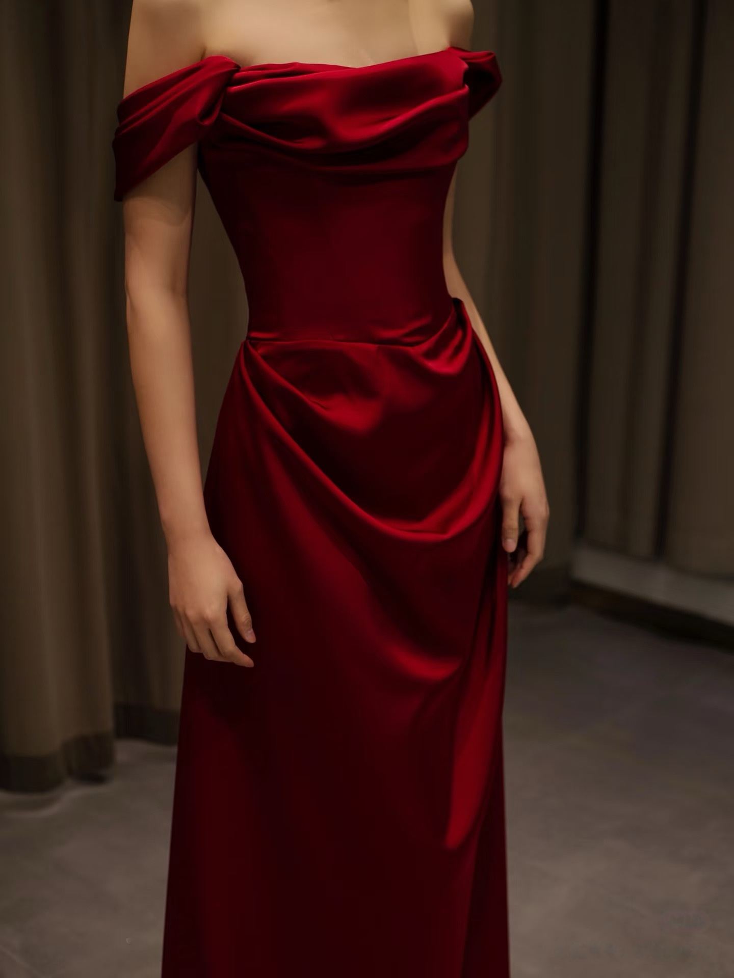 Luxurious Red Satin Prom Dress Off Shoulder Red Ball Gown Red Satin Maxi Dress Evening Gowns Wedding Party Dress Formal Dress