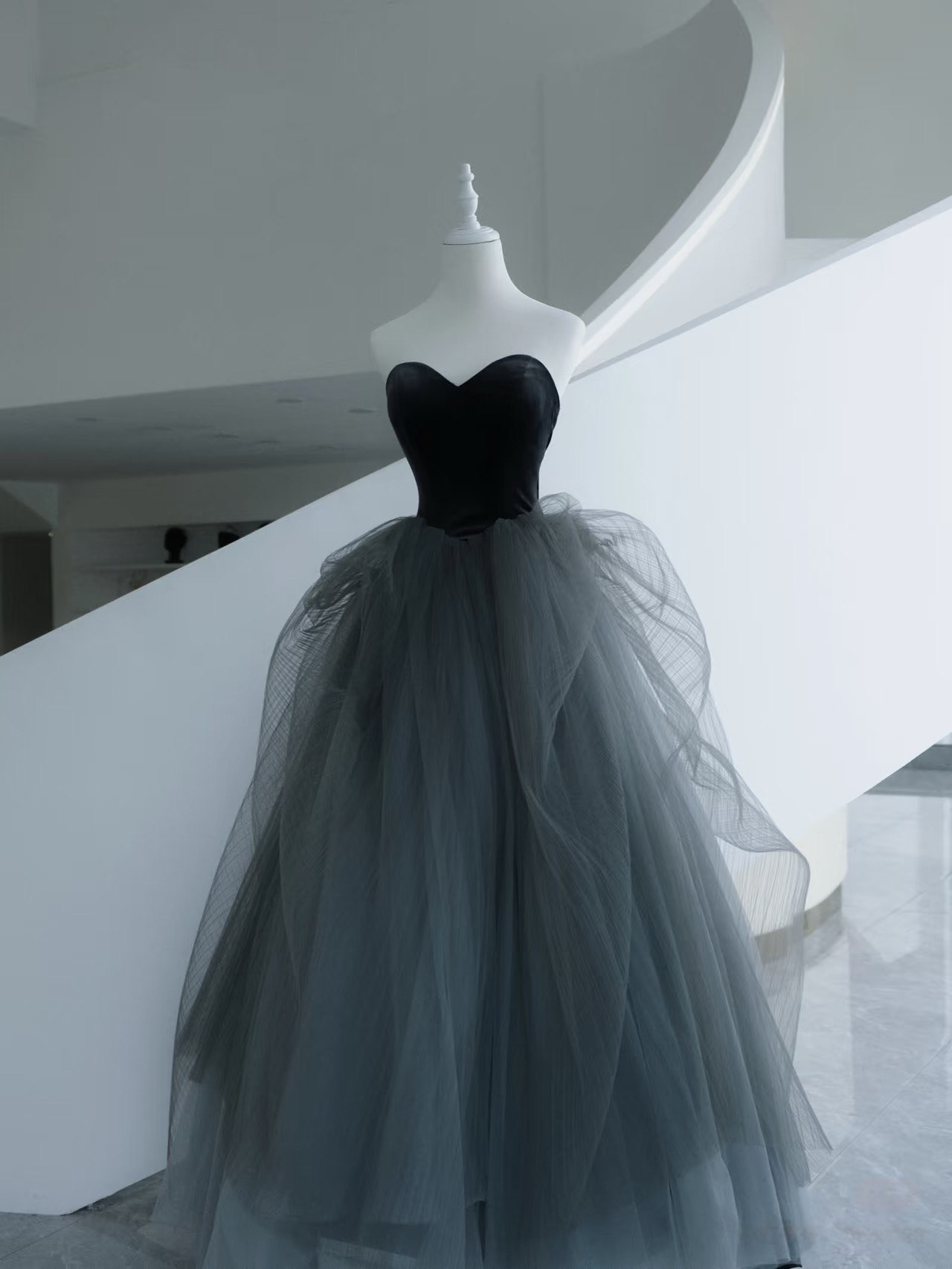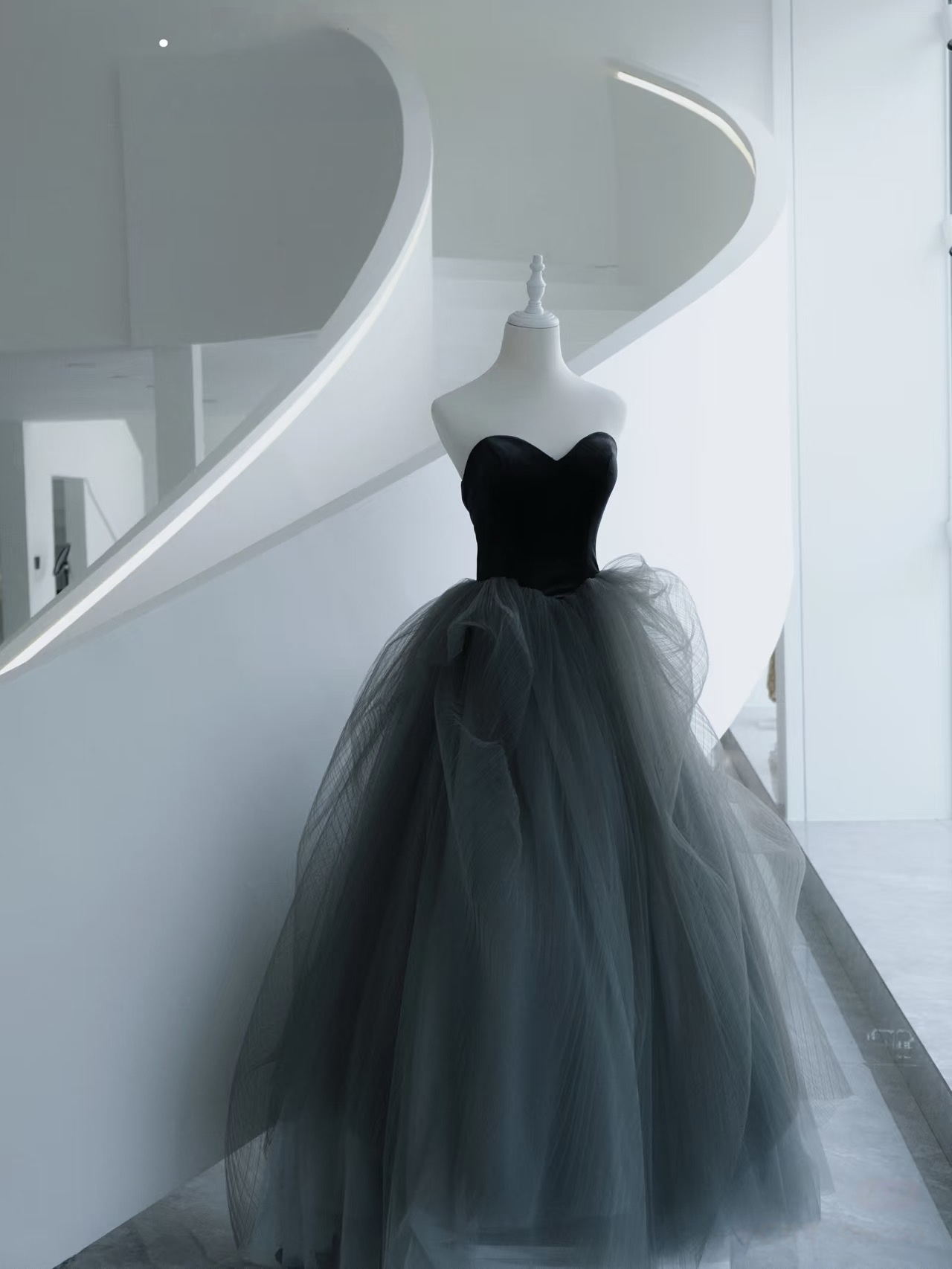 Elegant black velvet mini dress with grey tulle trim - perfect for birthdays, special occasions and evening parties