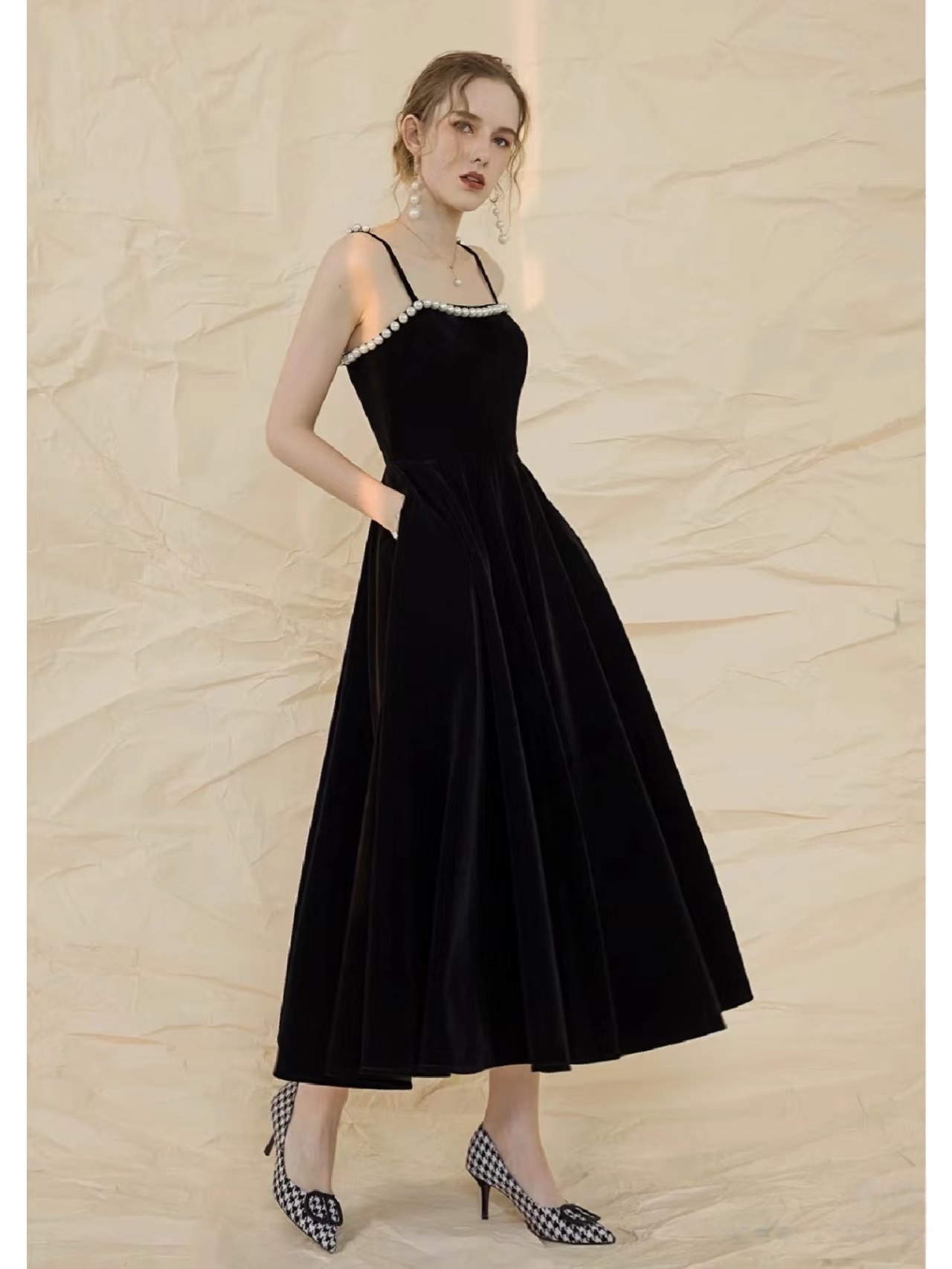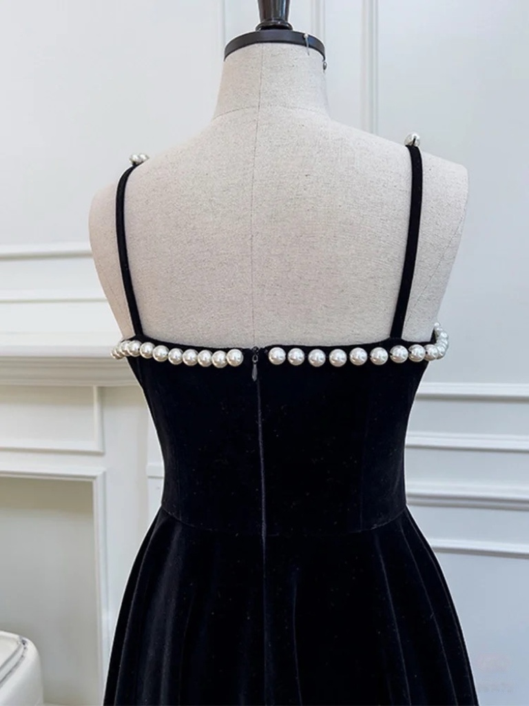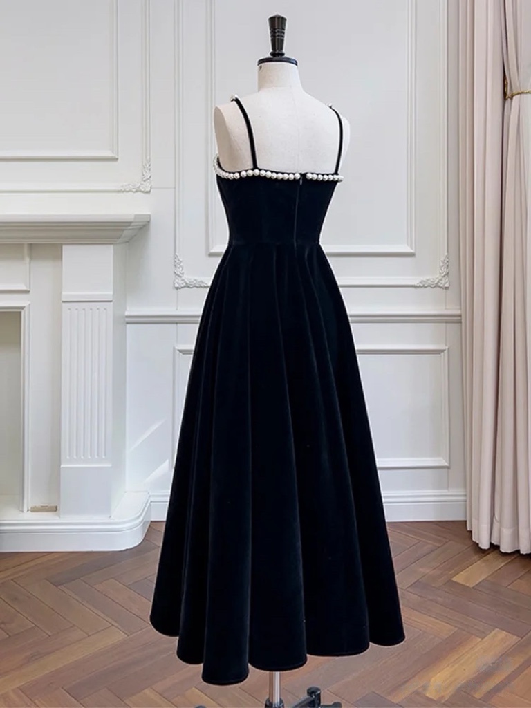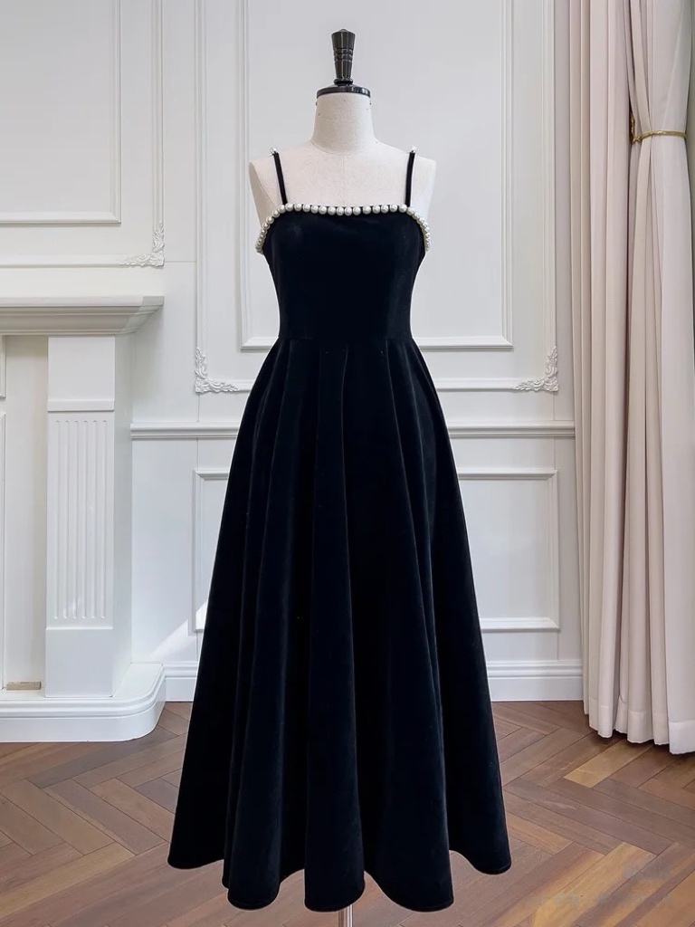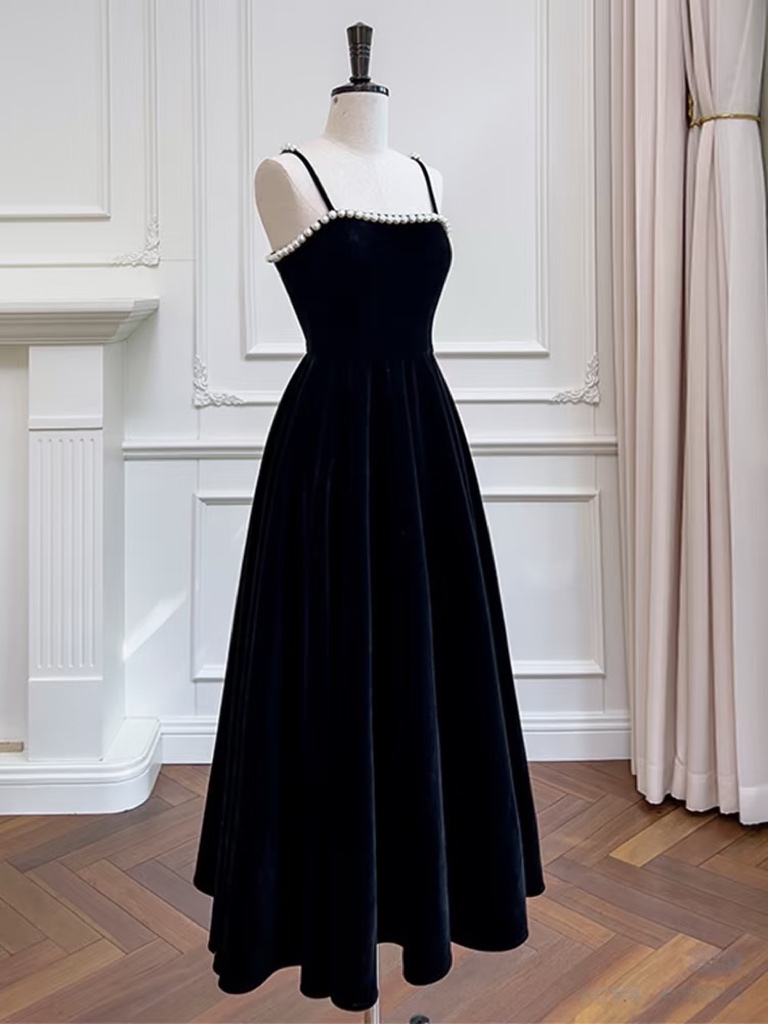 Burgundy Beaded Velvet Prom Dress with Spaghetti strap, Mid Long Evening Dress, Wedding Dress, Handmade Bridesmaid Dress, Evening Dress