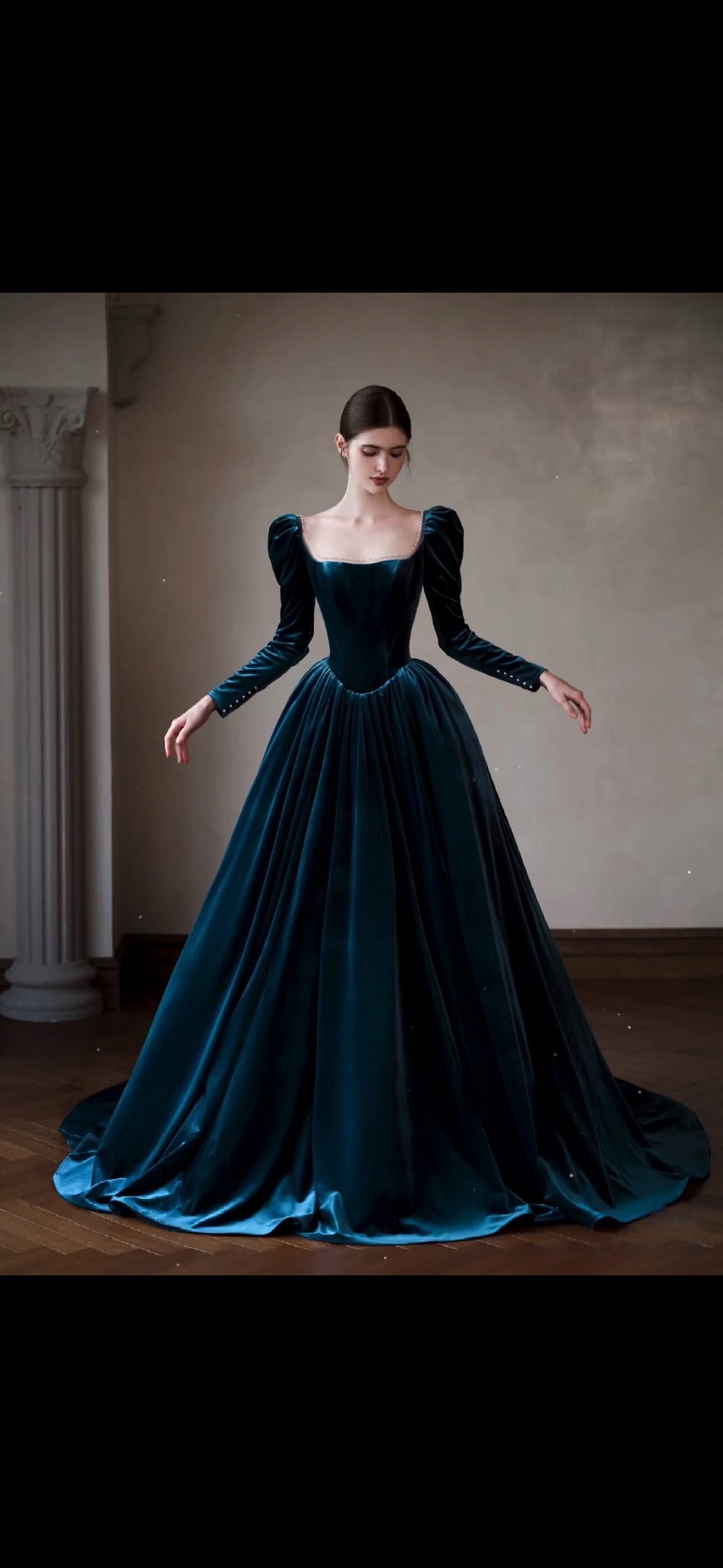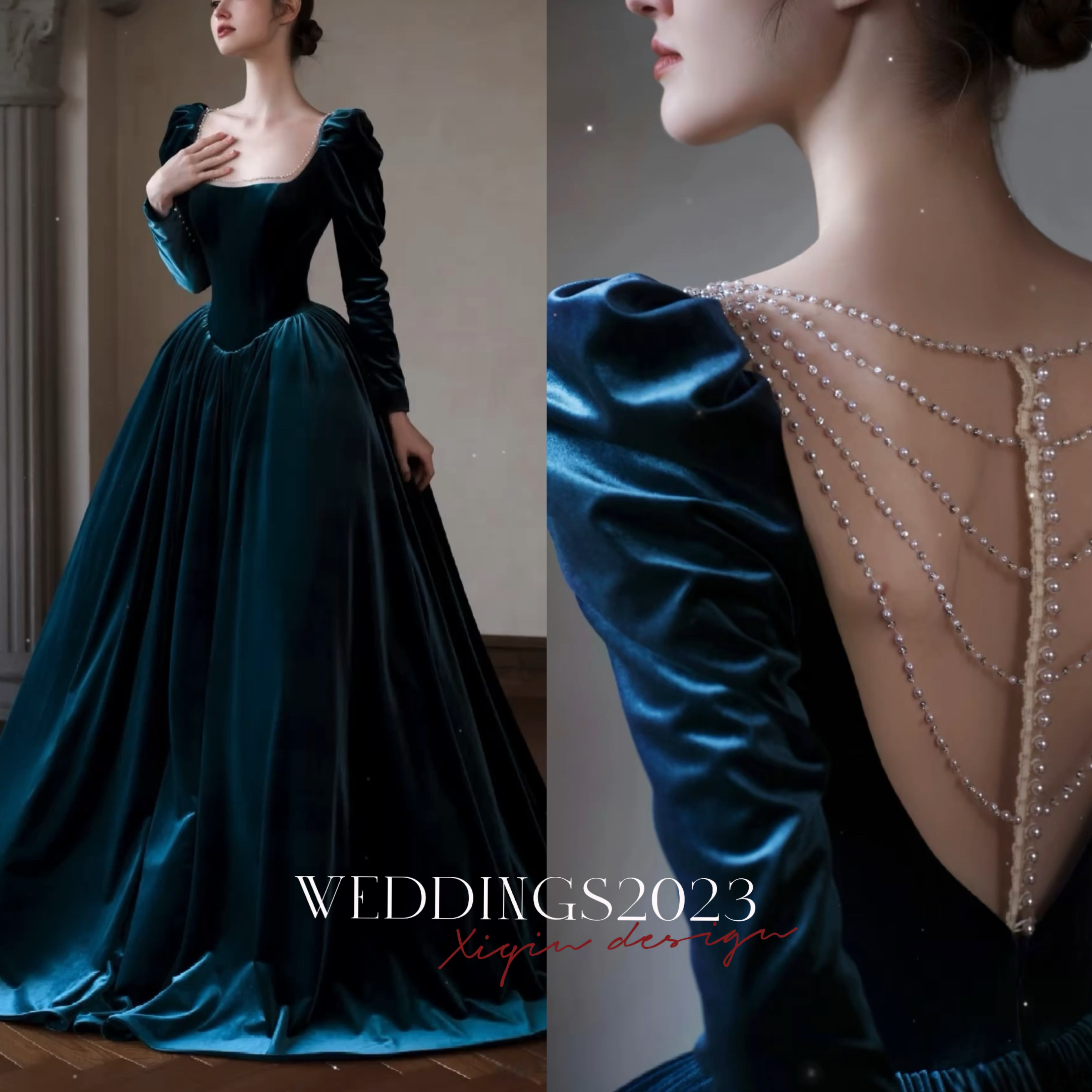 This custom black velvet gown is a masterpiece of elegance and sophistication that will elevate your evening style. Featuring a delicate boat neckline and a captivating open back, this long-sleeved gown is expertly crafted to flatter all body shapes and exude a timeless beauty. Crafted from premium velvet, it exudes a luxurious feel and is perfect for weddings, formal events, or any special occasion where you want to leave a lasting impression. This full-length gown offers both a personalized look and a sophisticated flair.