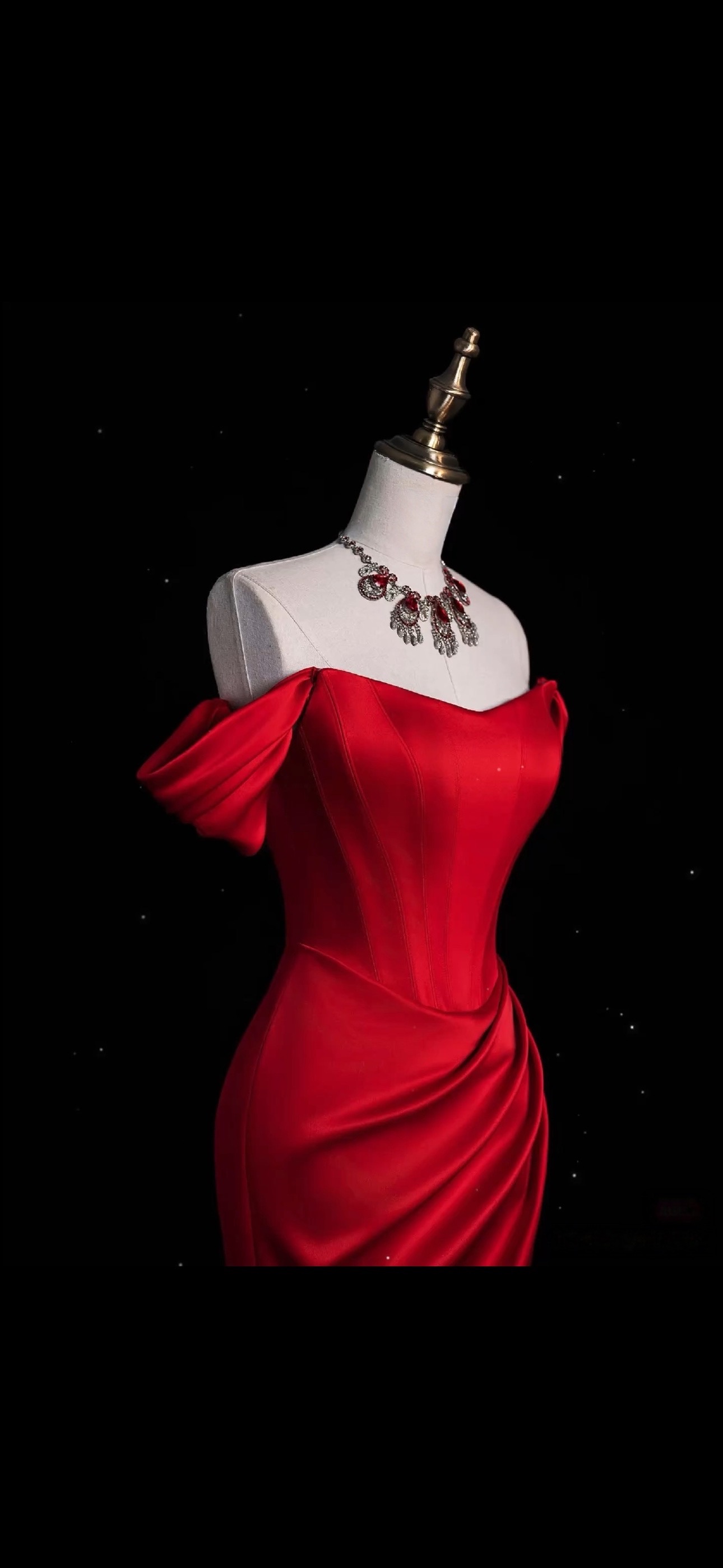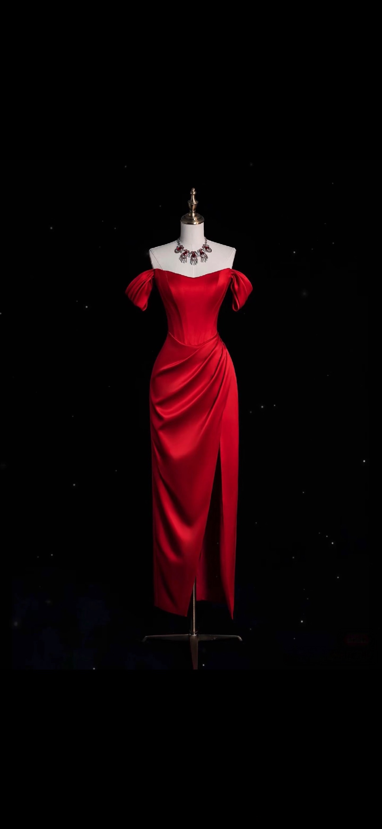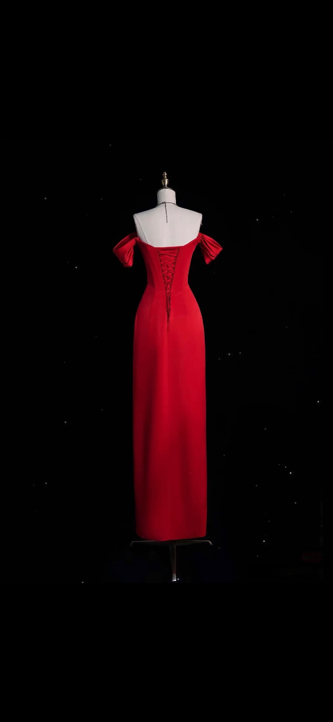 Red Dress,Long Satin dress, Party Dress, Cold Shoulder Dress,Bridesmades Dress, Gift For Her, Engagement Dress, Gift For Bride