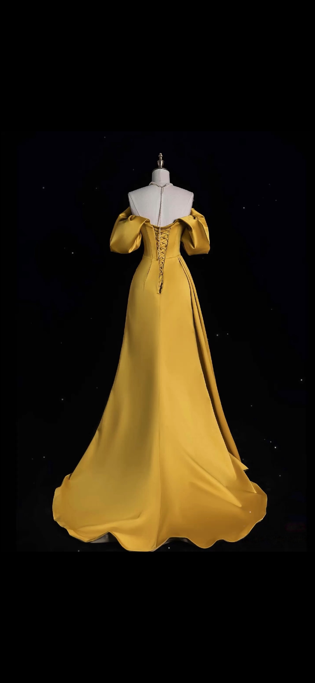 Satin Elegant Dress, Bridesmaid Dress, Long Evening Dress, Yellow Prom Dress, Silk dress, Red Satin Long Dress, Prom Fashion Dress