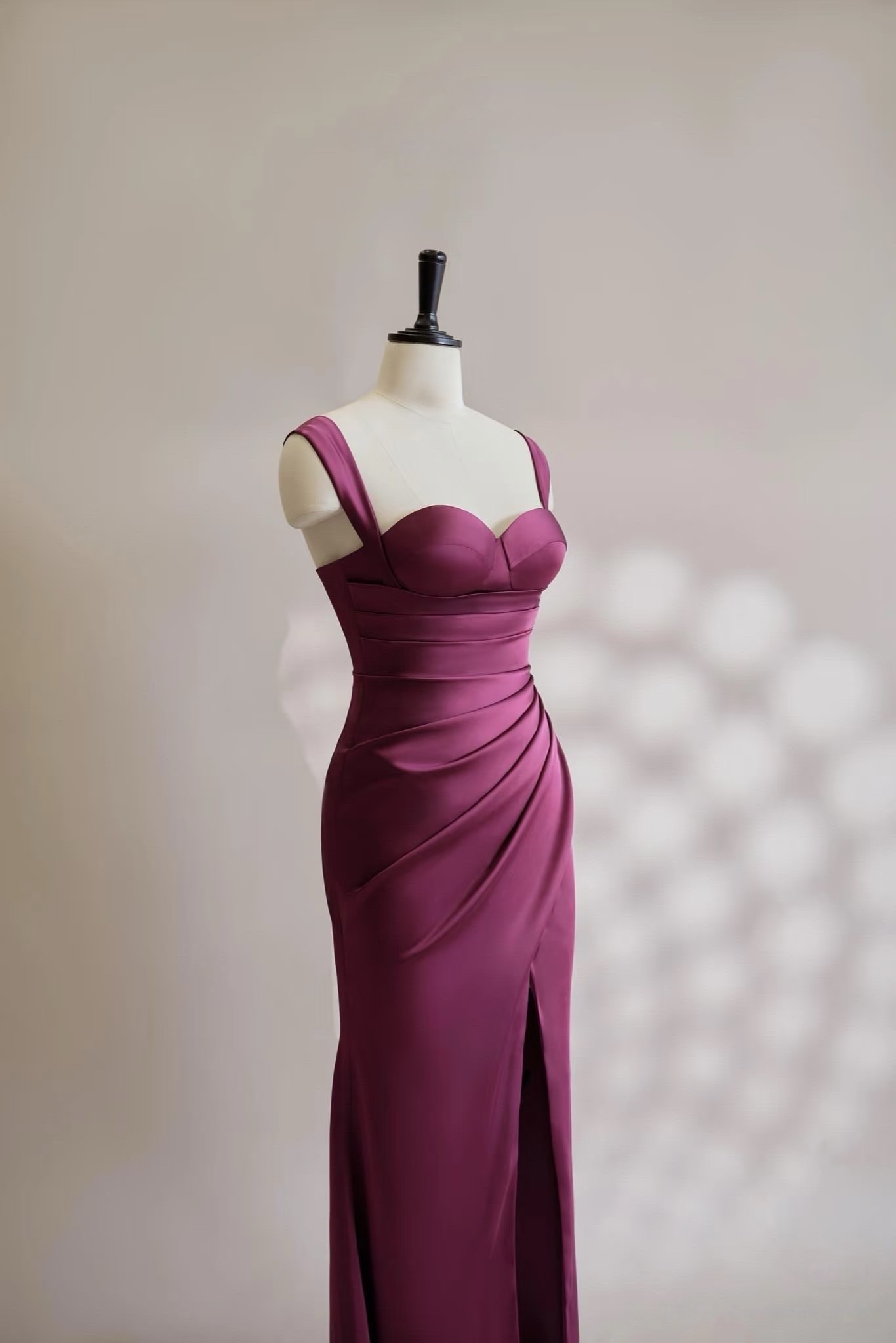 Purple Dress Satin dresses Slip Coctail Dress Plum Bridesmaid Dress Backless Wedding Guest Dress Prom Gown