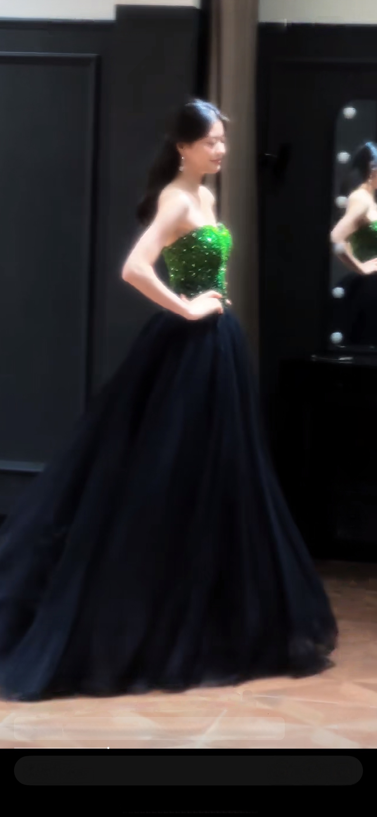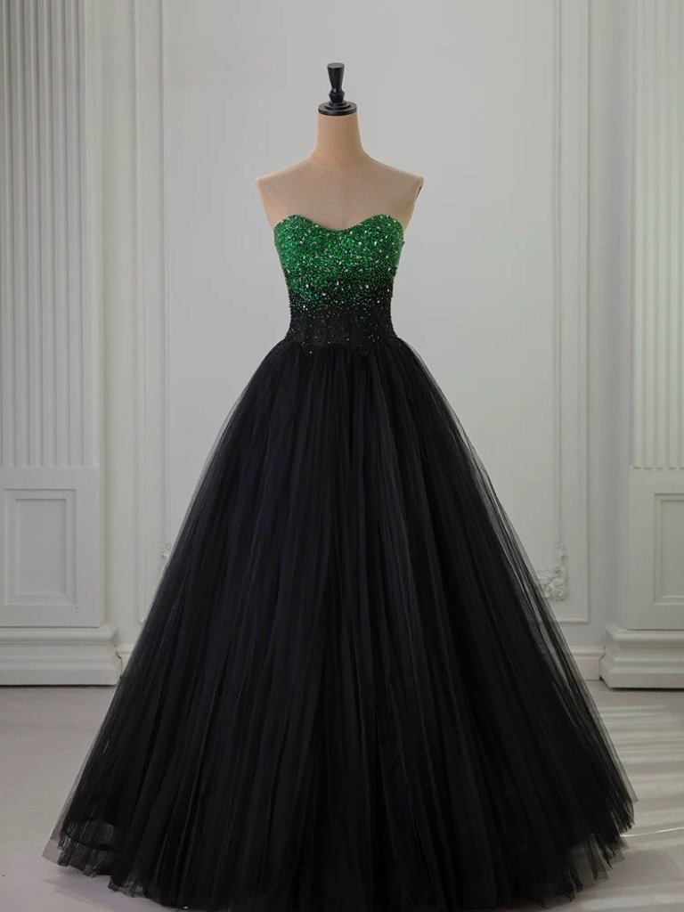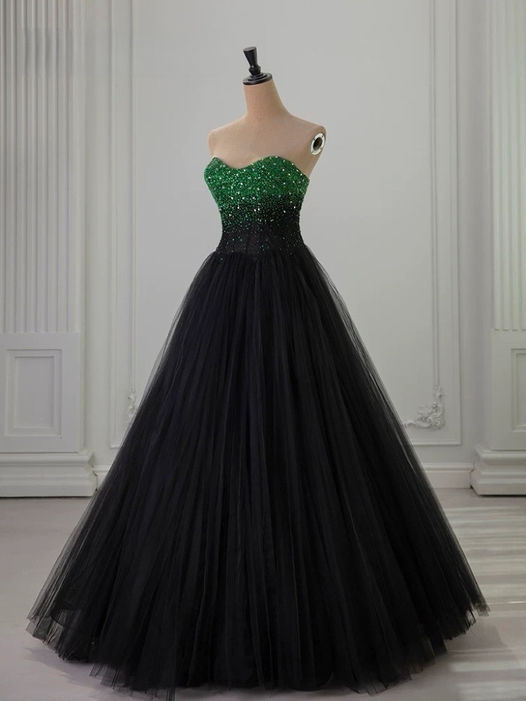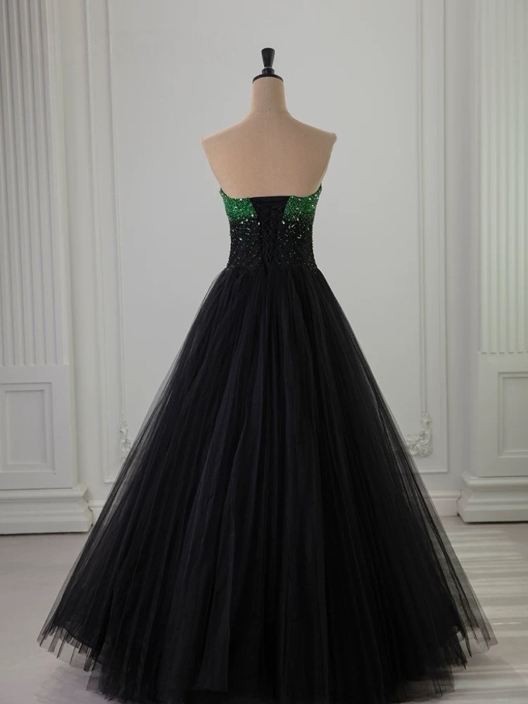 Black Formal Strapless Tulle Prom Dress,Green and Balck Beaded prom dress ,Wedding Dress,Birthday Ball Gown,Graduation Dress,Evening Formal Dress,Dress