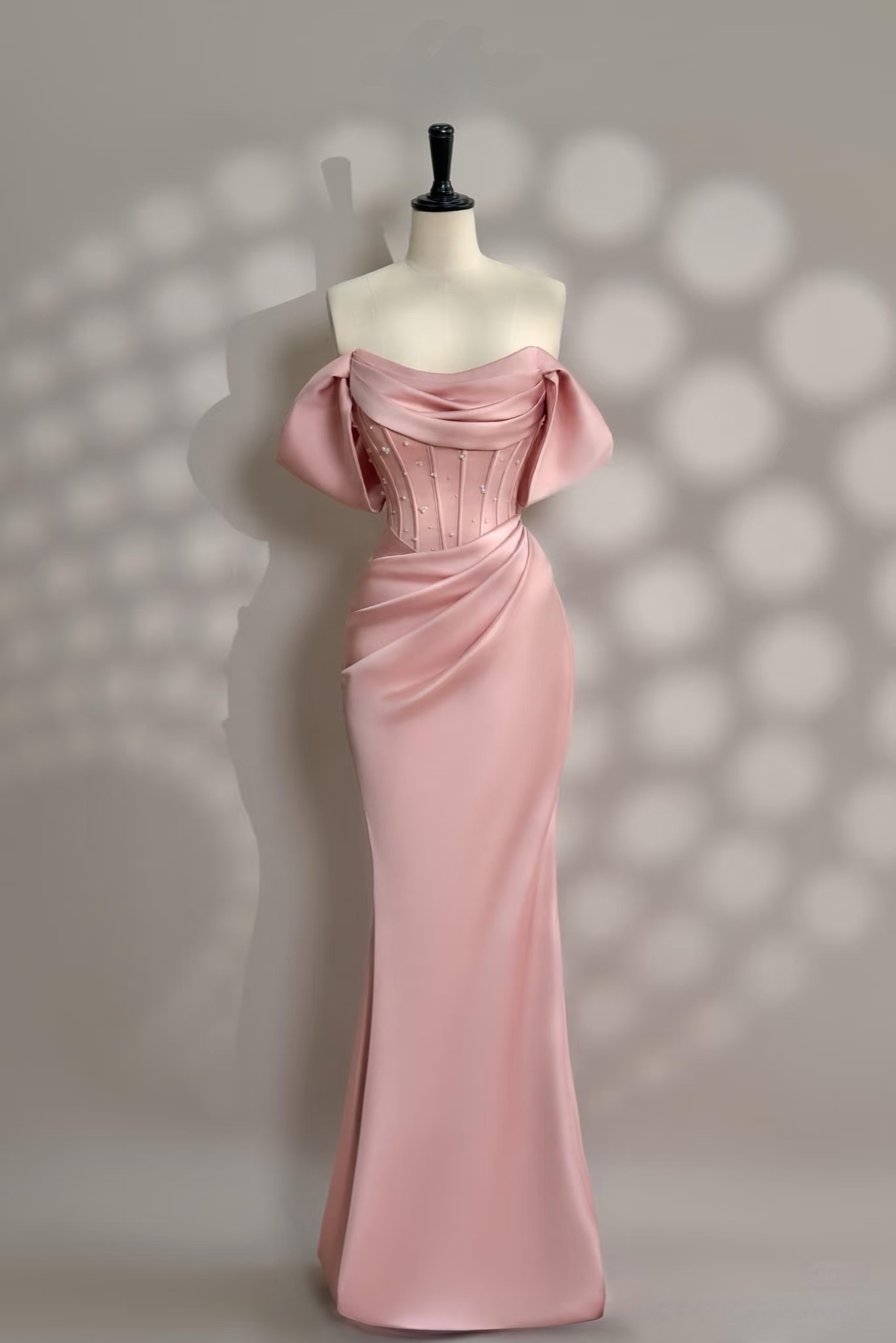 Pink dress - Long Satin dress - Party Dress - Cold Shoulder Dress - Bridesmades Dress - Gift For Her - Engagement Dress