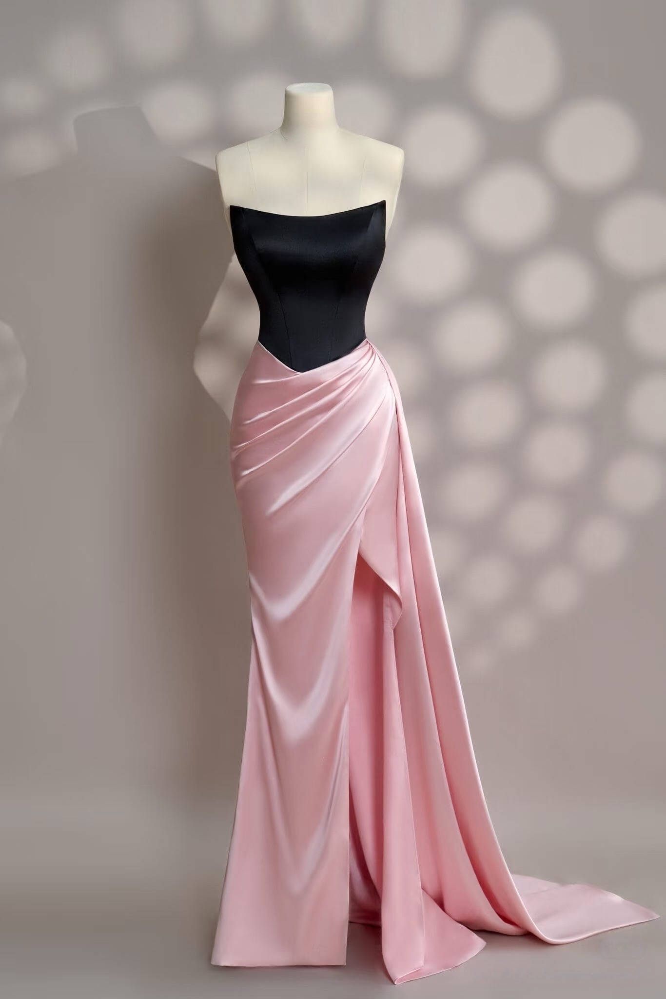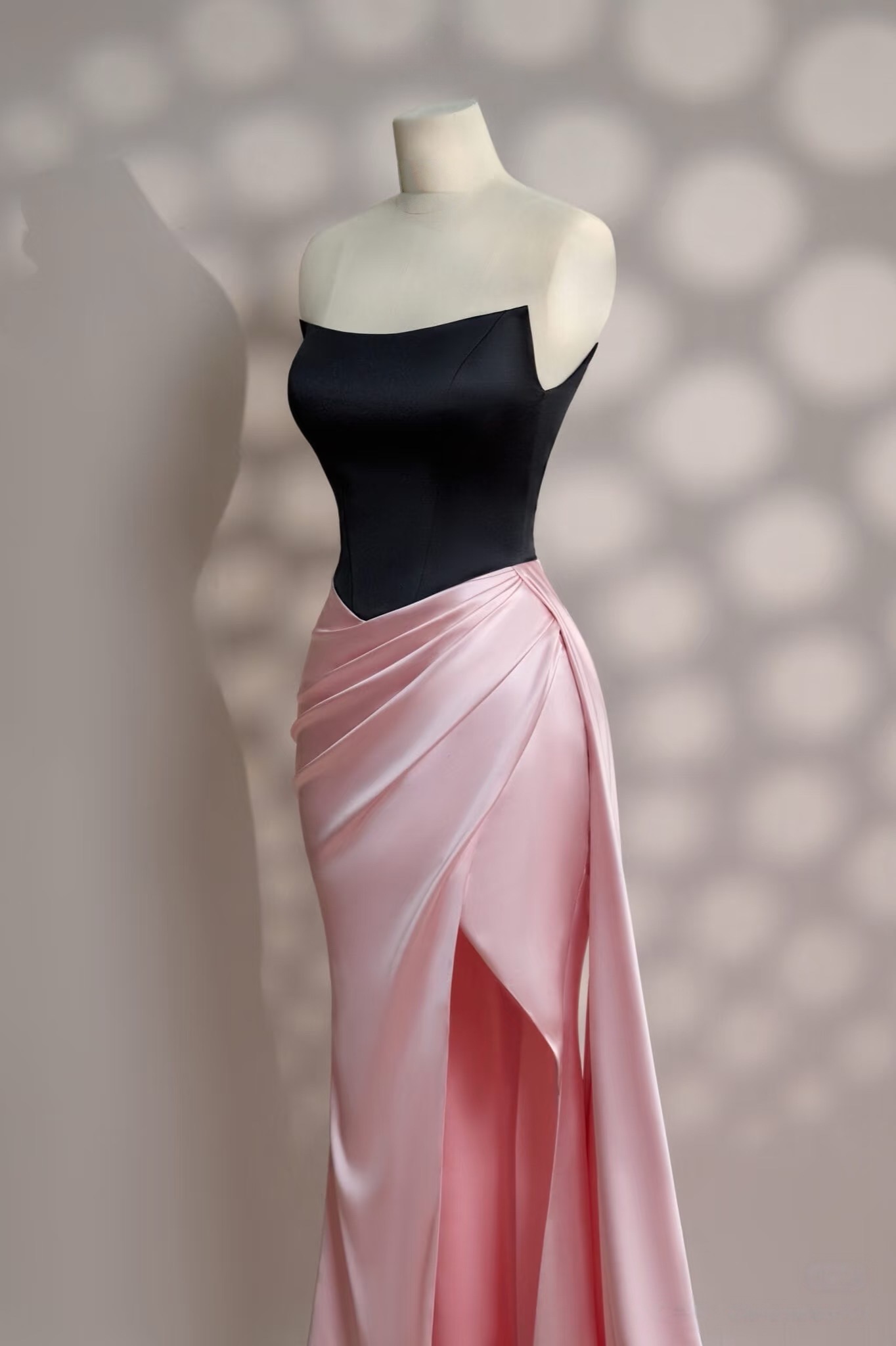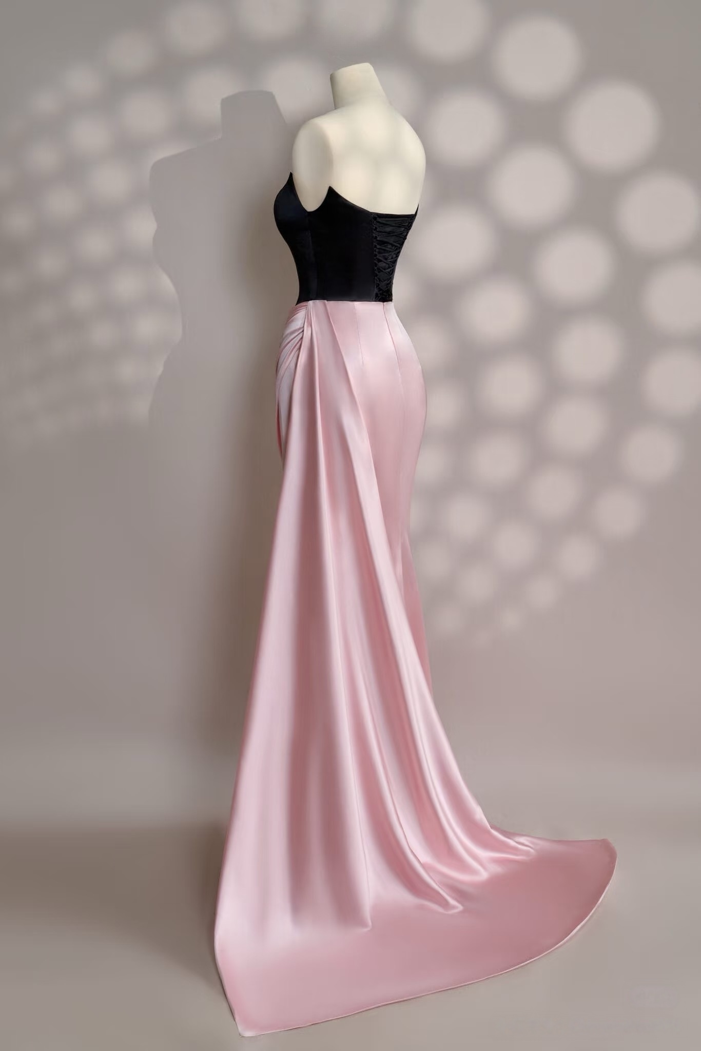 Pink dress - Long Satin dress - Party Dress - Cold Shoulder Dress - Bridesmades Dress - Gift For Her - Engagement Dress
