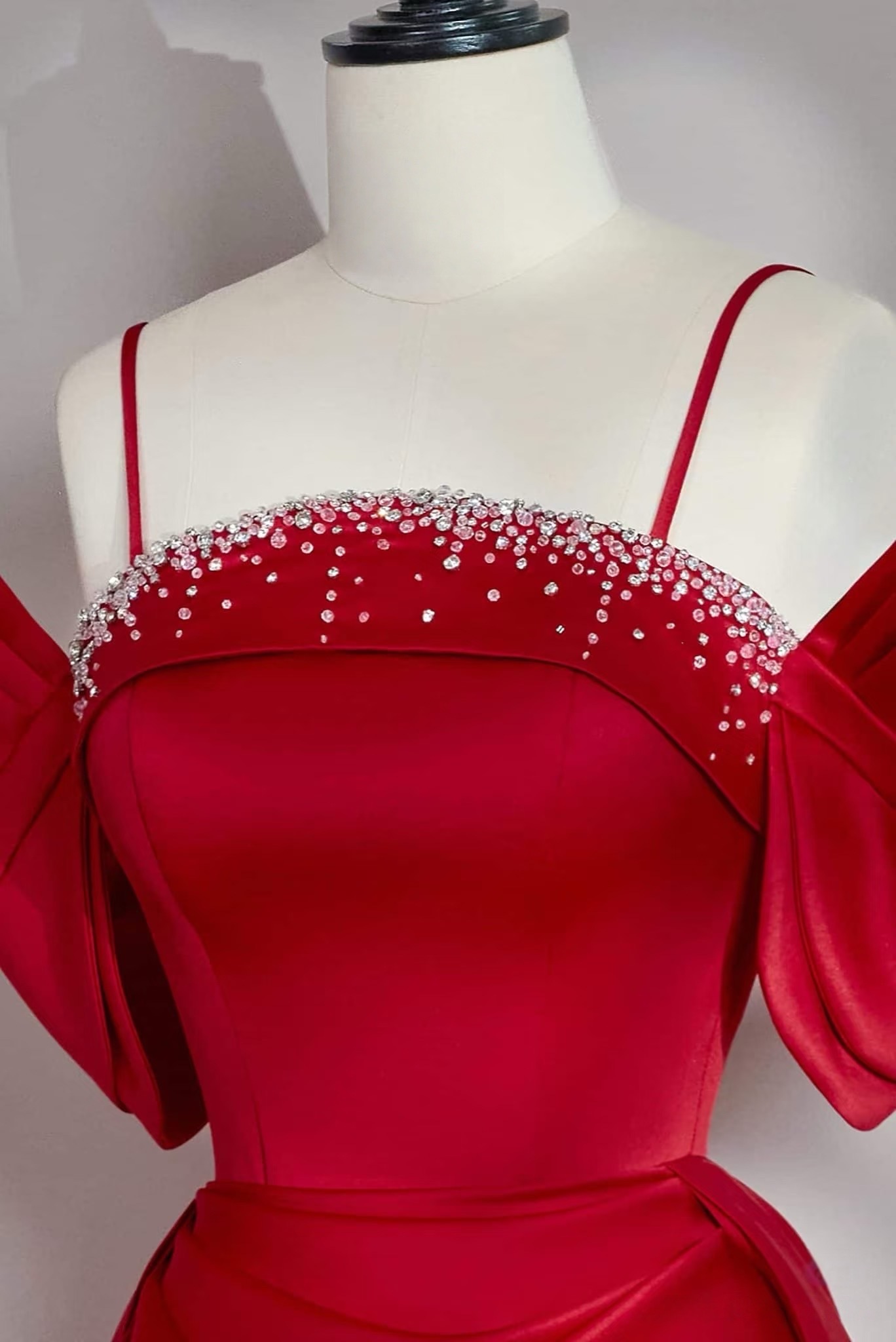 Red Satin Maxi Dress with Rhinestone Detail, Silk Spaghetti Strap Dress for Prom, Grad Party, Cocktail, Birthday or Evening Event