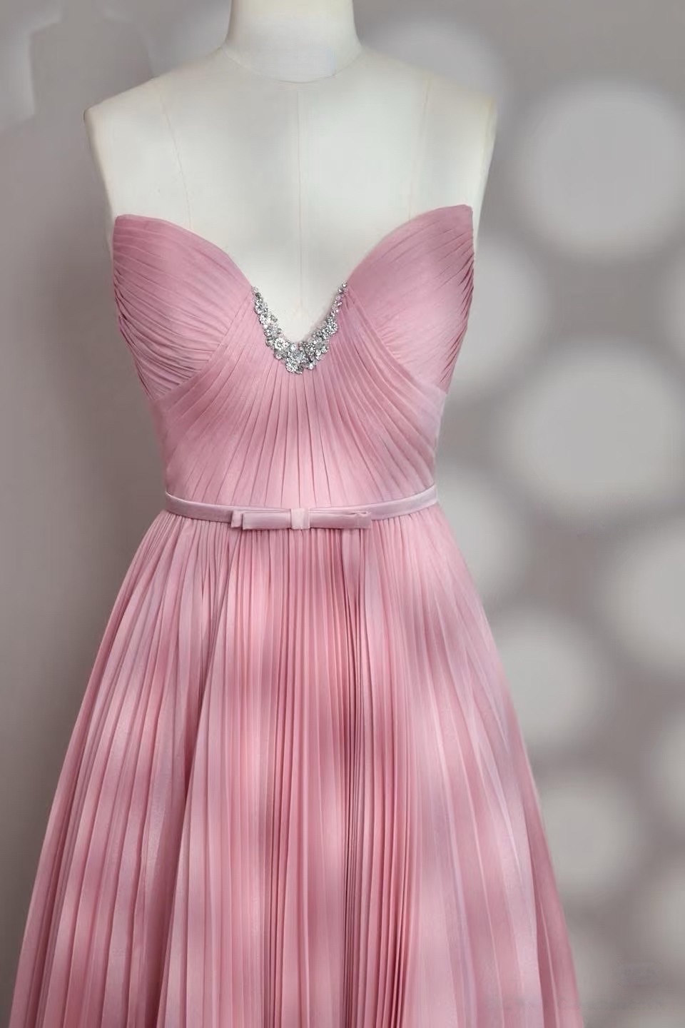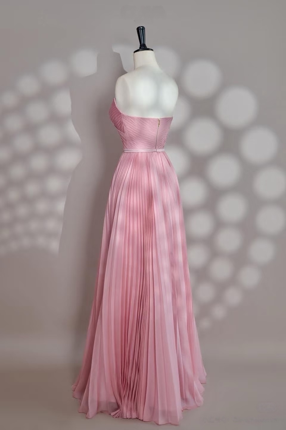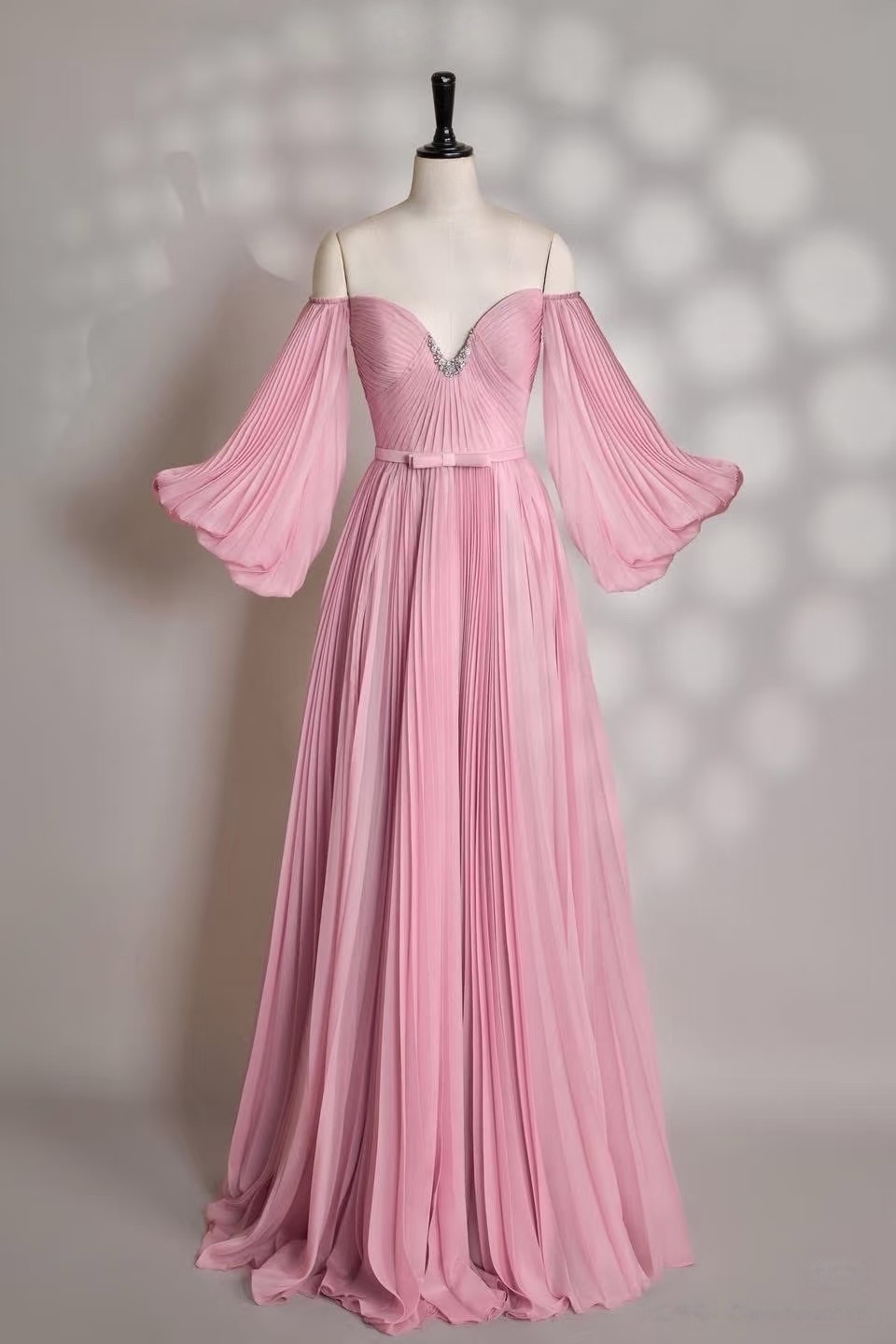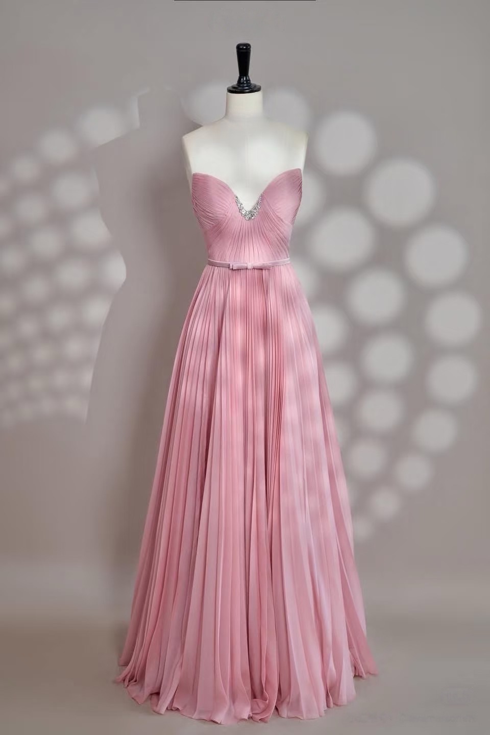 Beautiful Pink Strapless U-neck Beaded Long Dress with Beading and Detachable Sleeves
