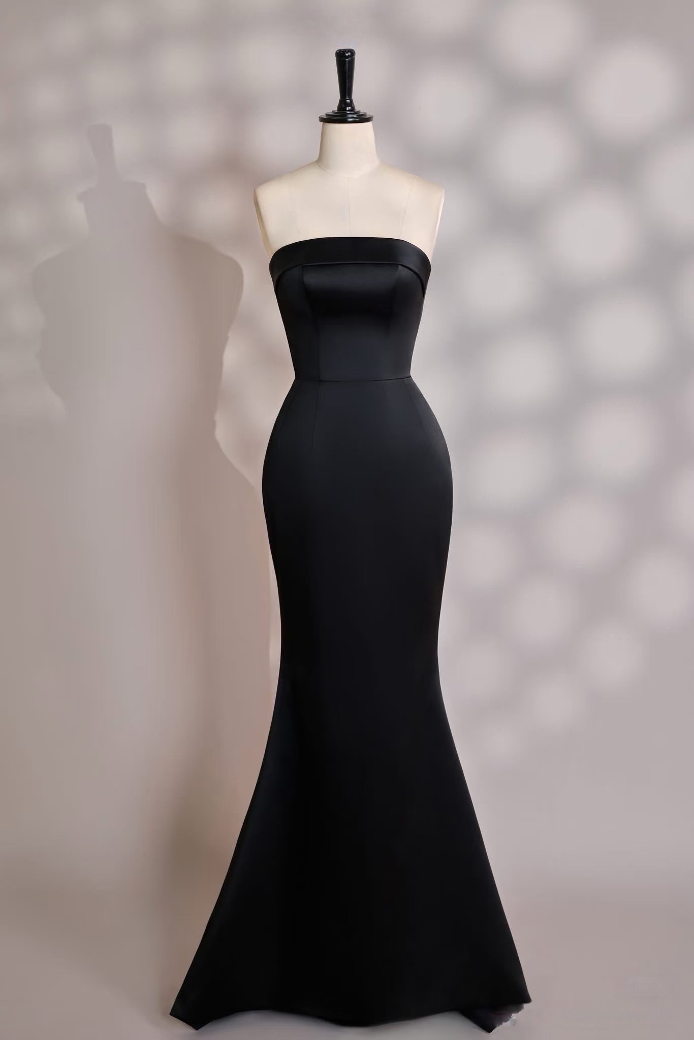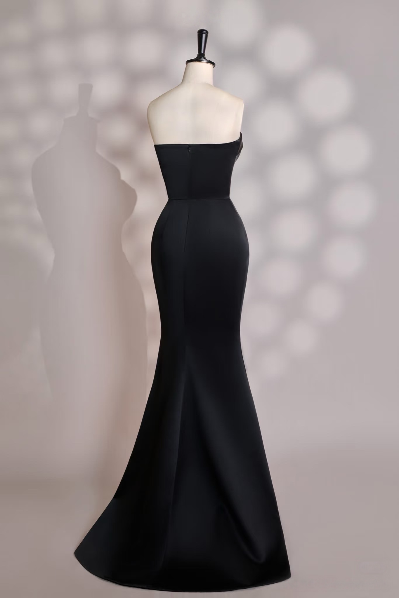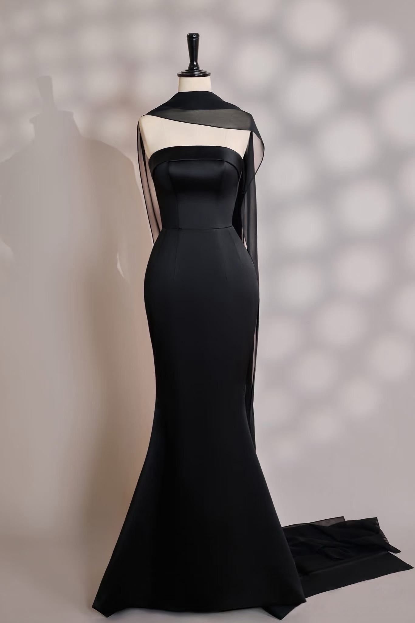 Strapless Mermaid Satin Black Dress with Shawl - Elegant Evening Gown, Formal Wear For Prom & Weddings, Luxury Party Dress