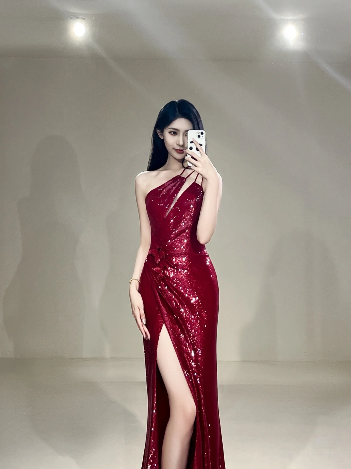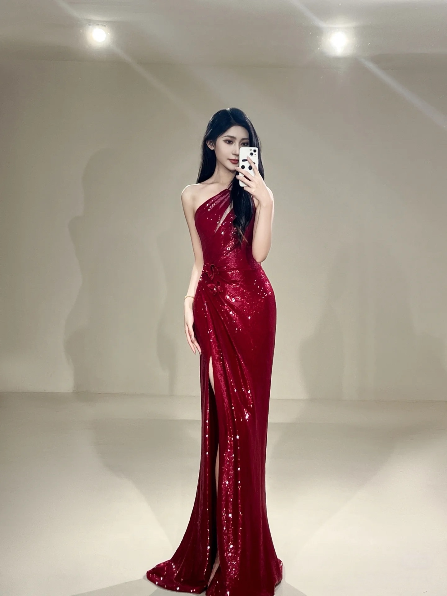 Burgundy Sequin Slit Mermaid Floor Length Prom Dress,off the shoulder prom gown