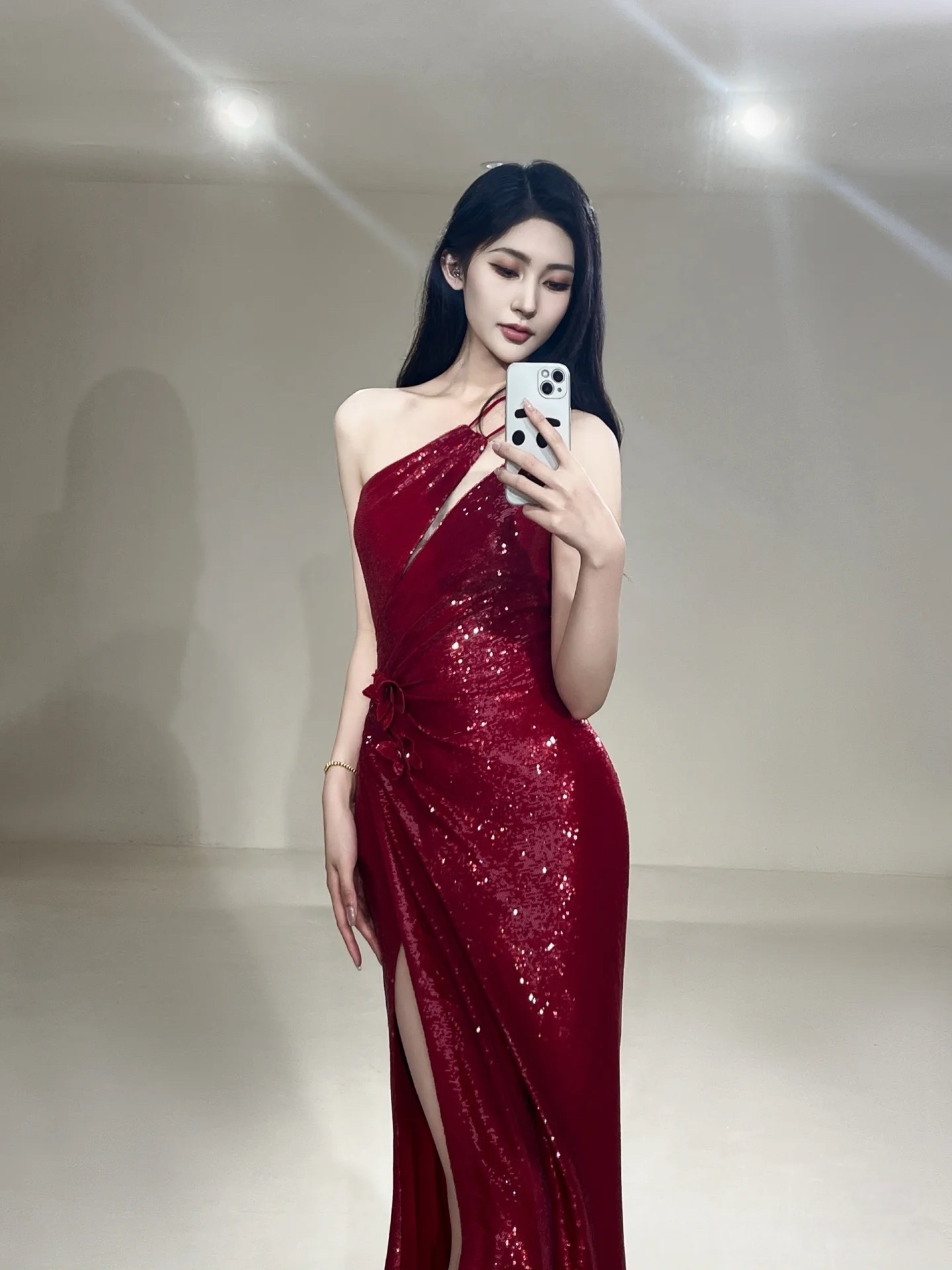Shimmering Spaghetti Strap Sequined Mermaid Pearl Embellished Slit Prom Dress , Spaghetti Straps Evening Gown, Formal Wedding Dress,Long Prom Dress, Engagement Dress