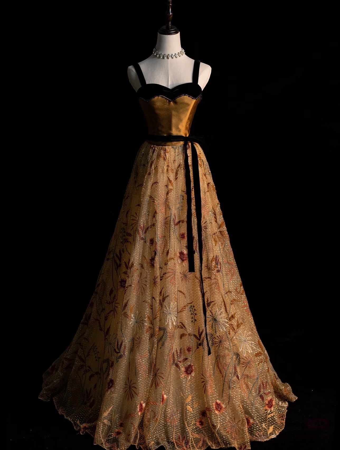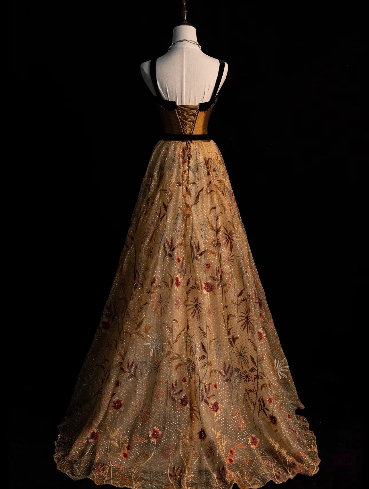 Fashionable Off-the-shoulder Black Velvet Beaded Floor-Length Lace Prom Dress, Back-To-School Dress
