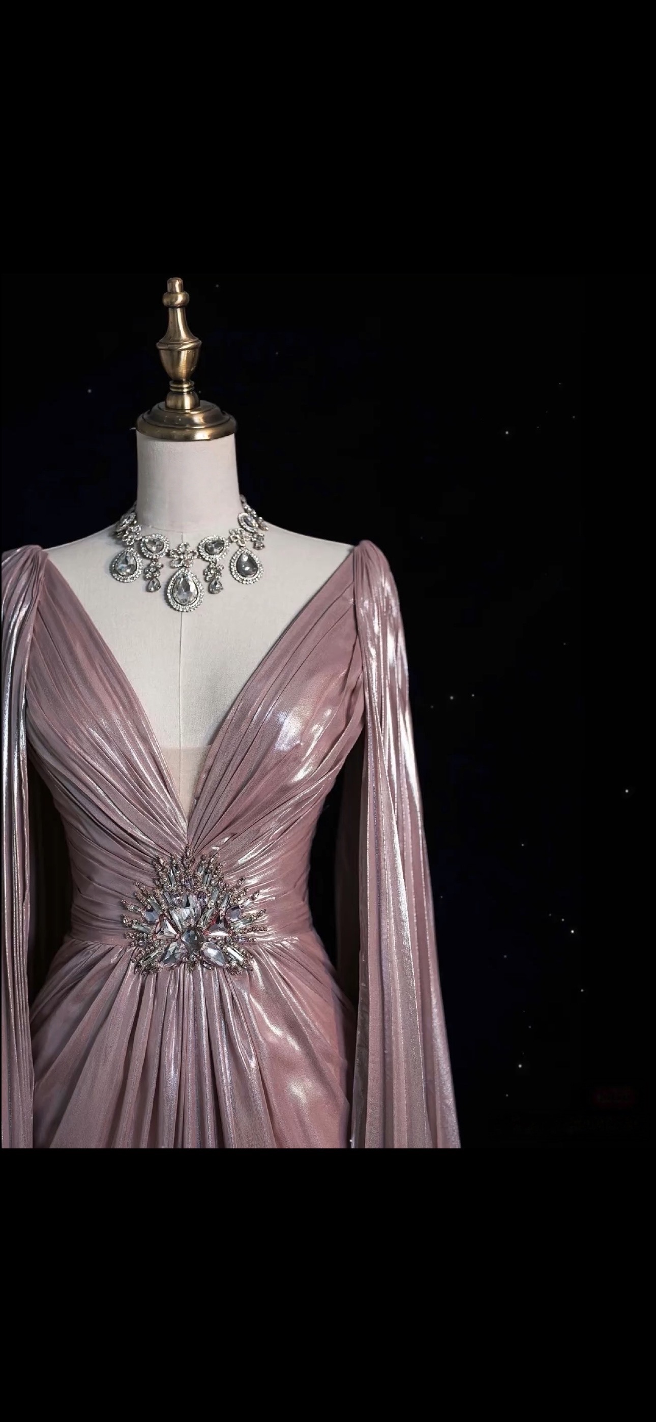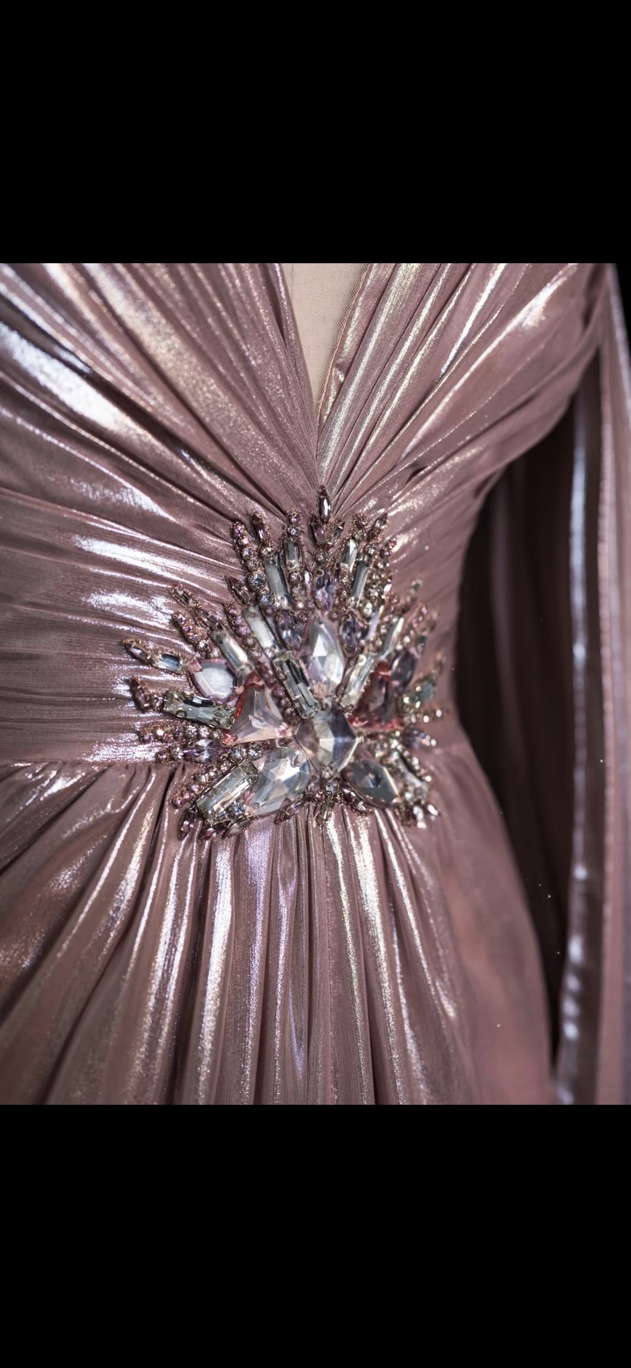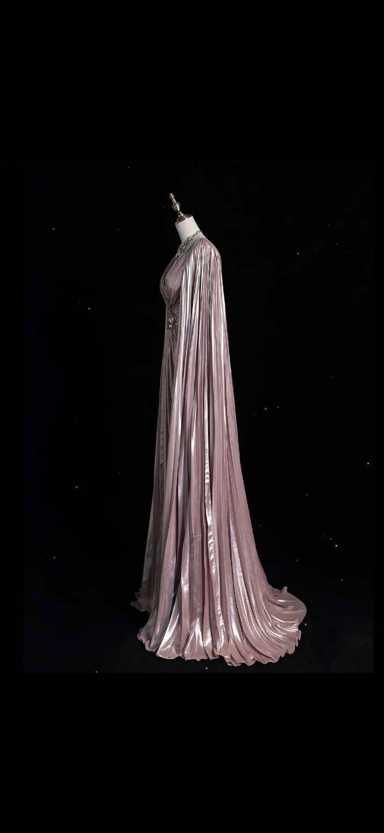 Elegant Light Pink Deep V-neck Cape Design Pleated Waist Crystal Embellishment Formal Prom Dresses