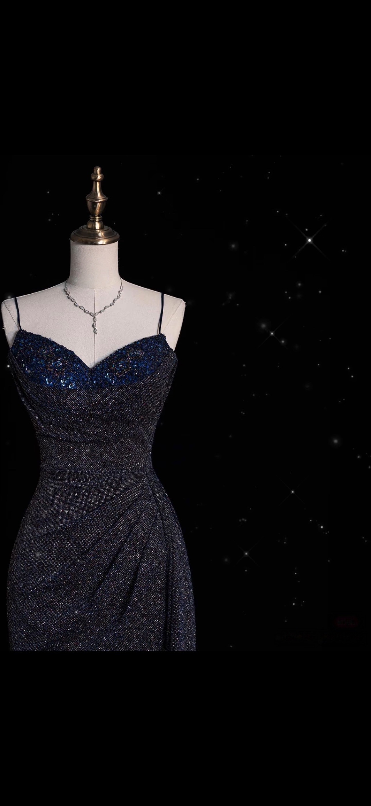 Dreamy Starry Dark Blue Strapless Fishtail Dress with Sequined Lace Evening Dress