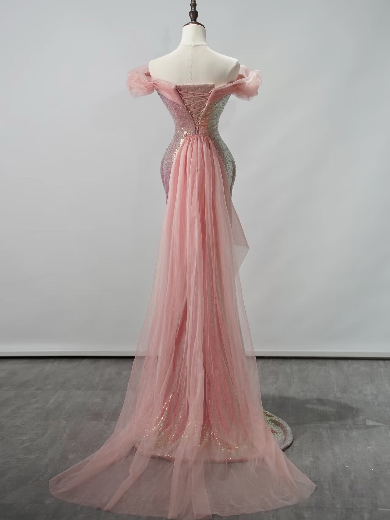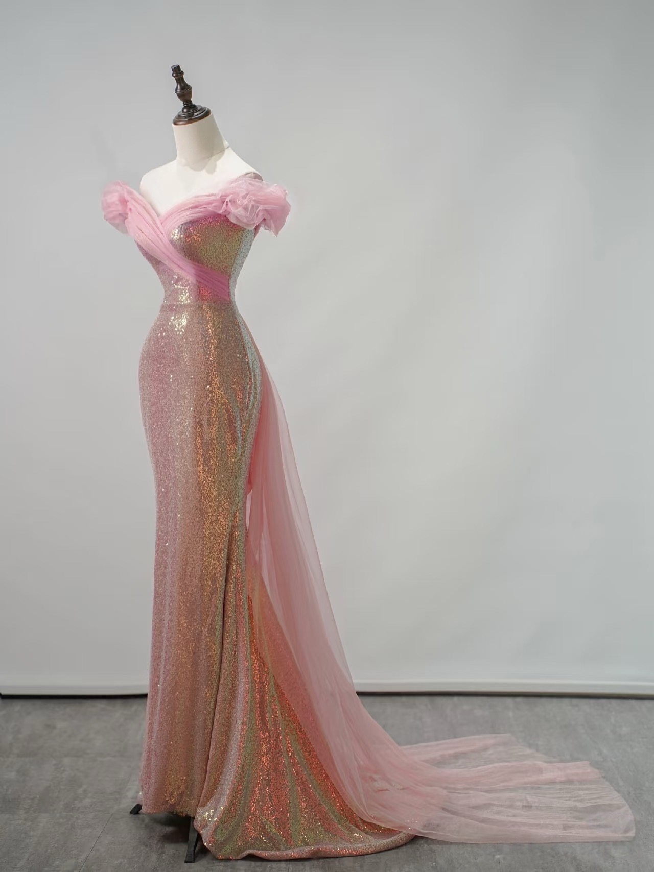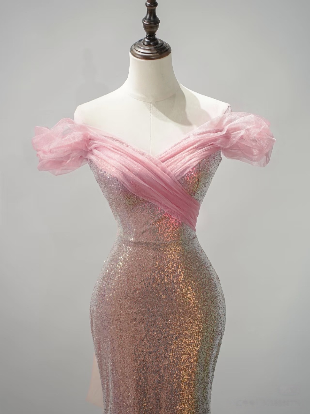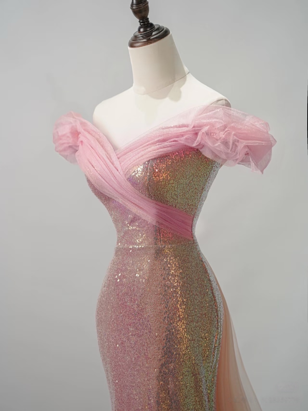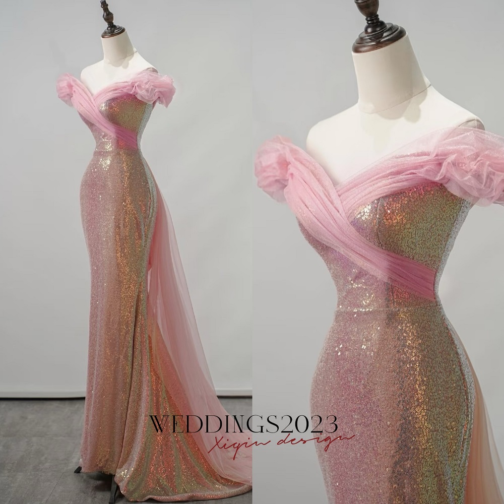 Pink Sequin Off the Shoulder Prom Dress, Off Shoulder Slit Mermaid Gown, Sparkly Formal Evening Dress for Gala, Pageant or Party