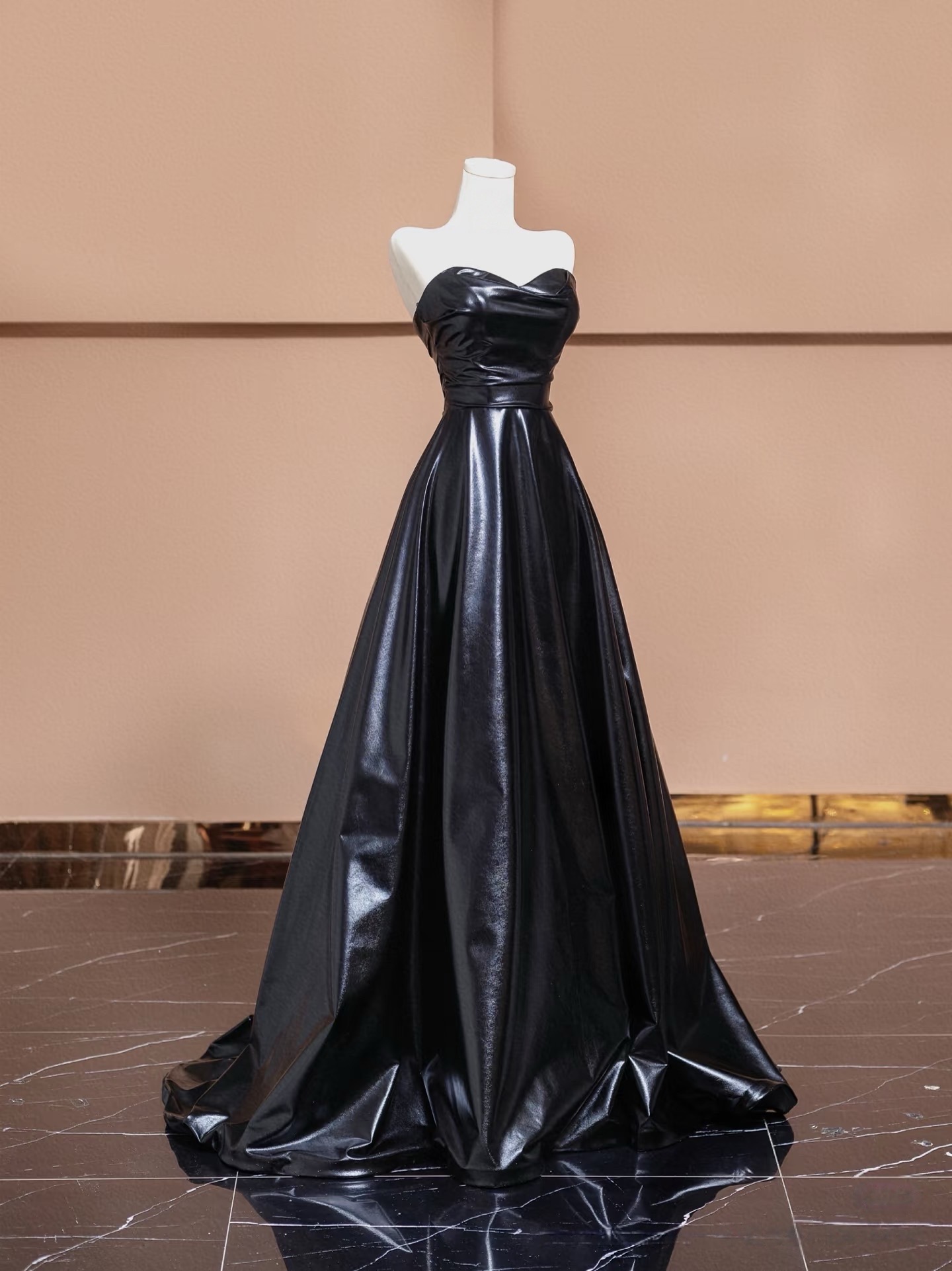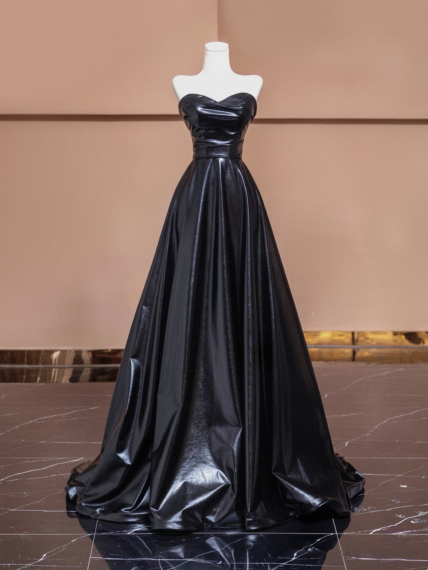 Black Strapless Sweetheart A-line Floor Length Prom Dresses