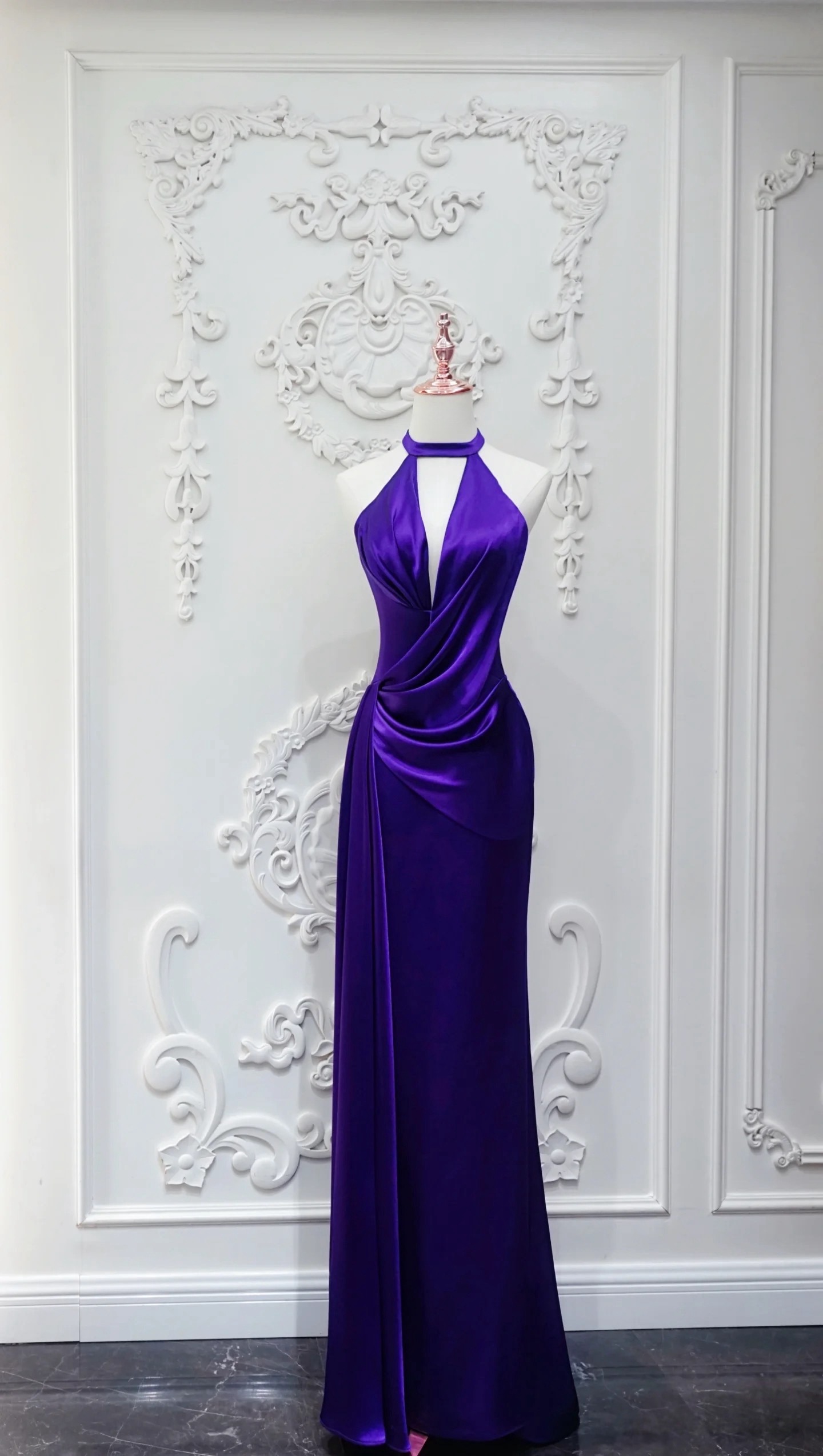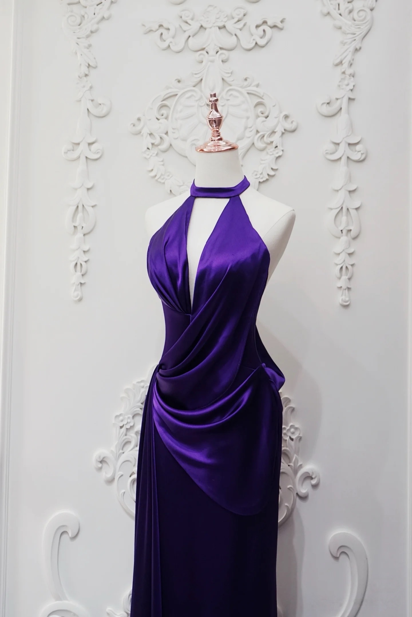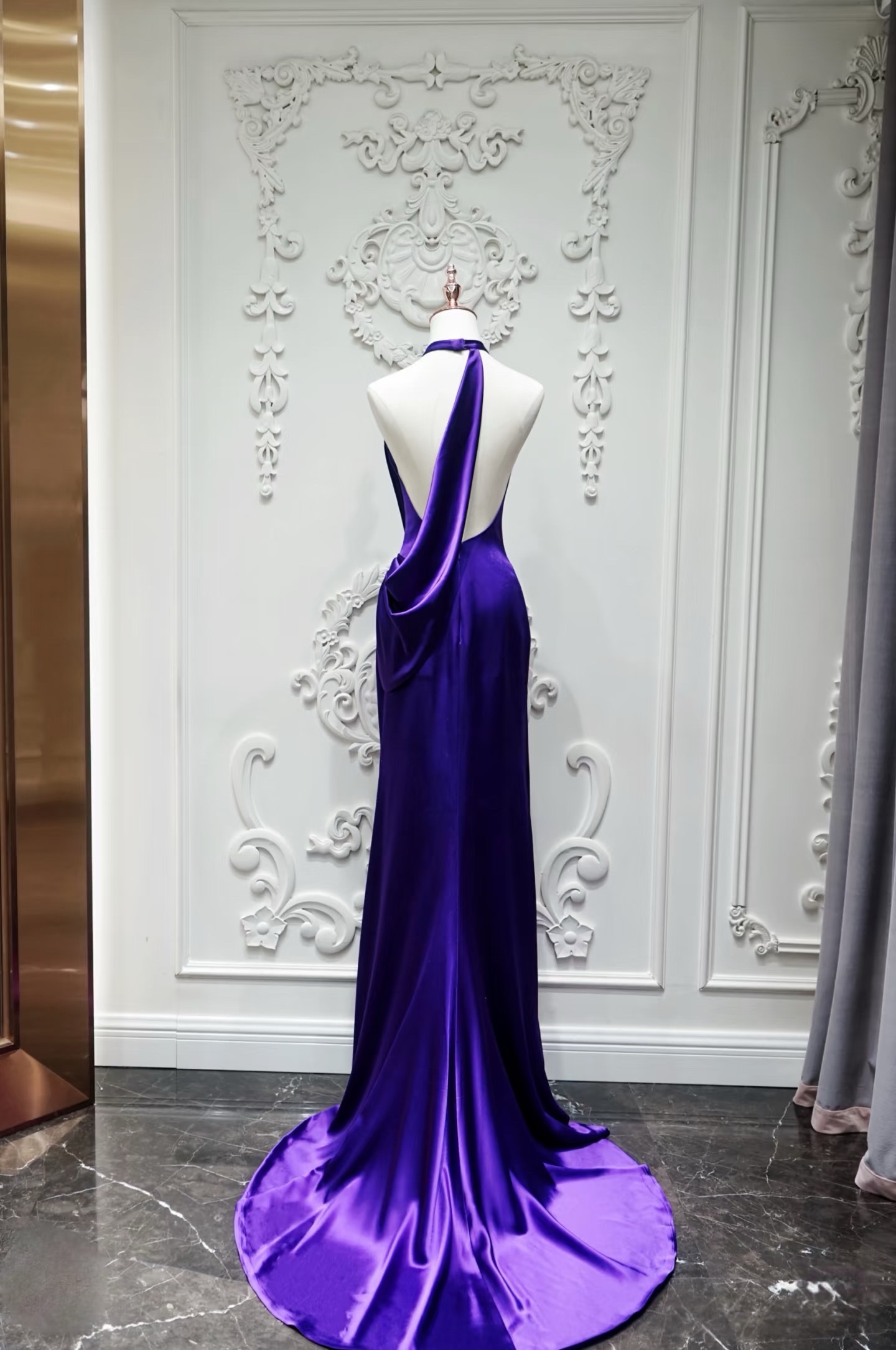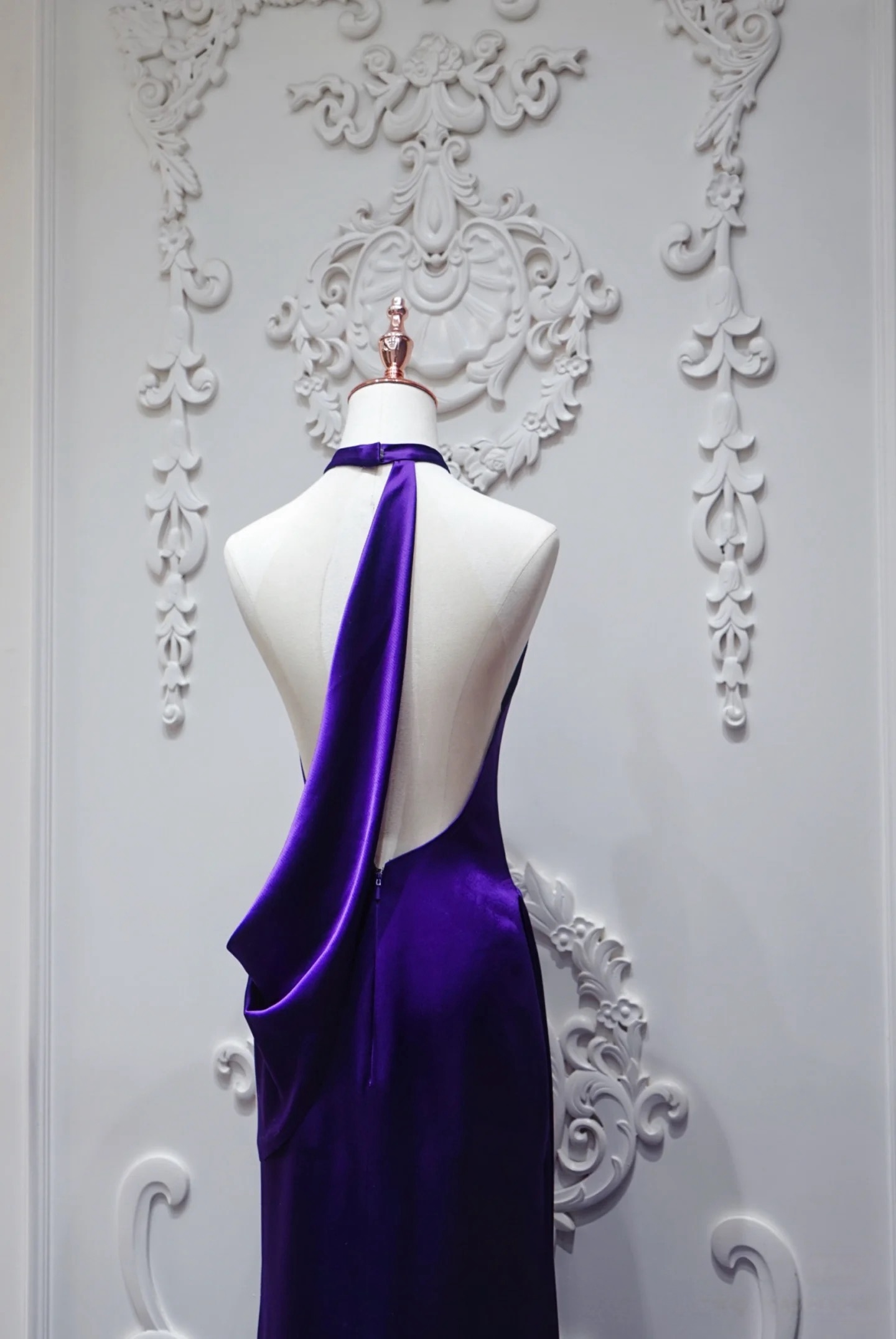 Fashionable Purple Deep V-neck Sheath Backless Back Prom Dress