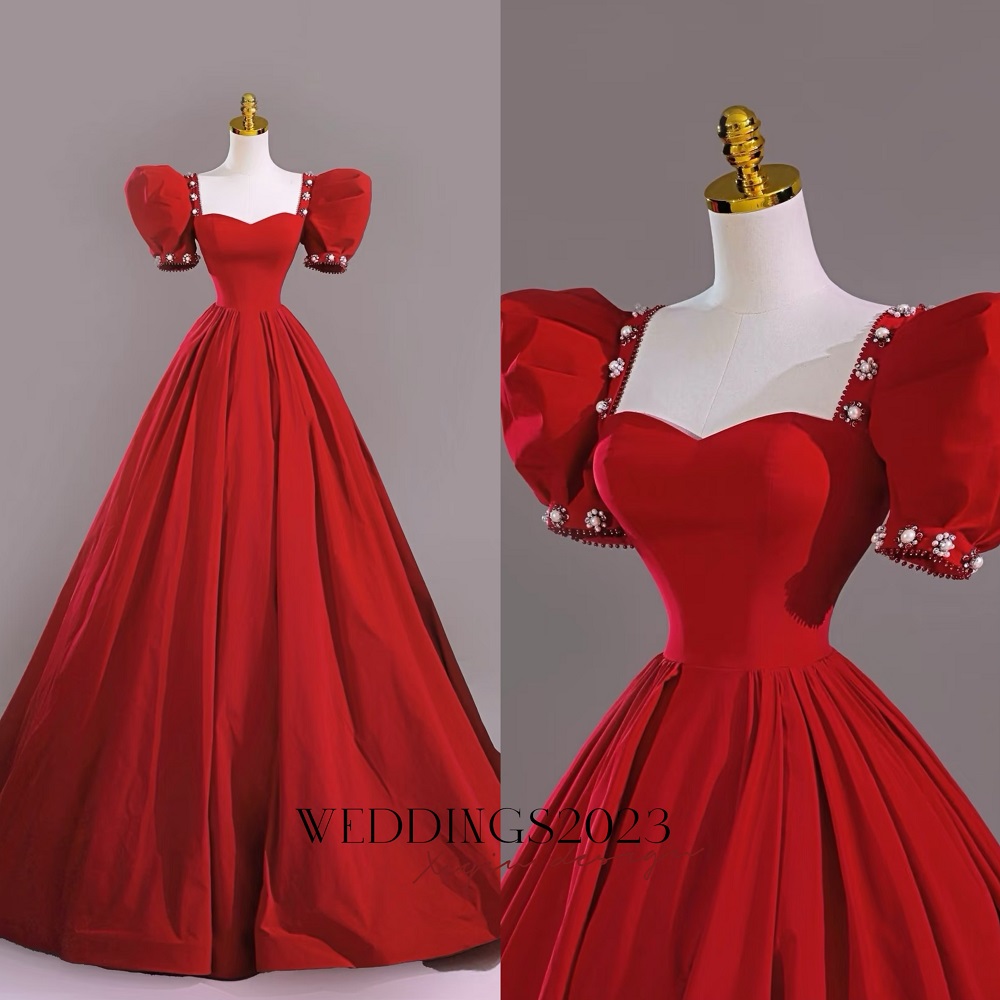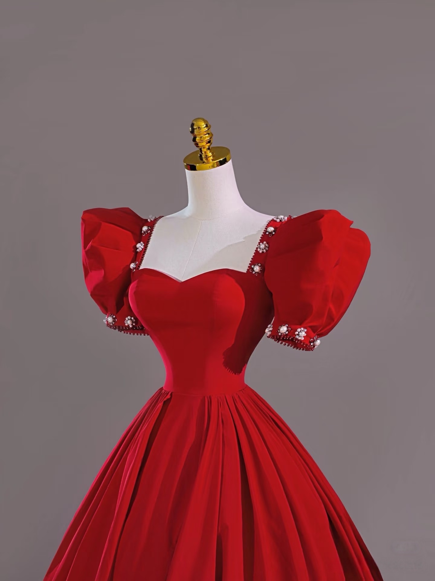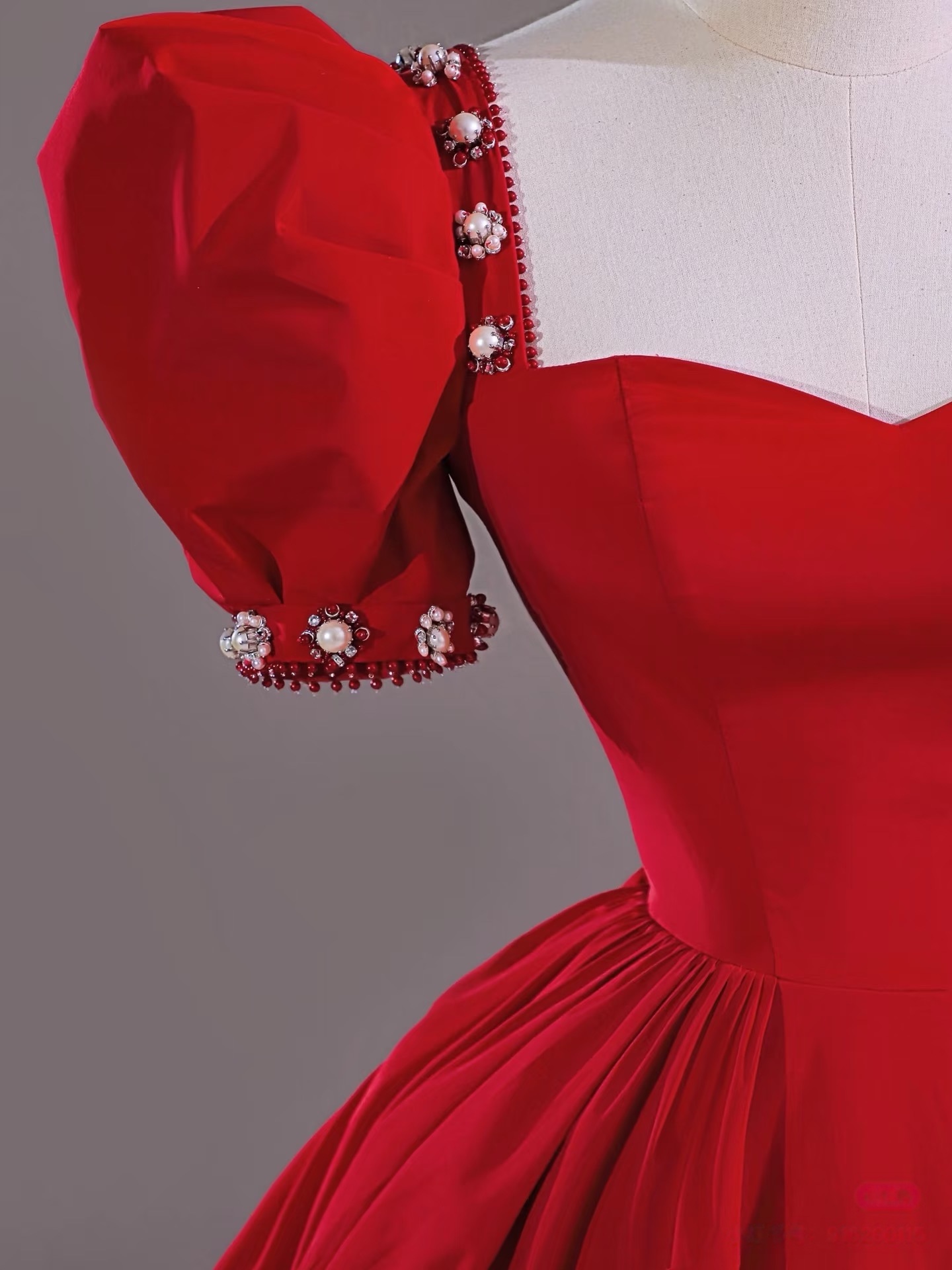Red Short Sleeves Sweetheart Neck A-line Floor Length with Beading Ball Gown