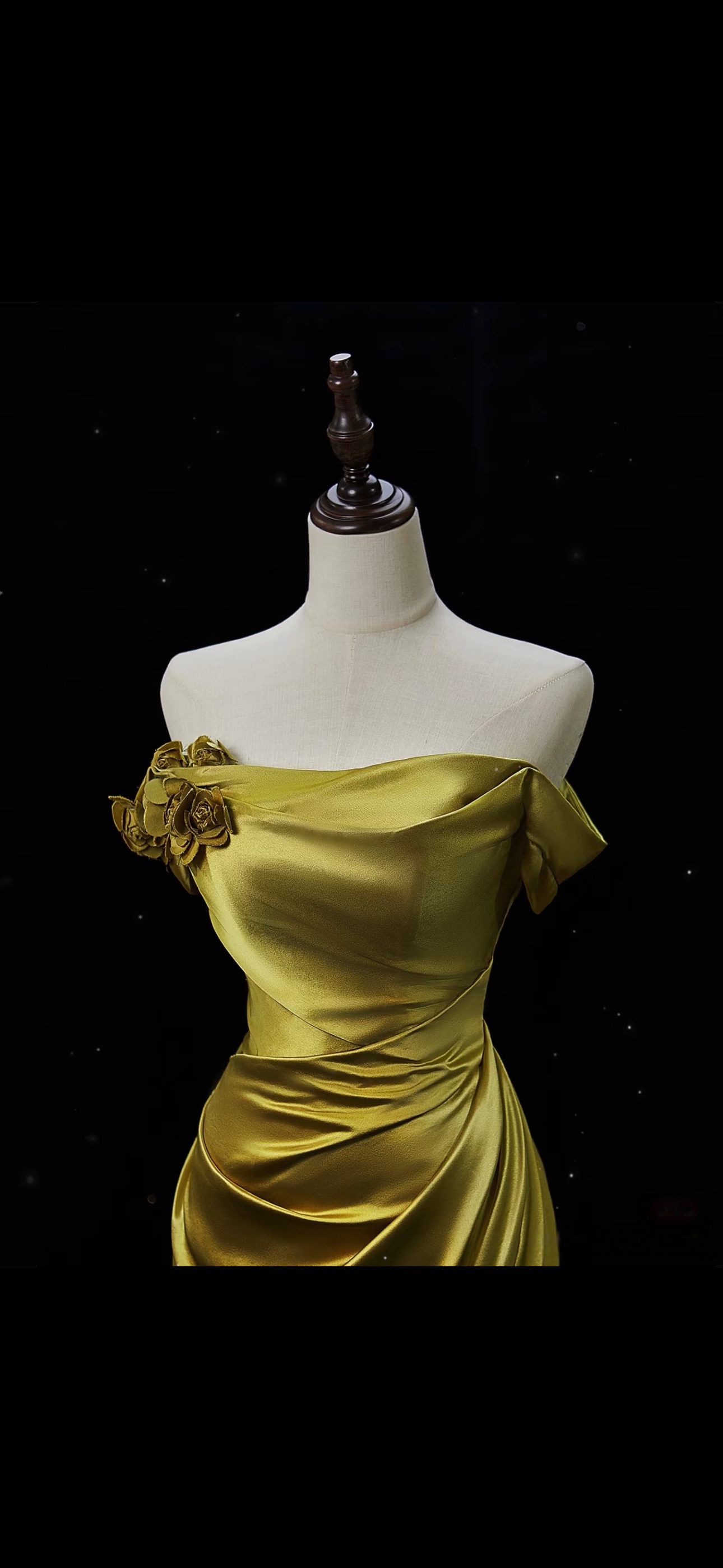 Olive Green Strapless Handmade Floral Sheath Backless Back Prom Dress