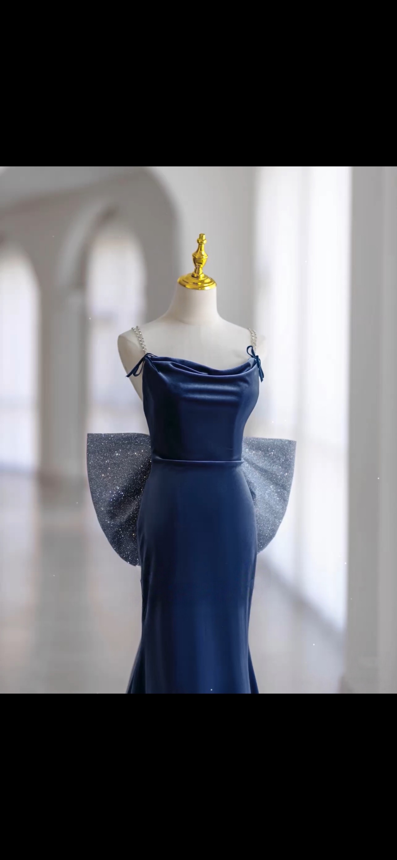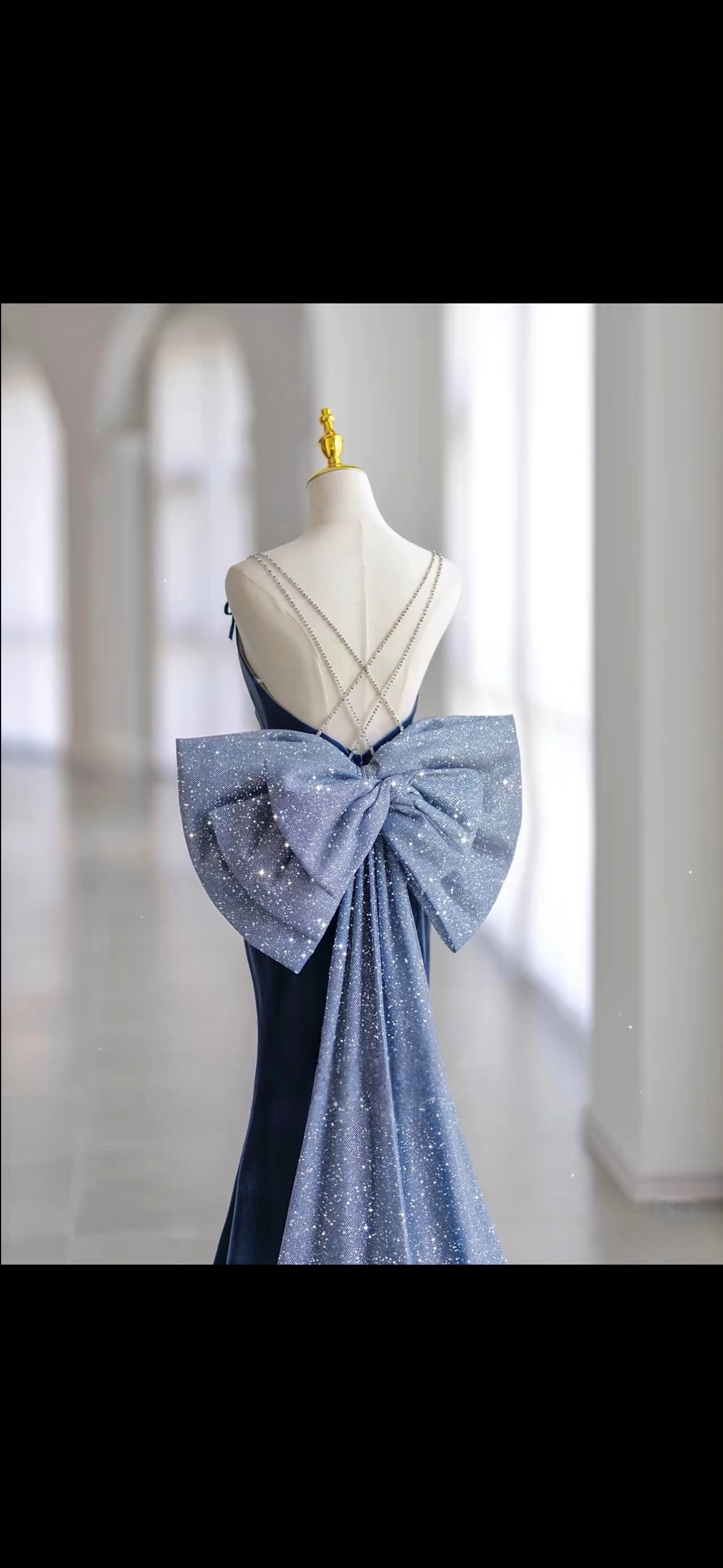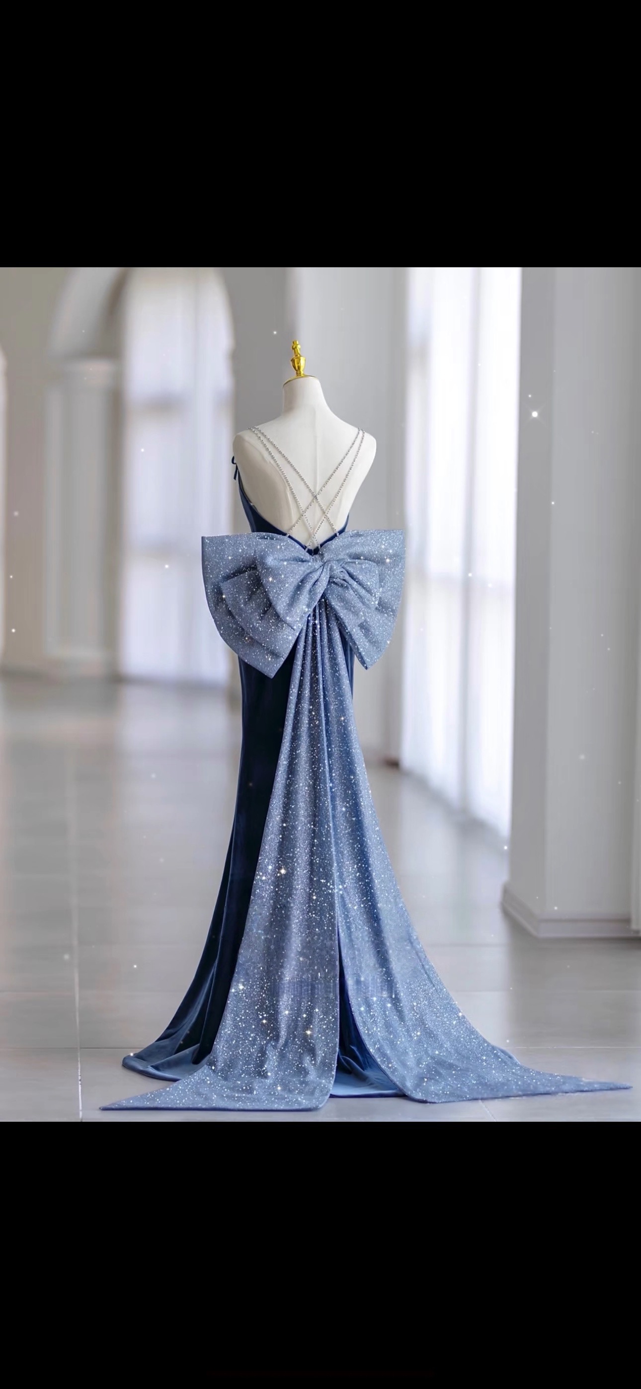 Spaghetti straps Mermaid Floor Length with Removeled Bow Backless Back Prom Dress