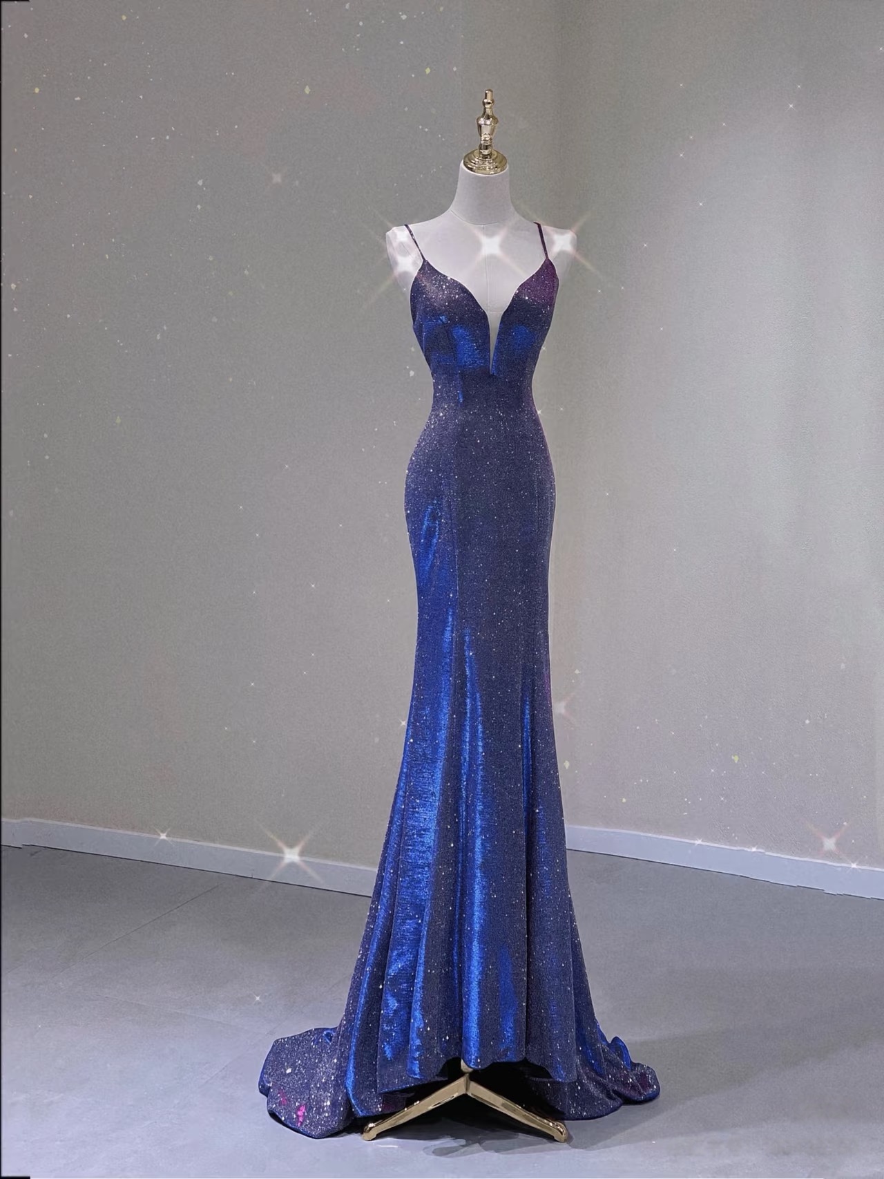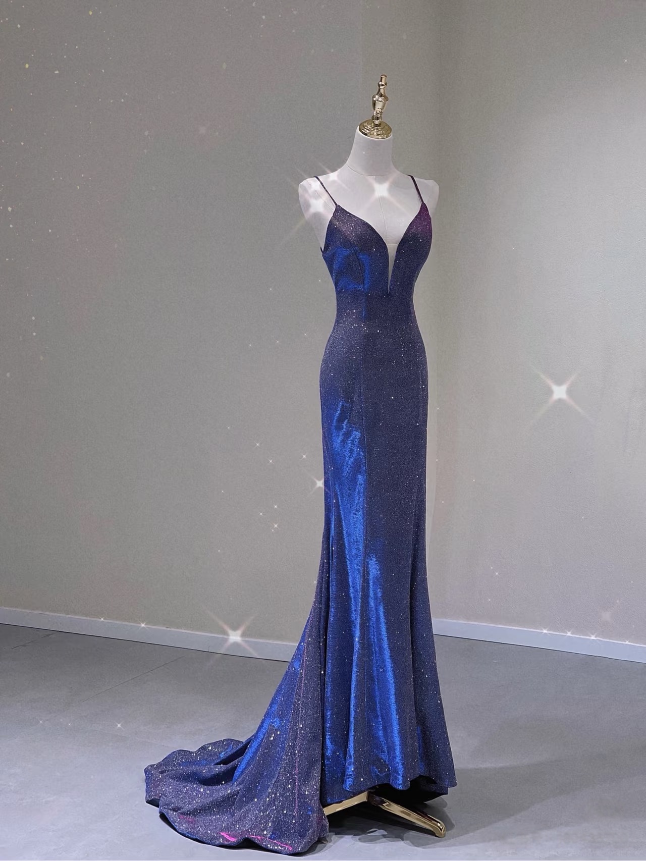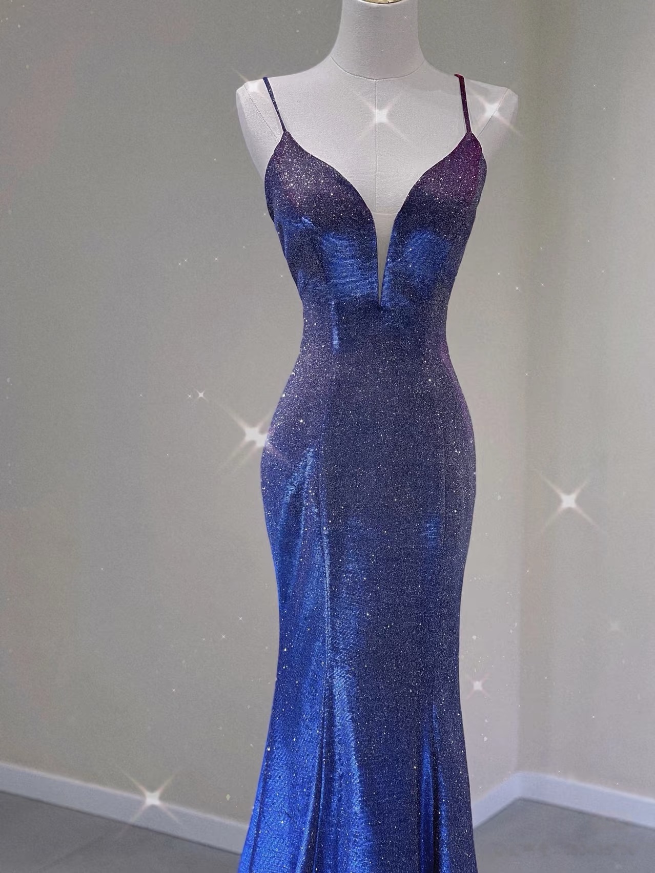 Spaghetti Strap Prom Dress for Teens Mermaid Long Evening Dress V Neck Sparkly Cocktail Ball Gowns