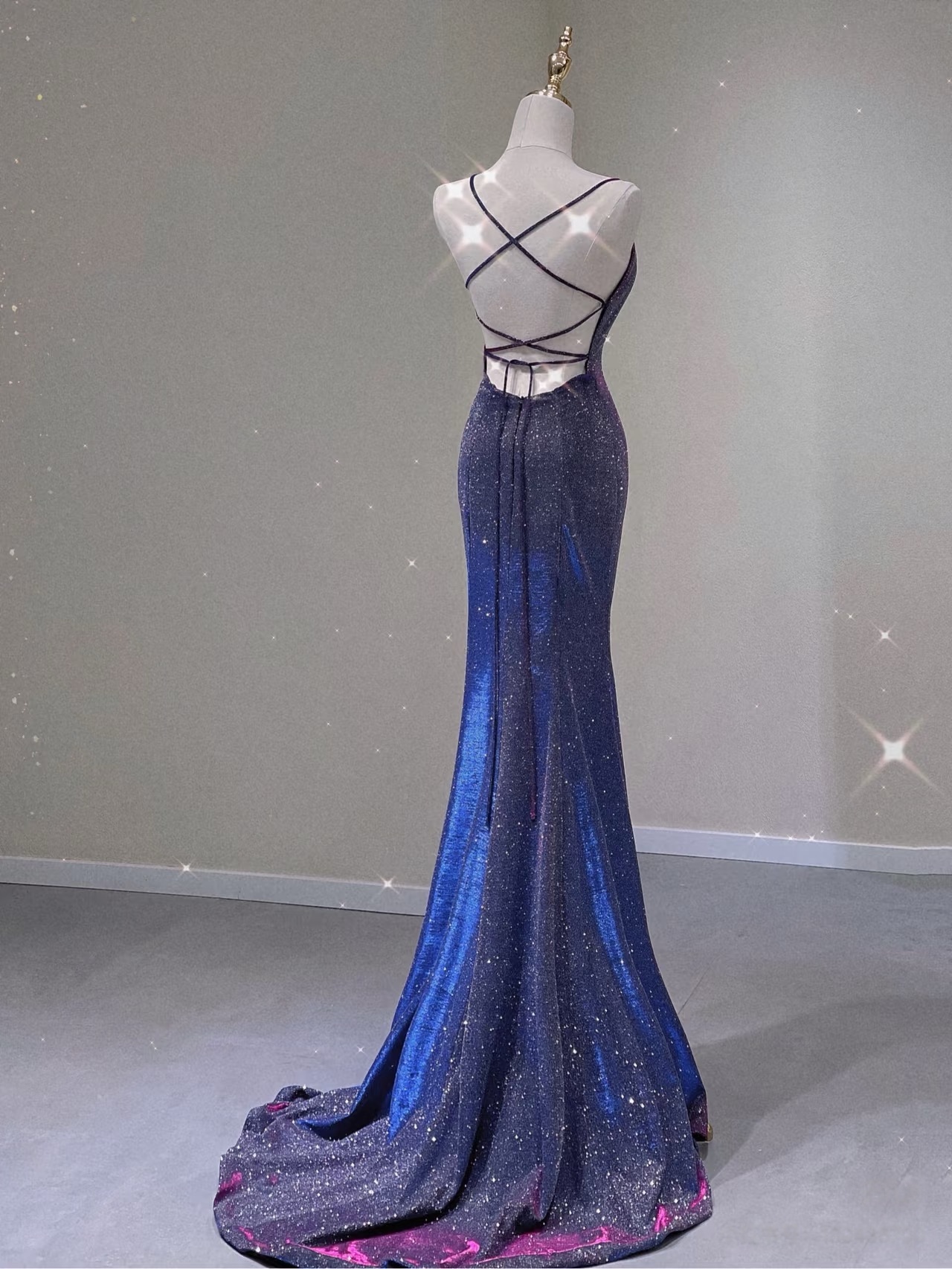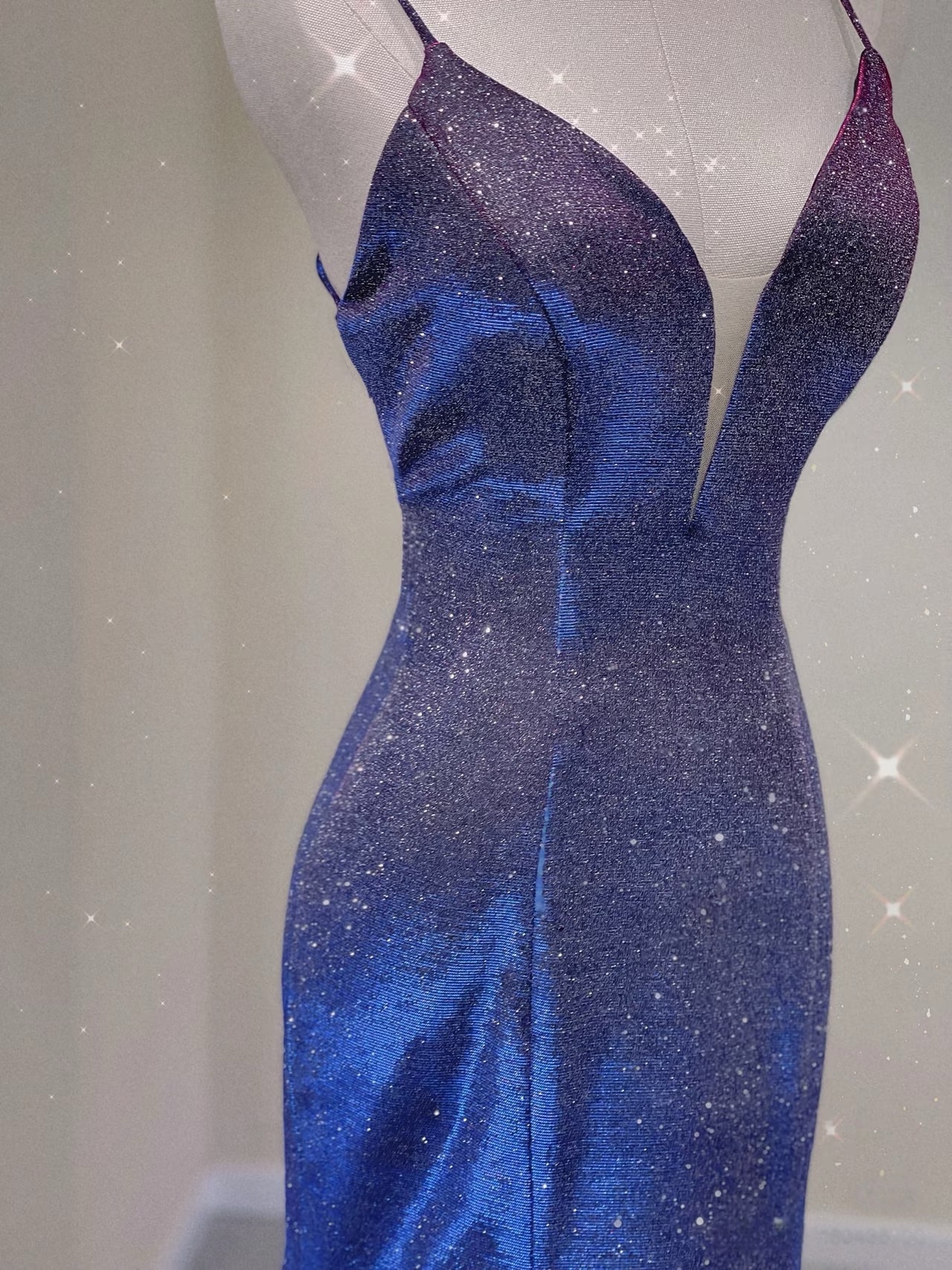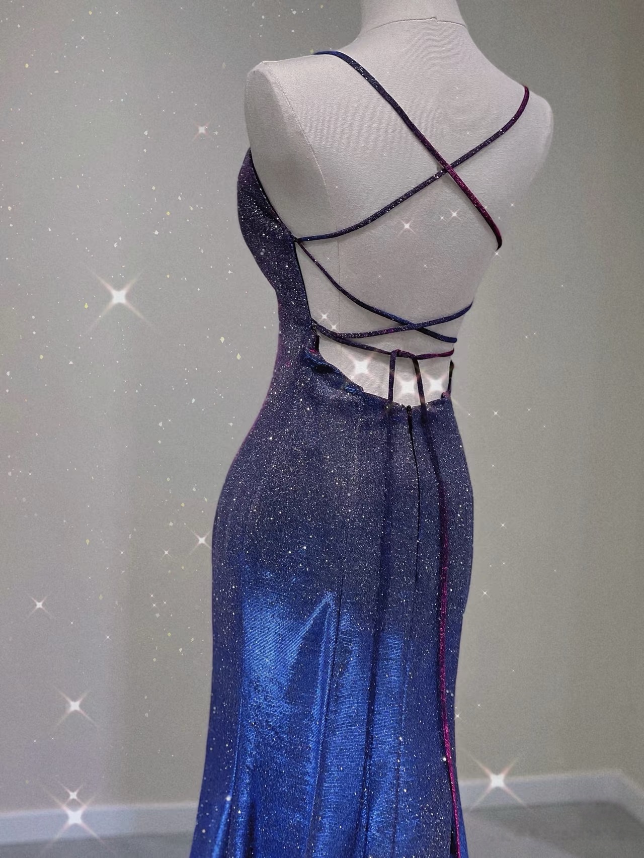 Spaghetti Strap Prom Dress for Teens Mermaid Long Evening Dress V Neck Sparkly Cocktail Ball Gowns