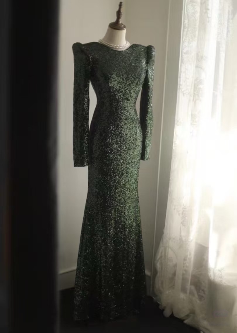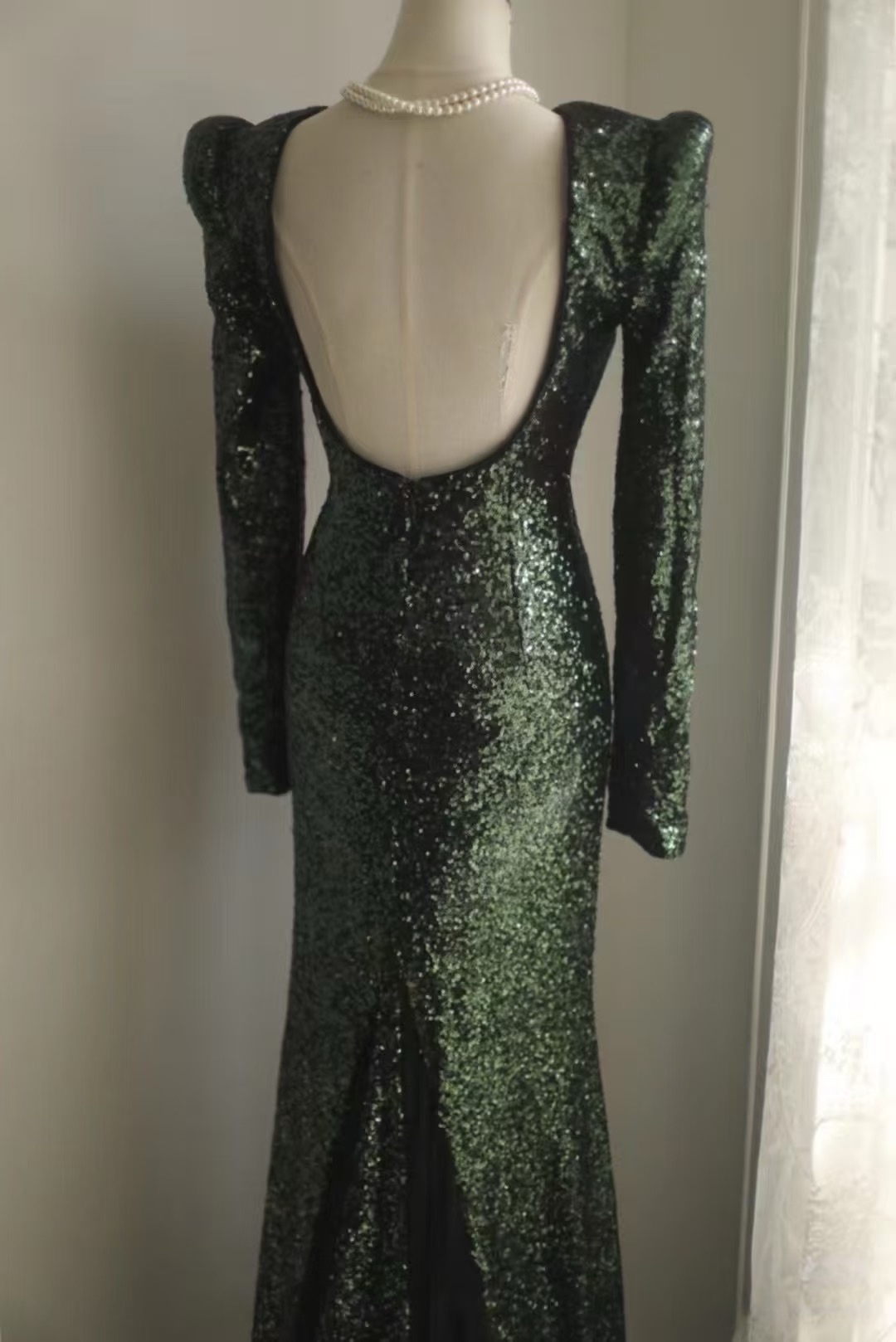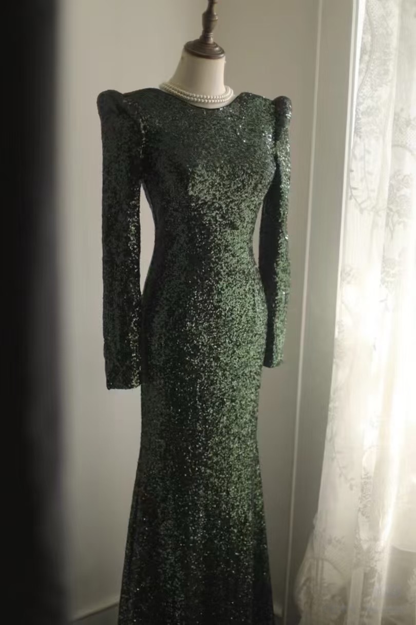 Luxe Dark Green Sequin Holiday Formal Party Evening Wedding Prom Mermaid Maxi Dress