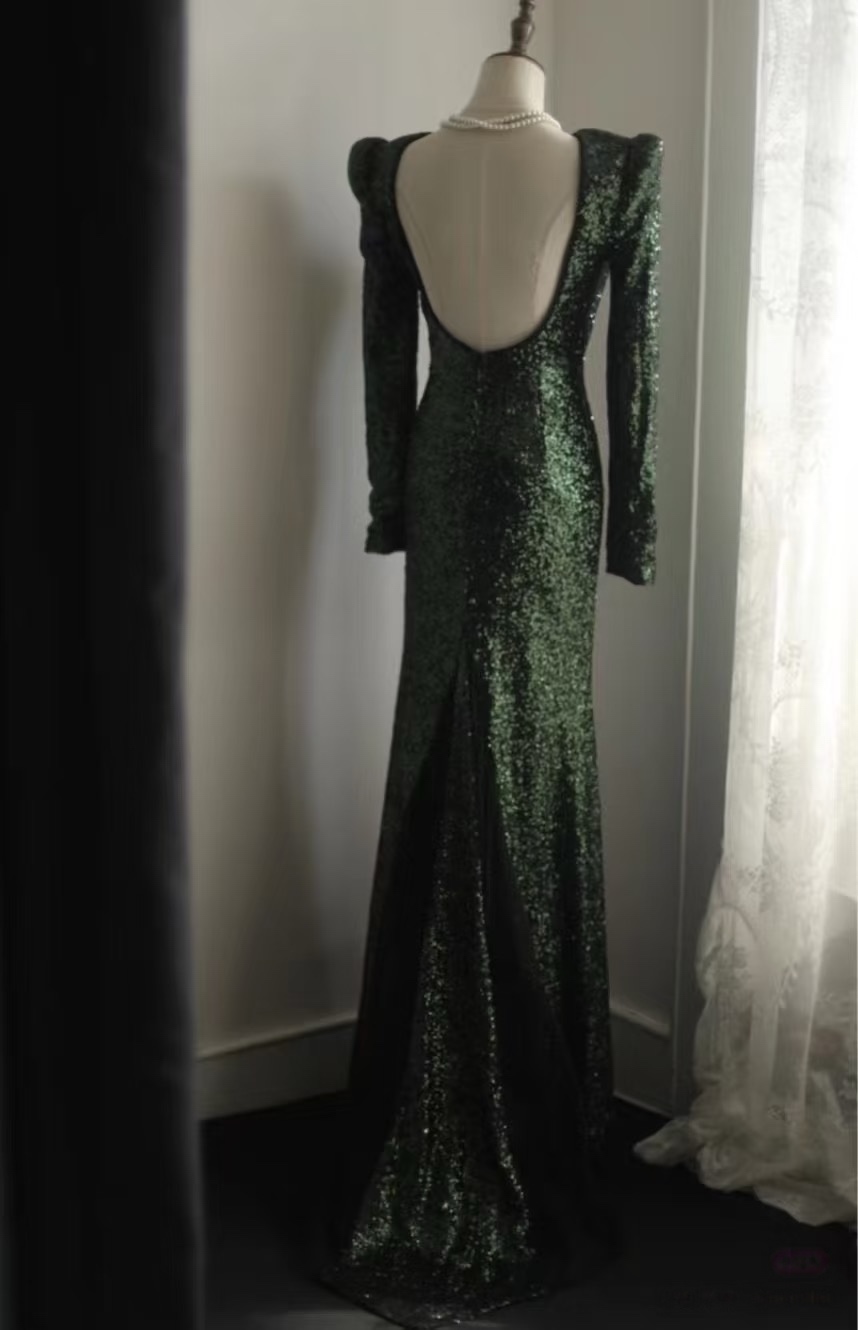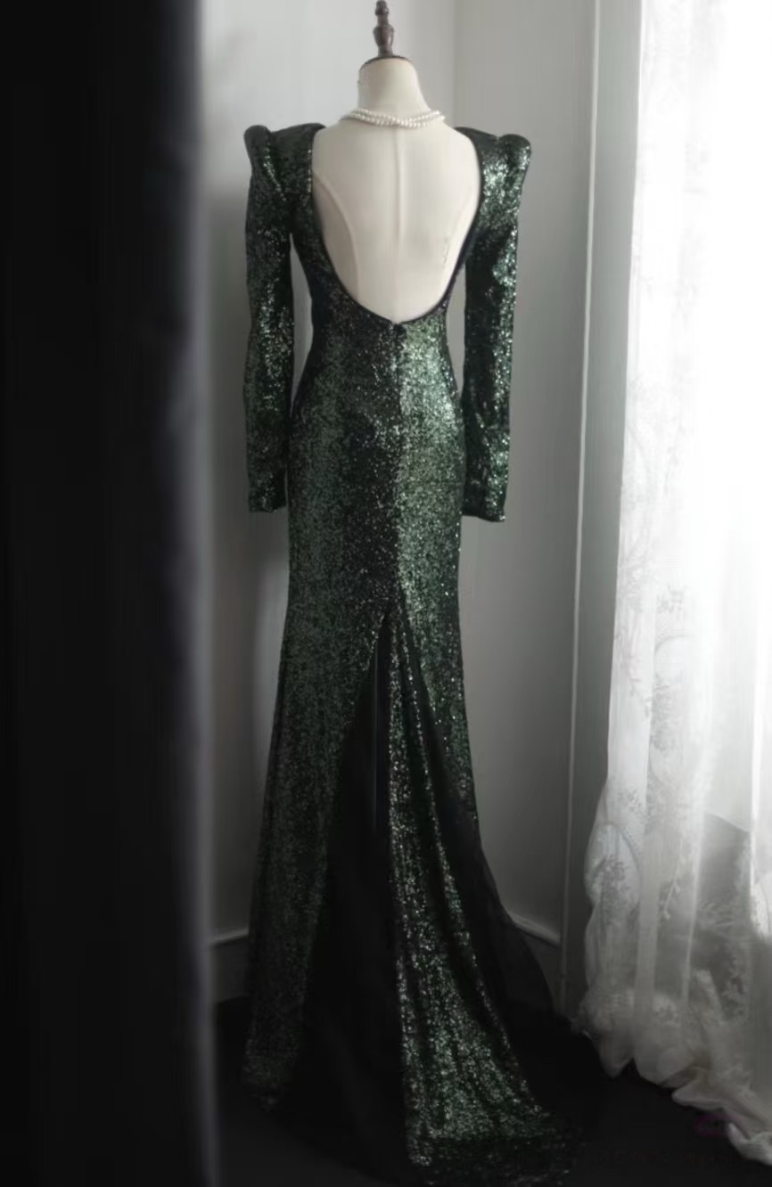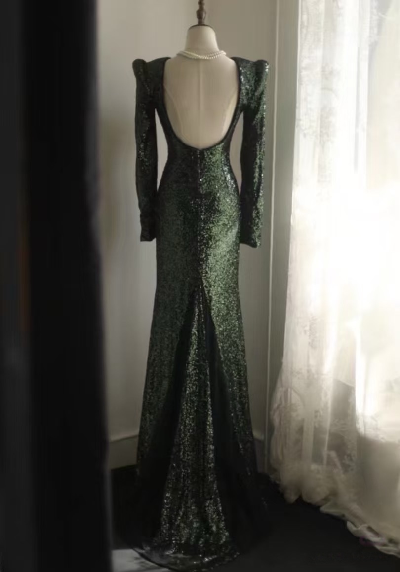 Luxe Dark Green Sequin Holiday Formal Party Evening Wedding Prom Mermaid Maxi Dress