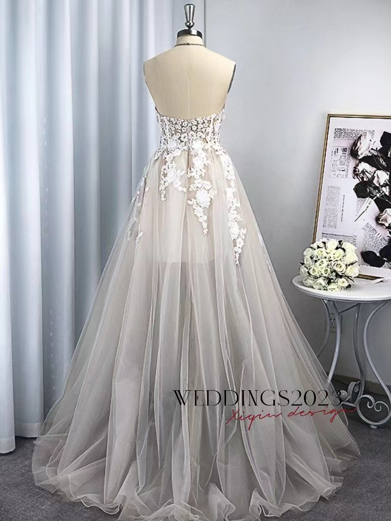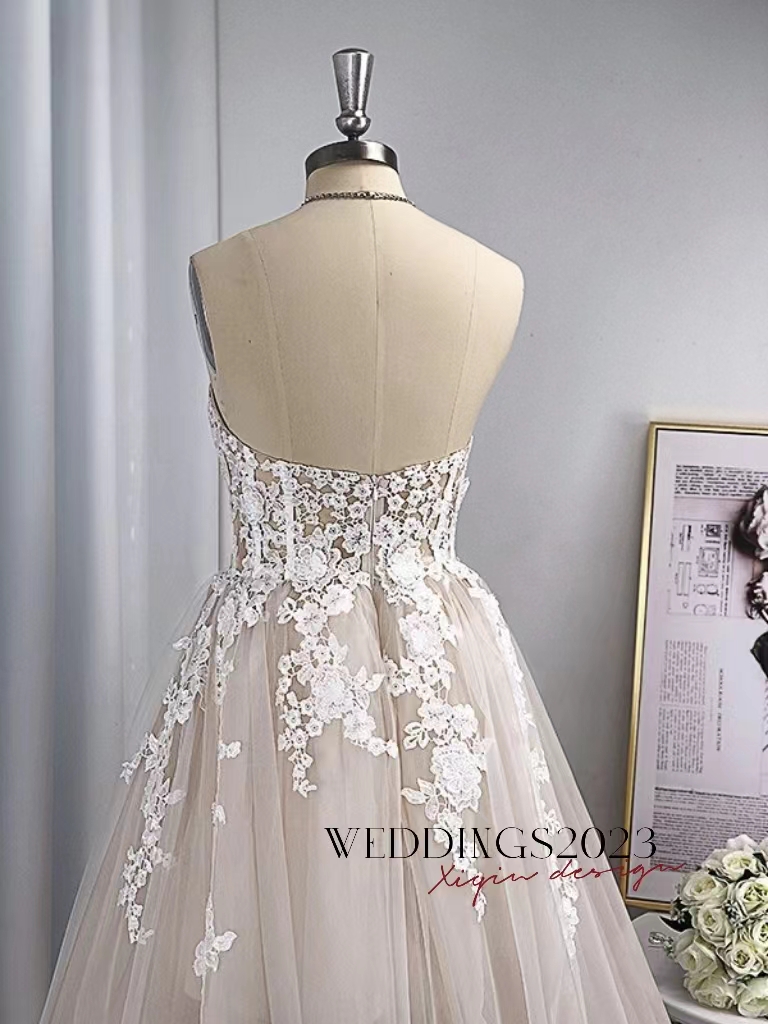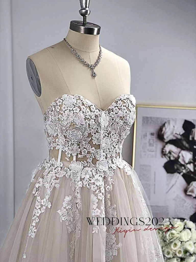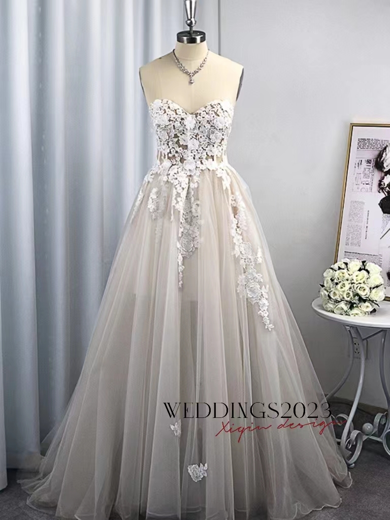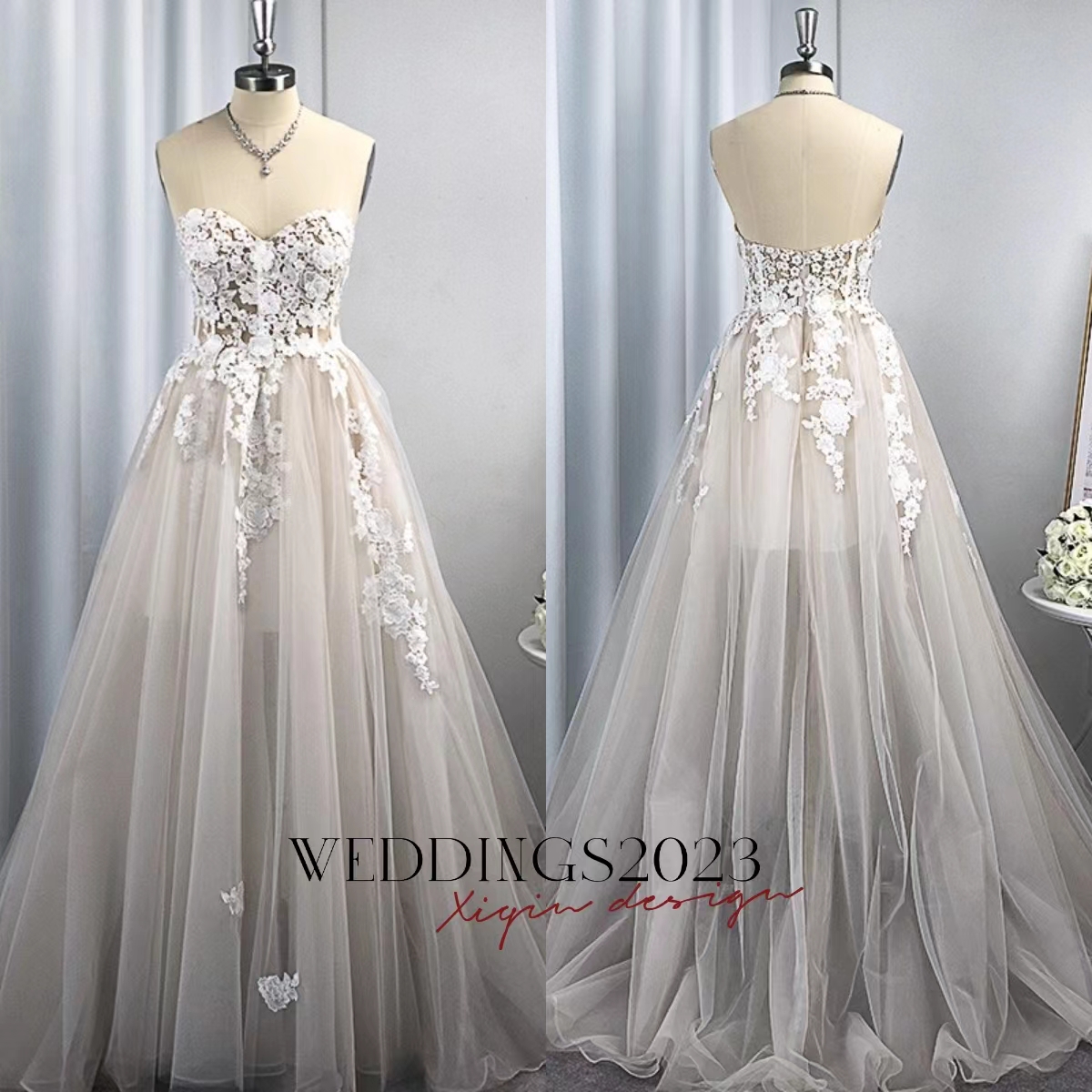 Boho Sweetheart Wedding Dress Bridal Gowns With 3D Lace Applique Rustic Wedding Dresses W-56009
