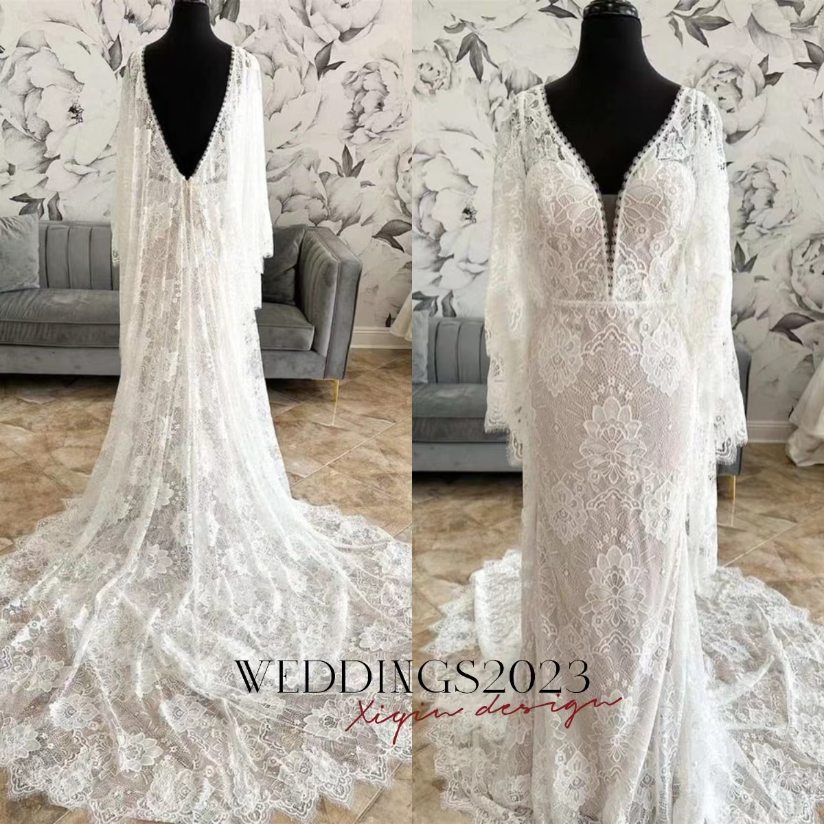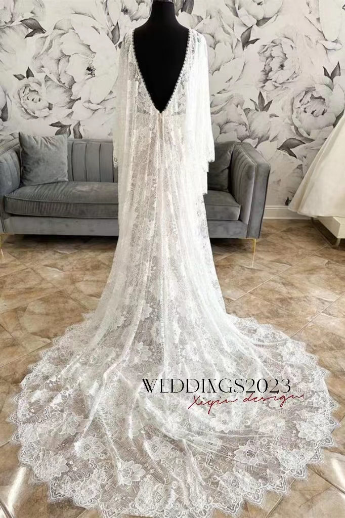 Open Back Sexy A-line Wedding Dress Ohomian Wedding Dress High Fashion With Open Back And Deep V-neckline W-56028